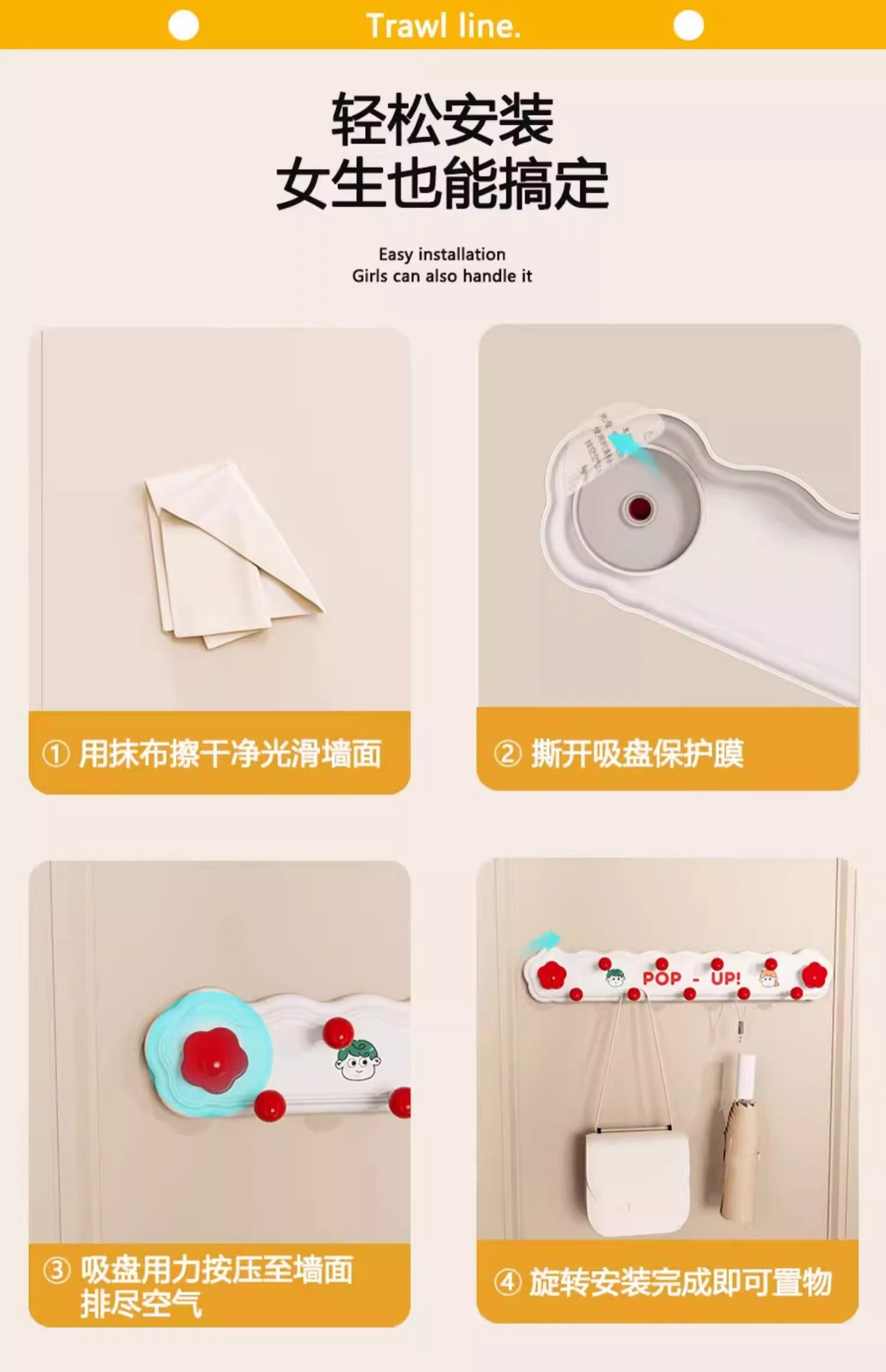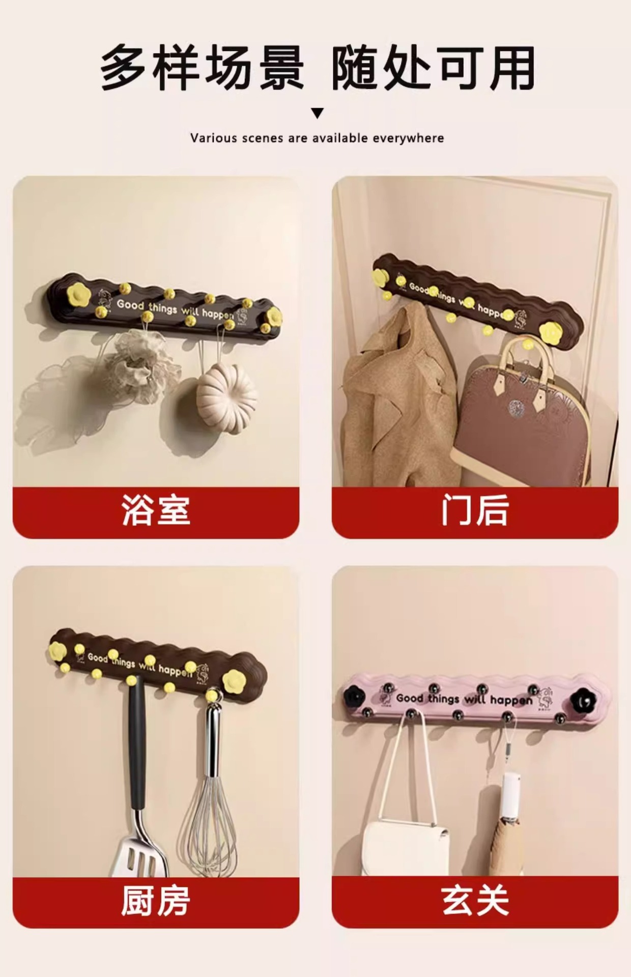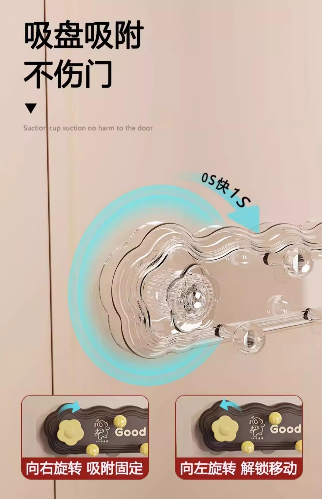 【免打孔强力承重、360度旋转吸附】2025新款吸盘挂钩免打孔强力承重门后挂衣架厨房厨具挂钩,TA