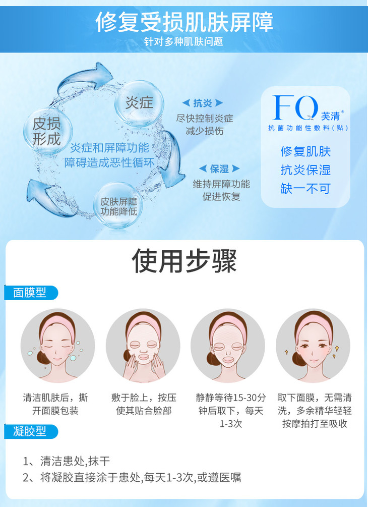芙清医用促愈功能性敷料(面膜)5片/盒【械】