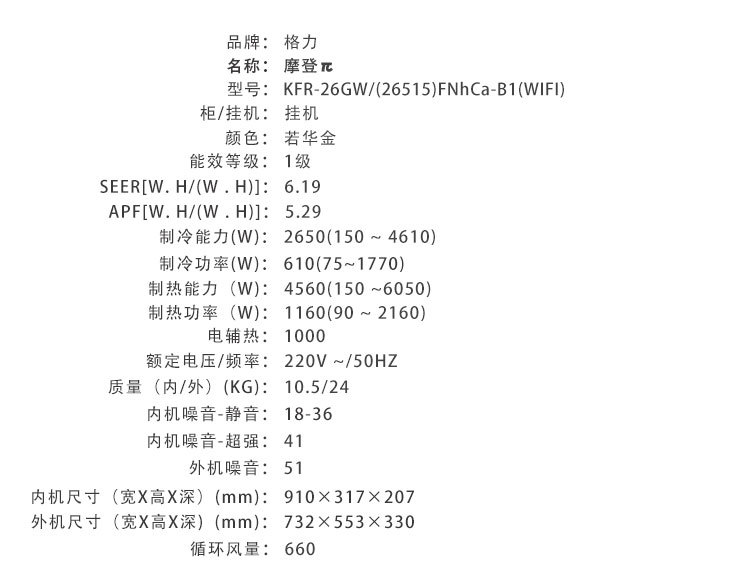 格力·摩登π 变频冷暖1匹1级能效挂机空调 KFR-26GW/(26515)FNhCa-B1(WIFI) 若华金