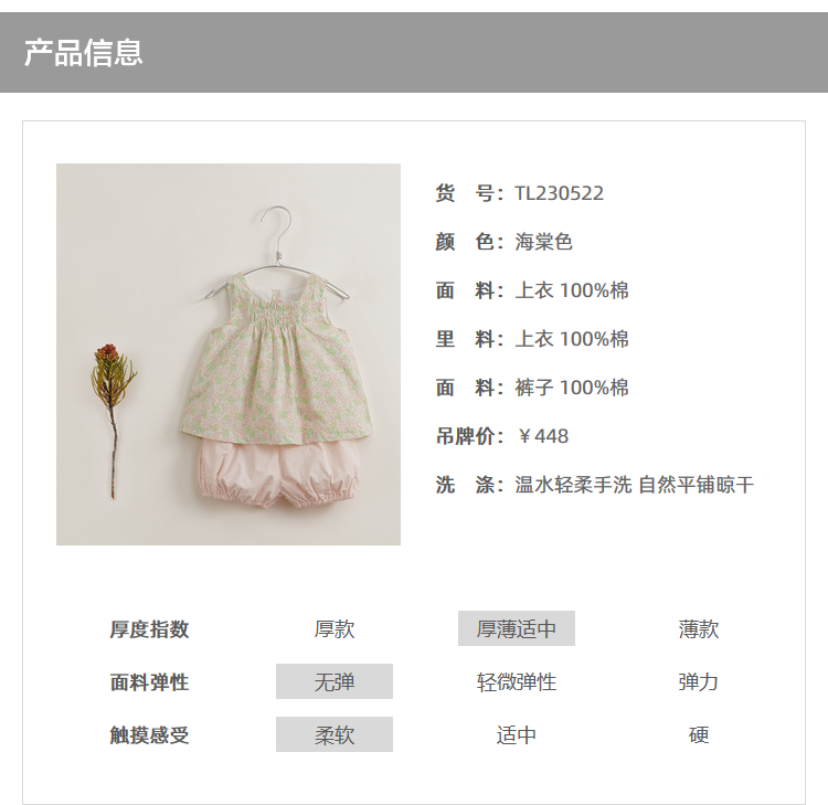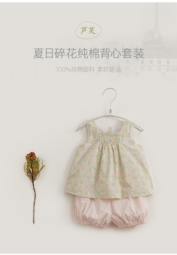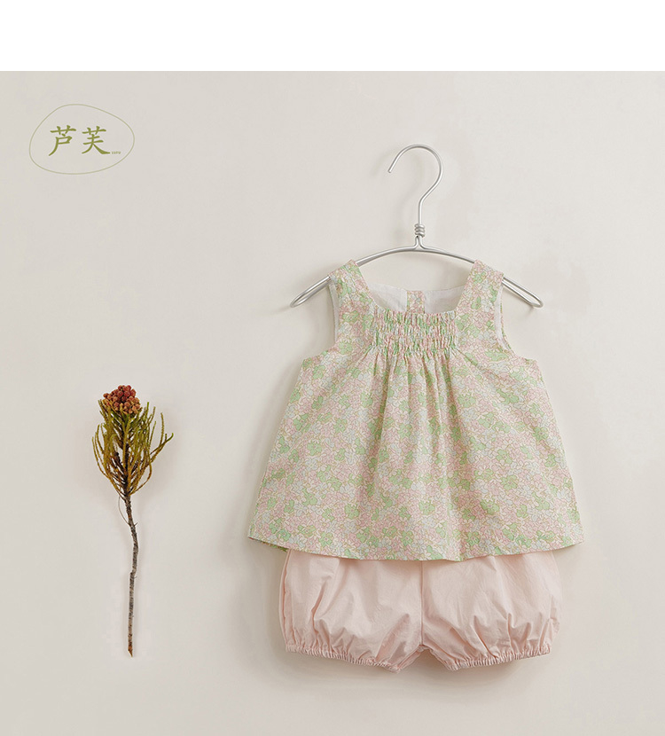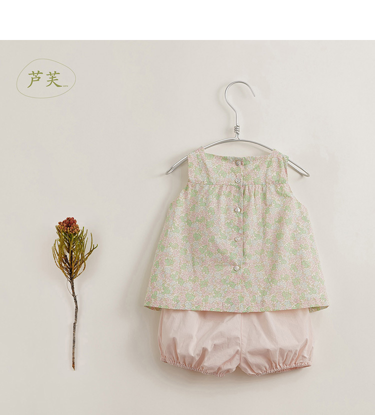 【马克珍妮 芦芙】新款夏装 女童碎花纯棉背心套装230522