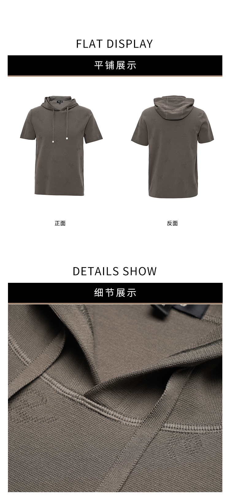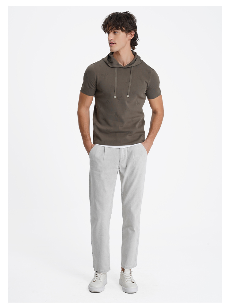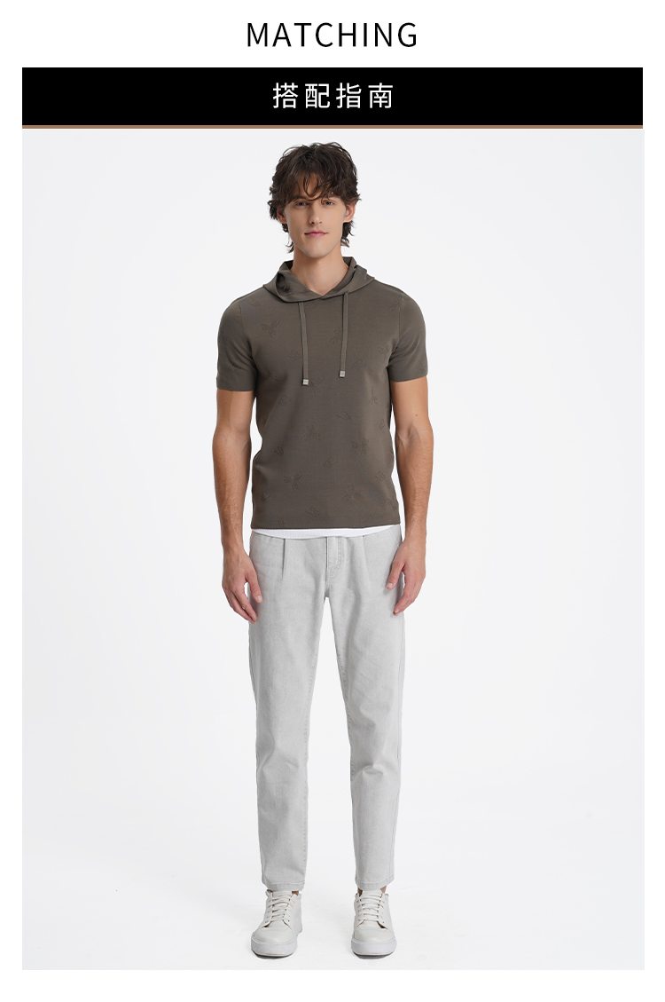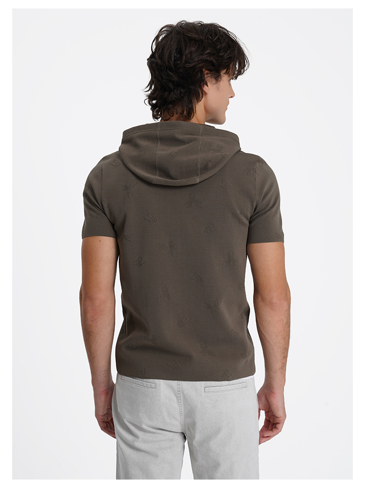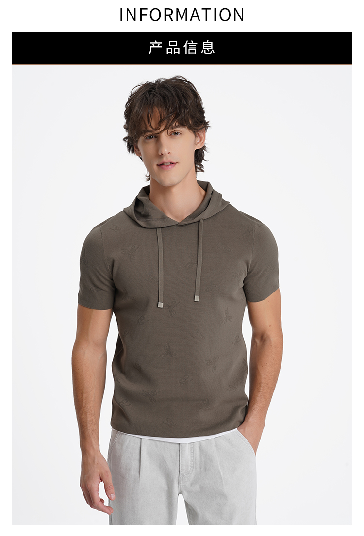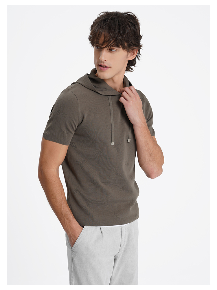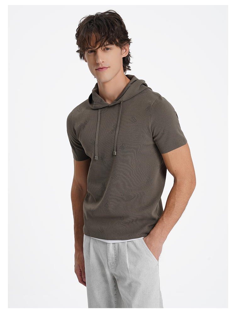 callisto启程系列海藻绿短袖连帽针织T恤