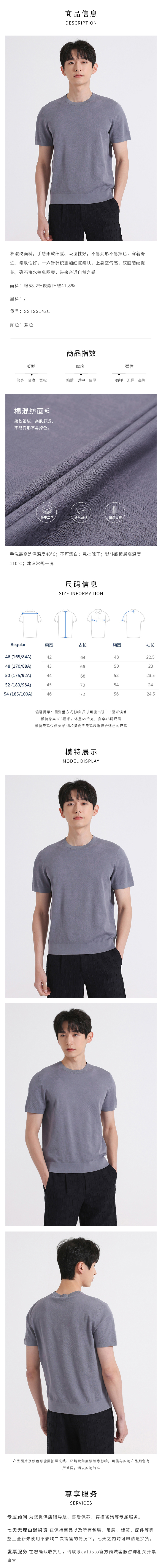 callisto紫色提花混纺T恤 SSTSS142C