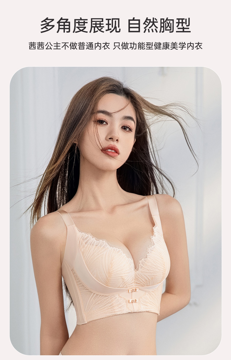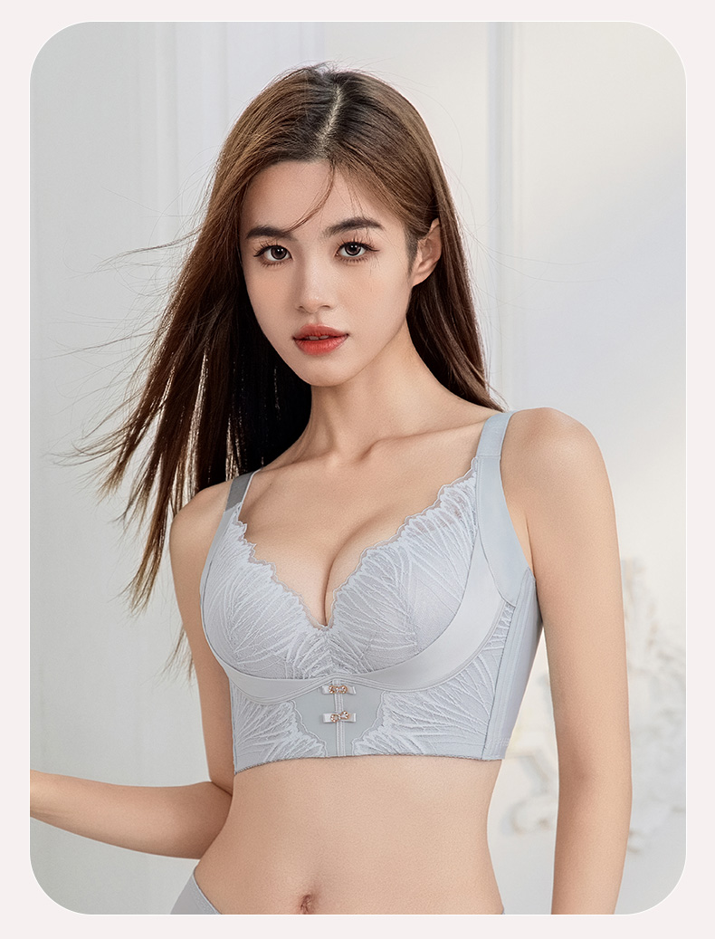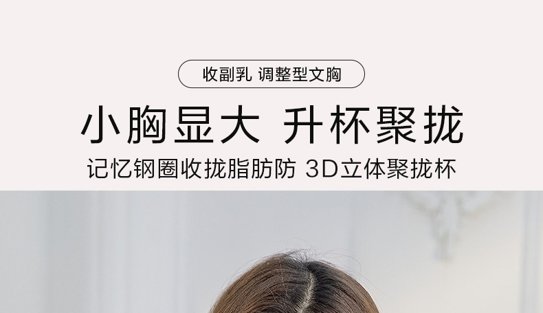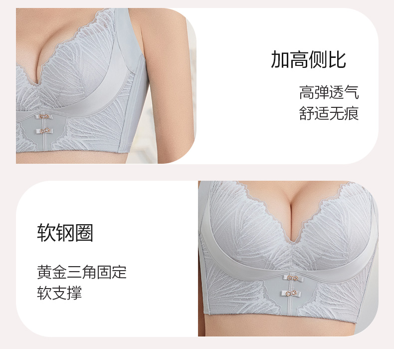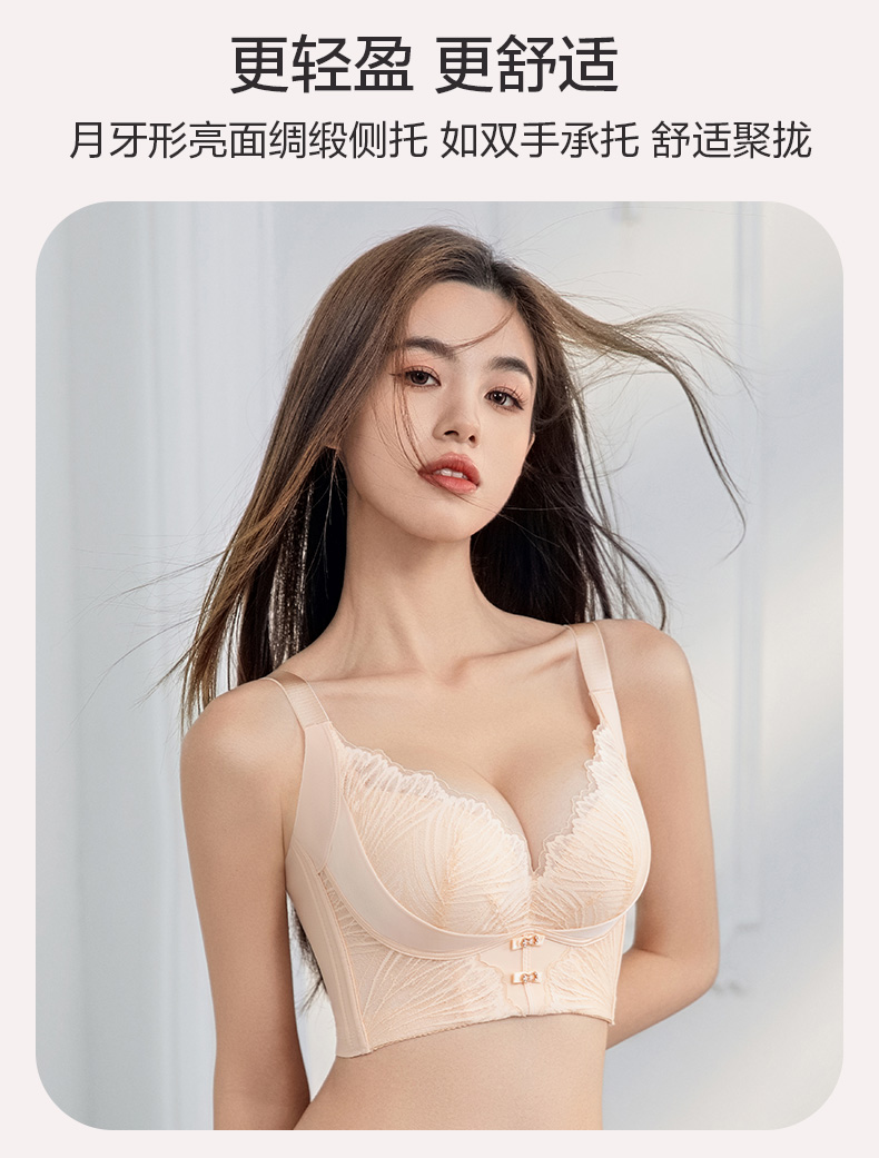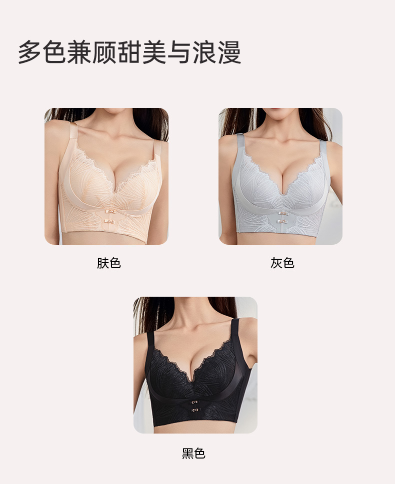 轻奢法式调整型文胸 软钢圈聚拢 柔软承托不下垂 夹棉薄杯 感温记忆3D立体数码印花蕾丝