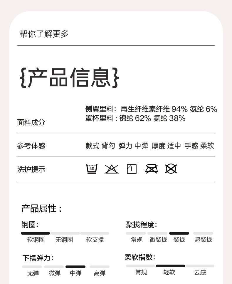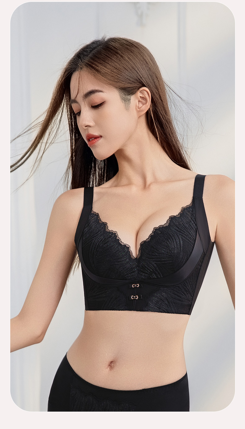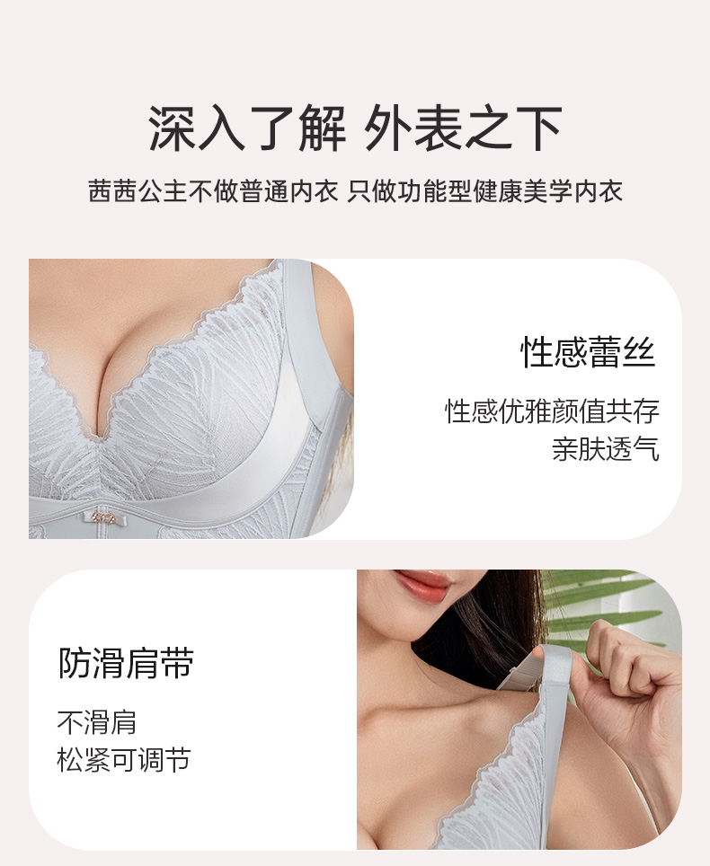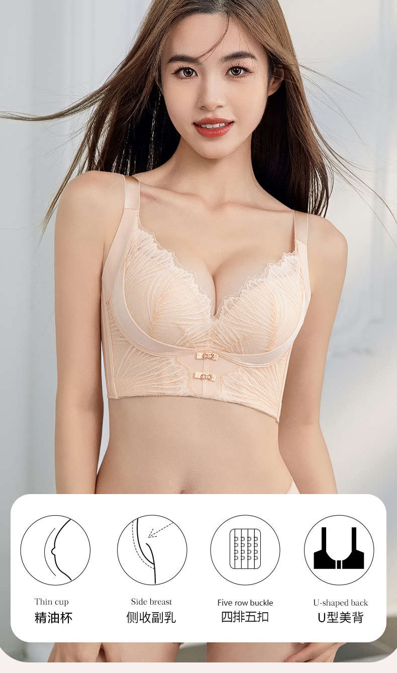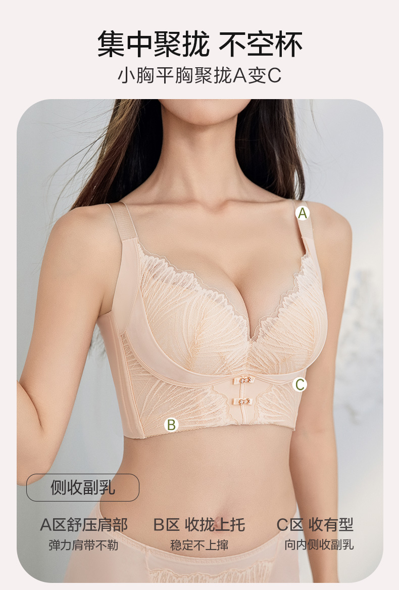 轻奢法式调整型文胸 软钢圈聚拢 柔软承托不下垂 夹棉薄杯 感温记忆3D立体数码印花蕾丝