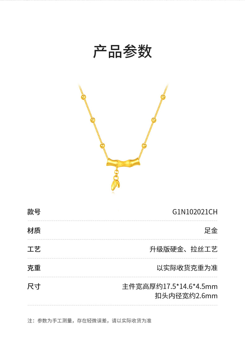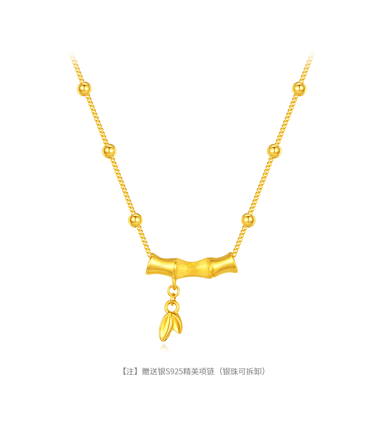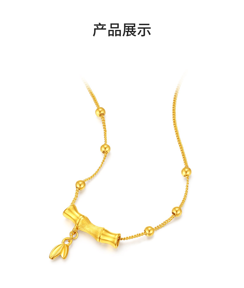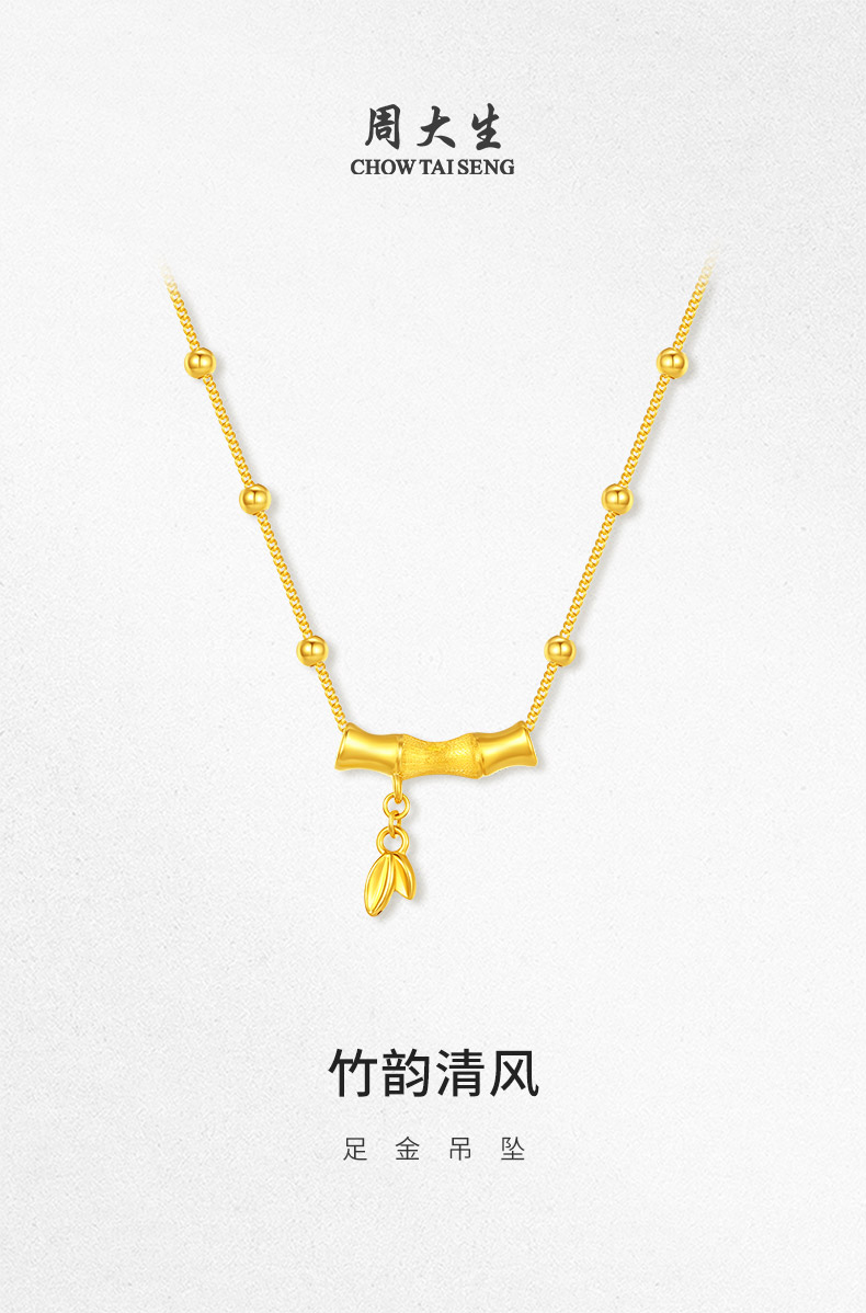 周大生竹节吊坠女款足金硬金竹韵清风项链挂坠七夕送女朋友礼物