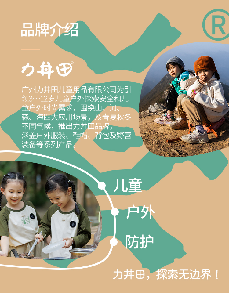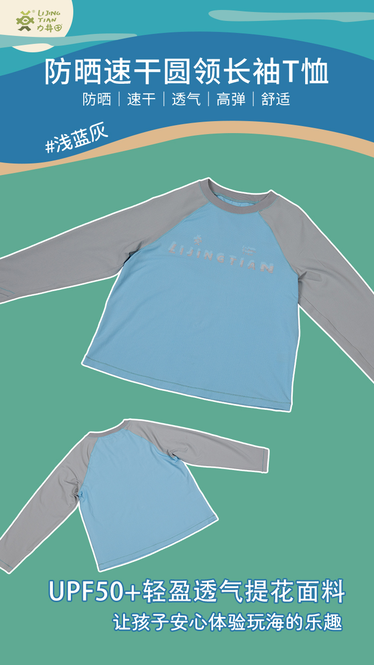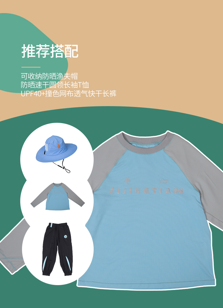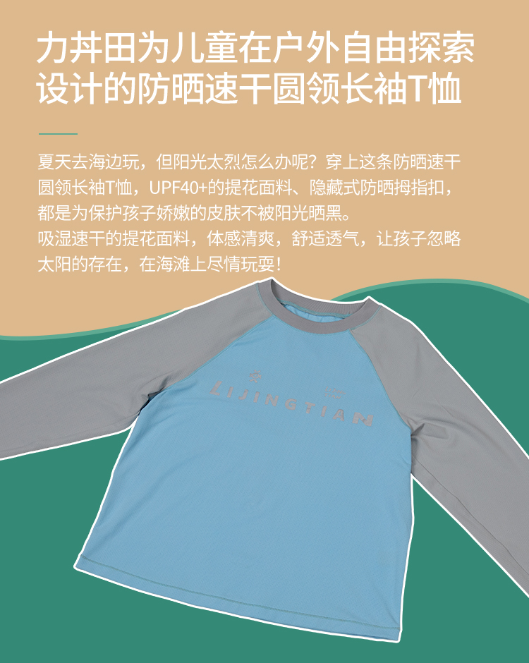力丼田儿童户外海岛系列 圆领插肩长袖T恤 UPF40+防晒透气速干 L233S037
