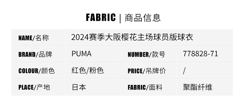 SFS正品 PUMA彪马2024J联赛大阪樱花主场球员版球衣778828-71