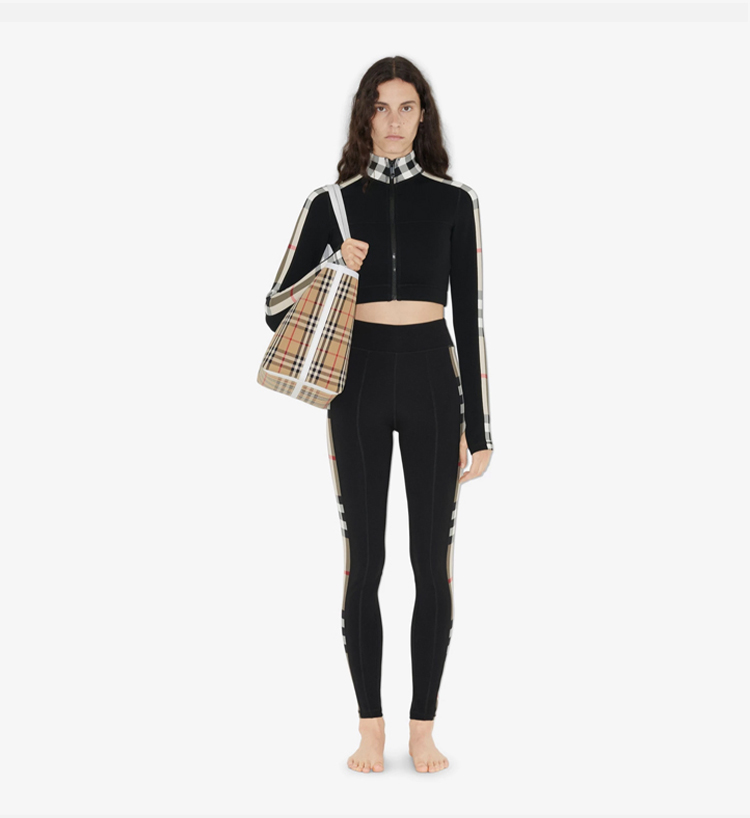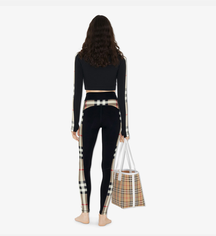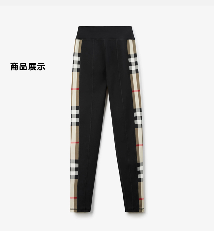 BURBERRY 巴宝莉 女士格纹裁片紧身运动裤 黑色 8072124 A1189