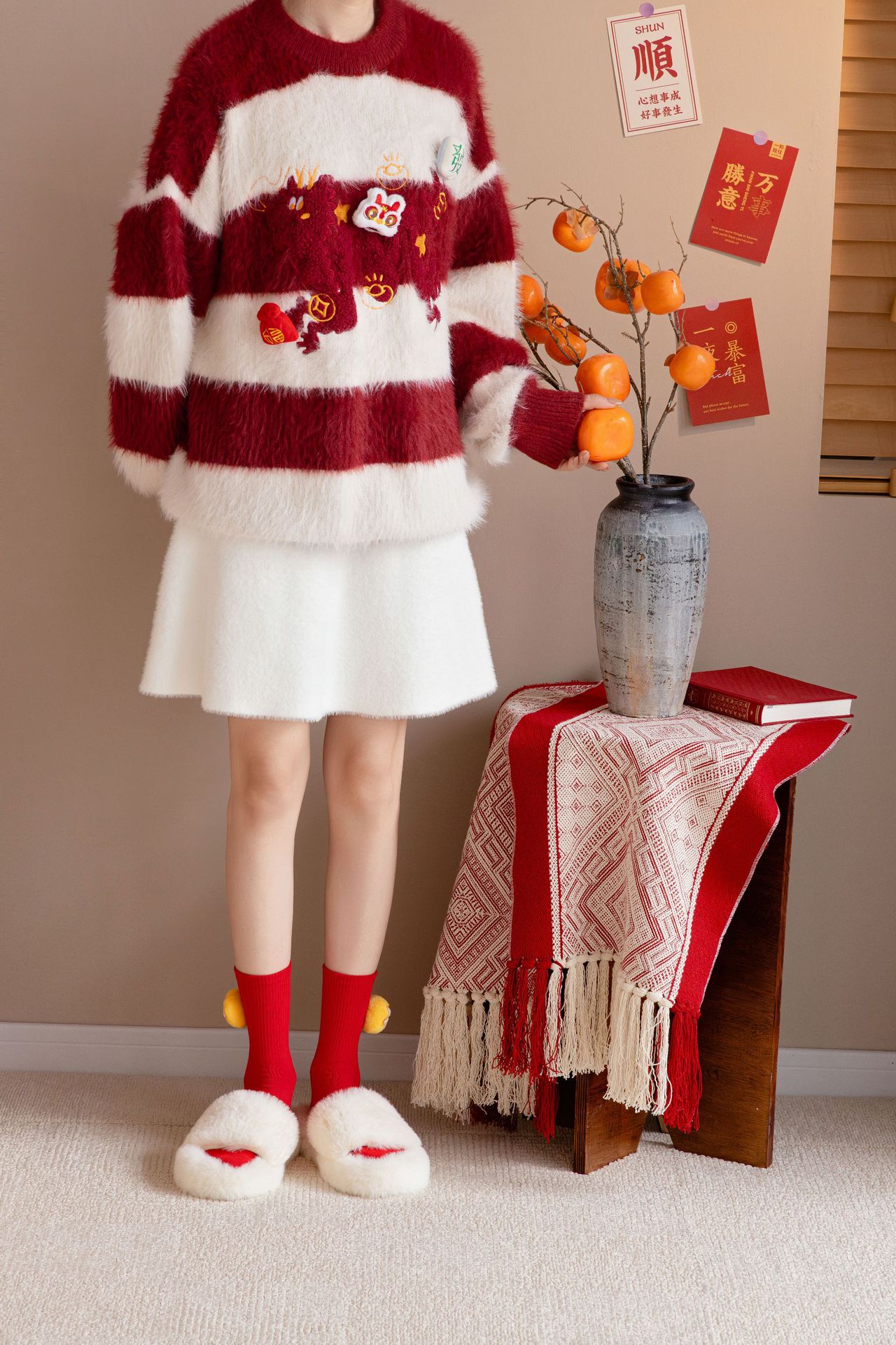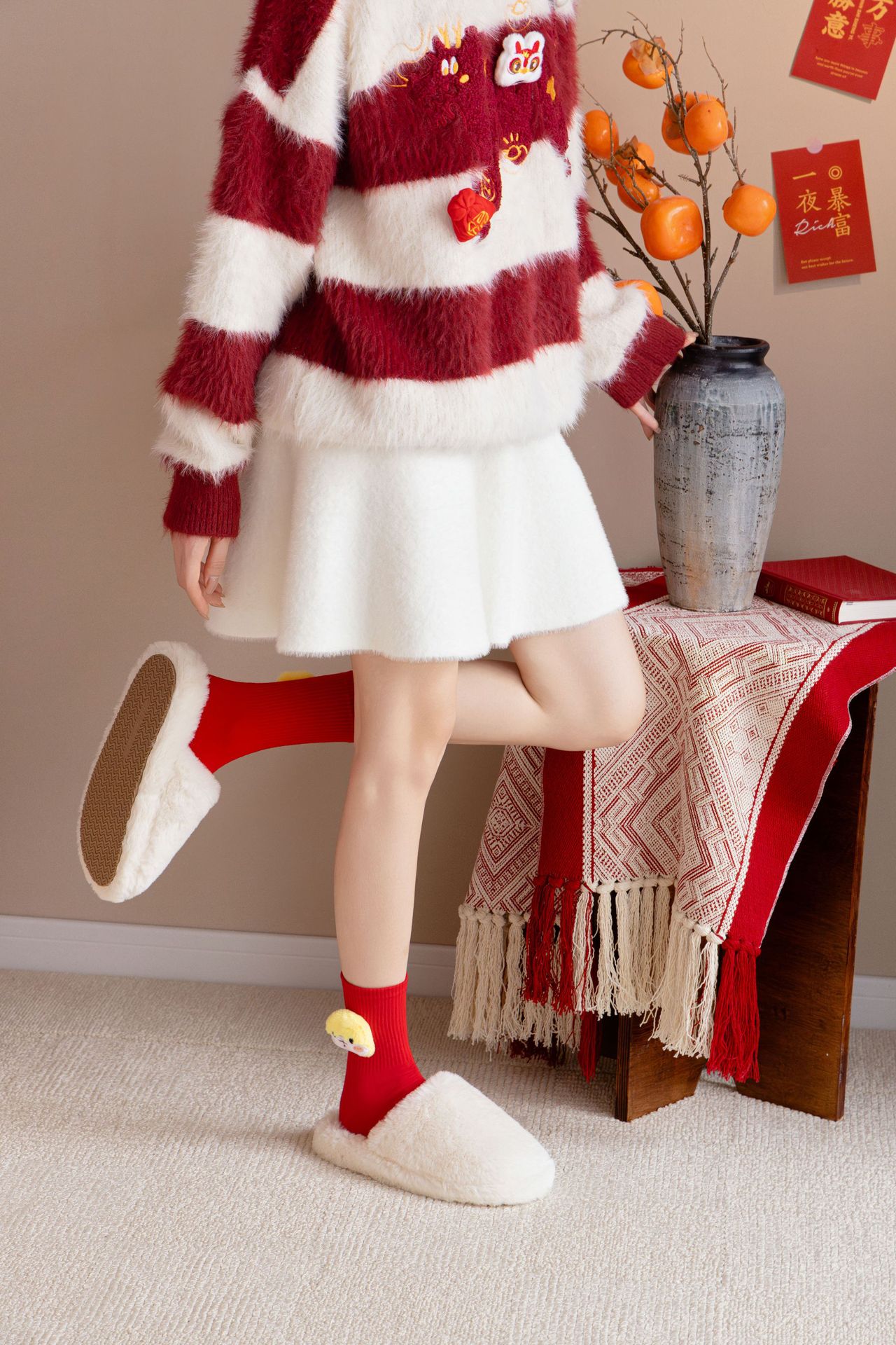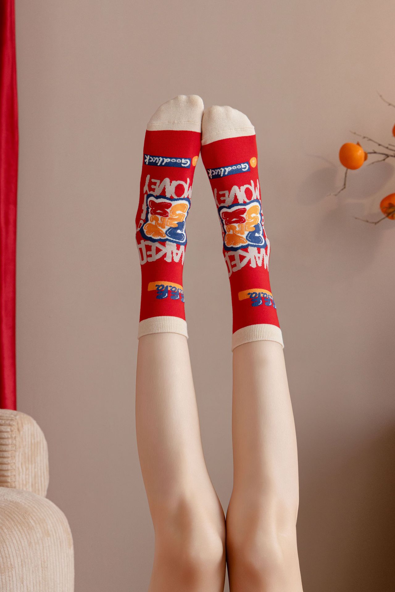 【赠手提袋】新年红袜子本命年大红色新年袜礼盒装 男女吸汗中筒棉袜卡通礼品 蛇年本命袜4双装