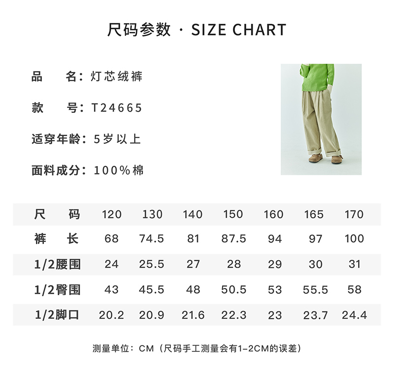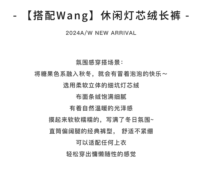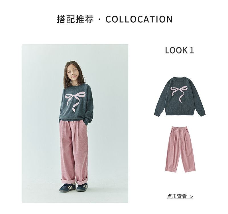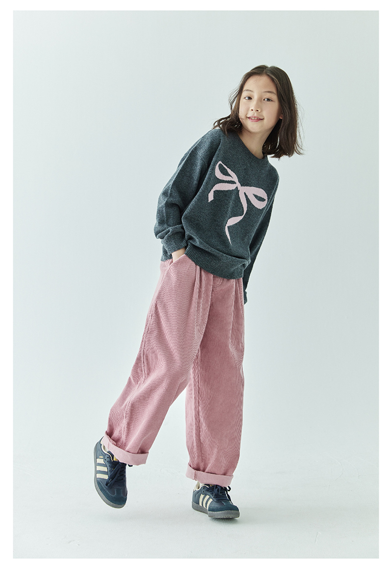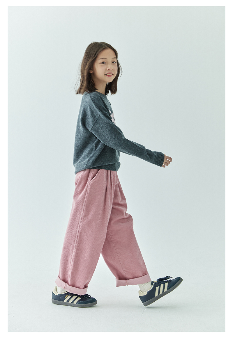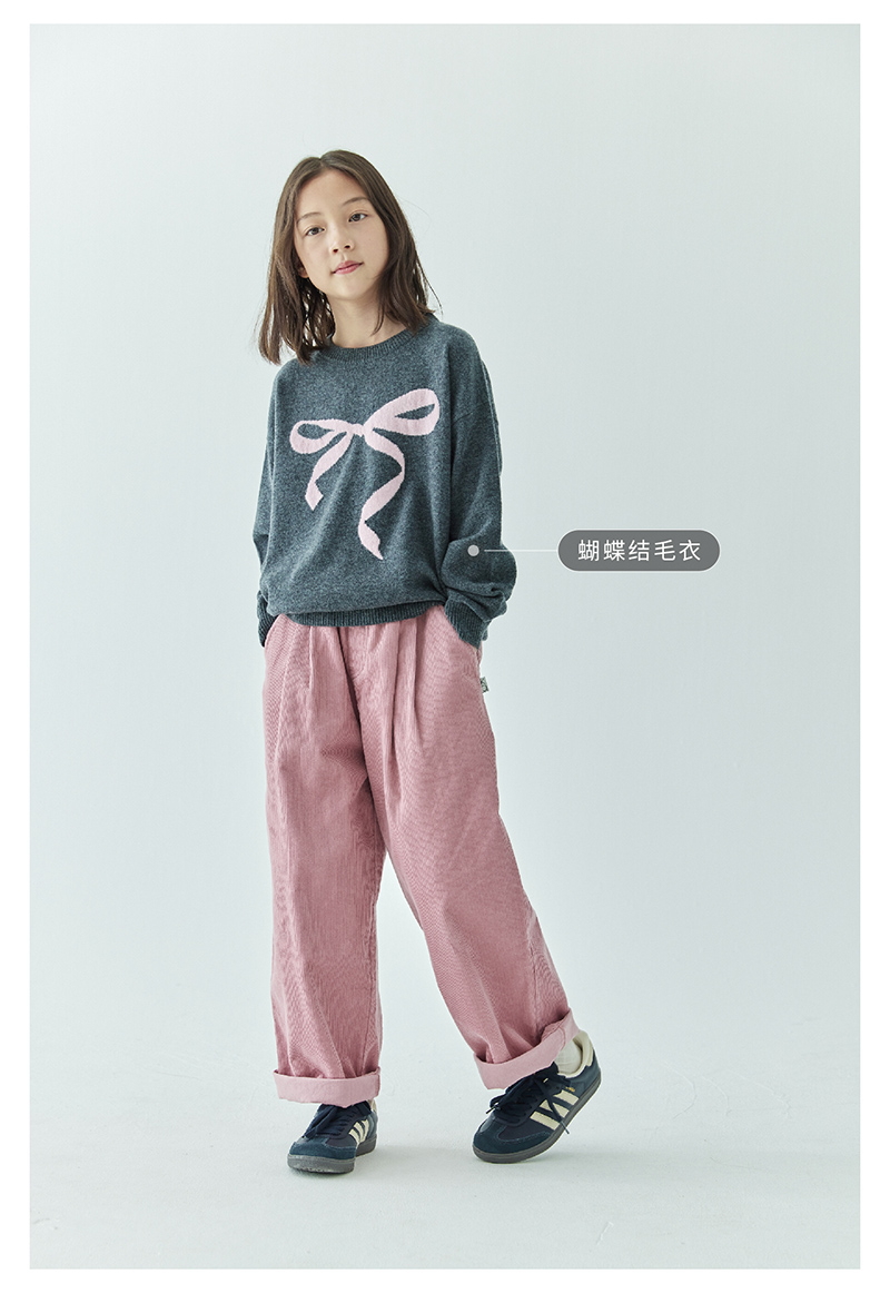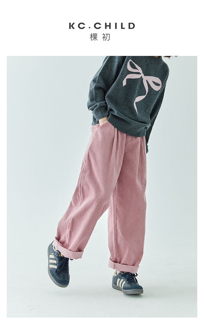 棵初2024年秋冬新品女童休闲全棉灯芯绒长裤亲子款慵懒随性阔腿裤