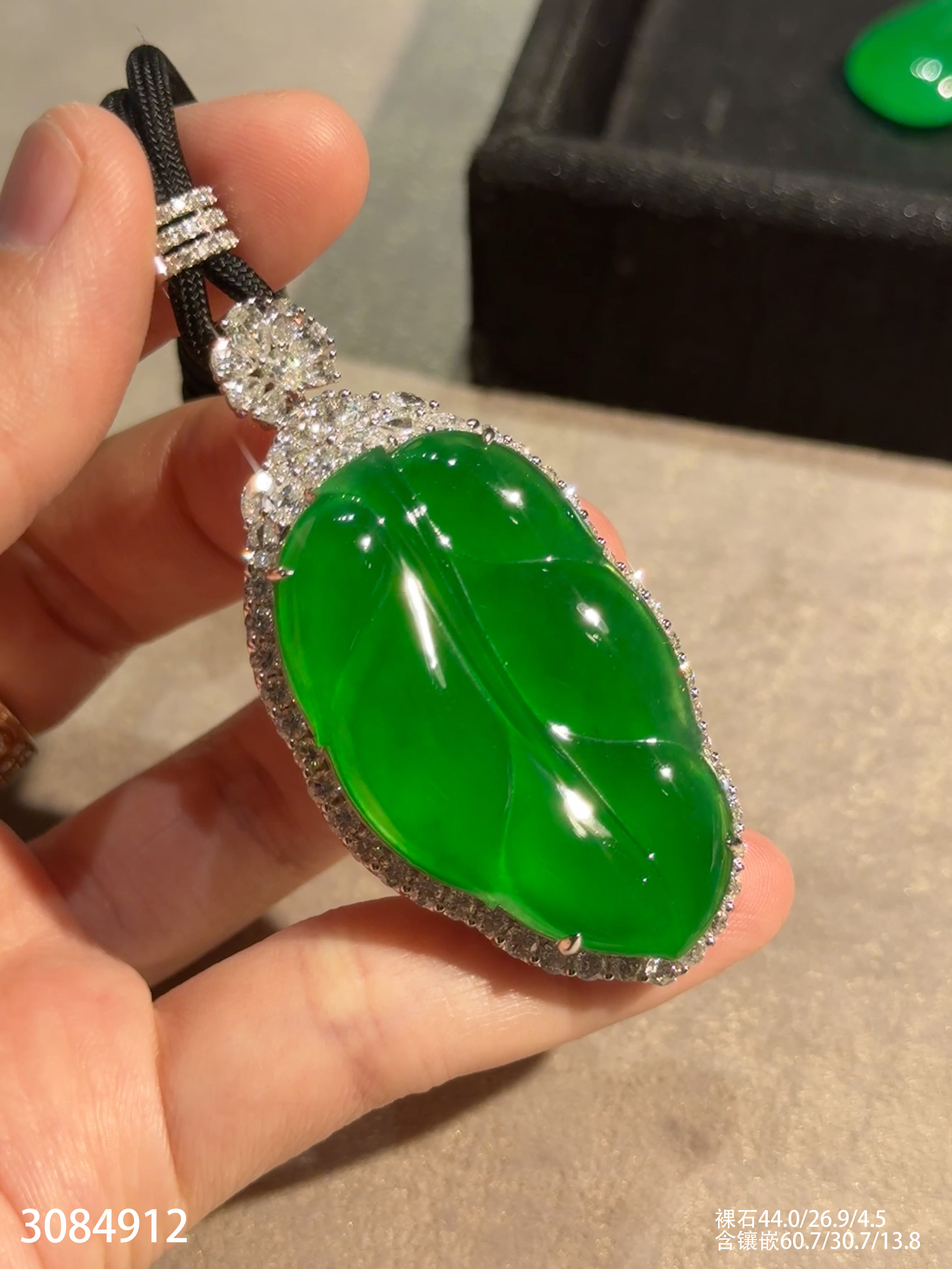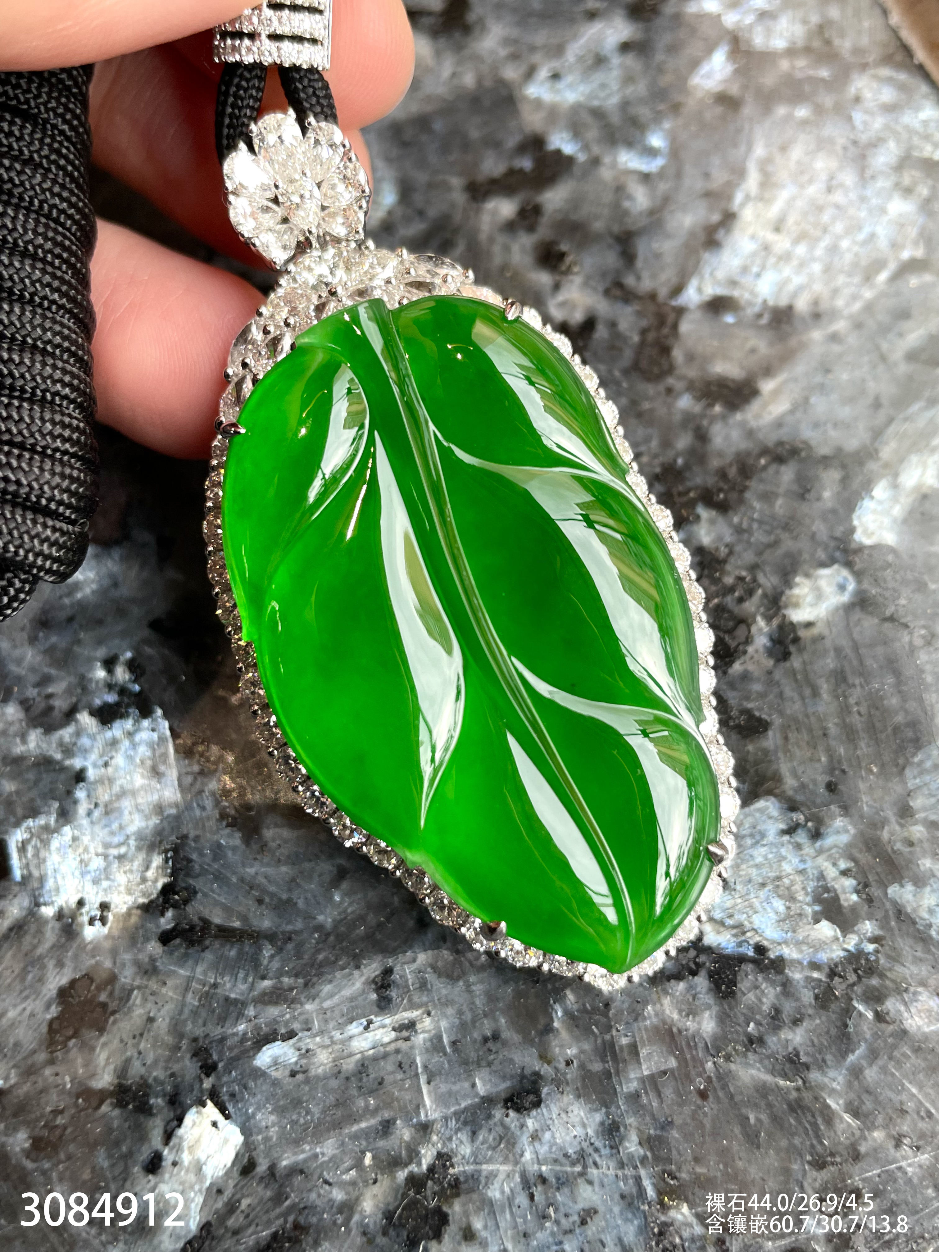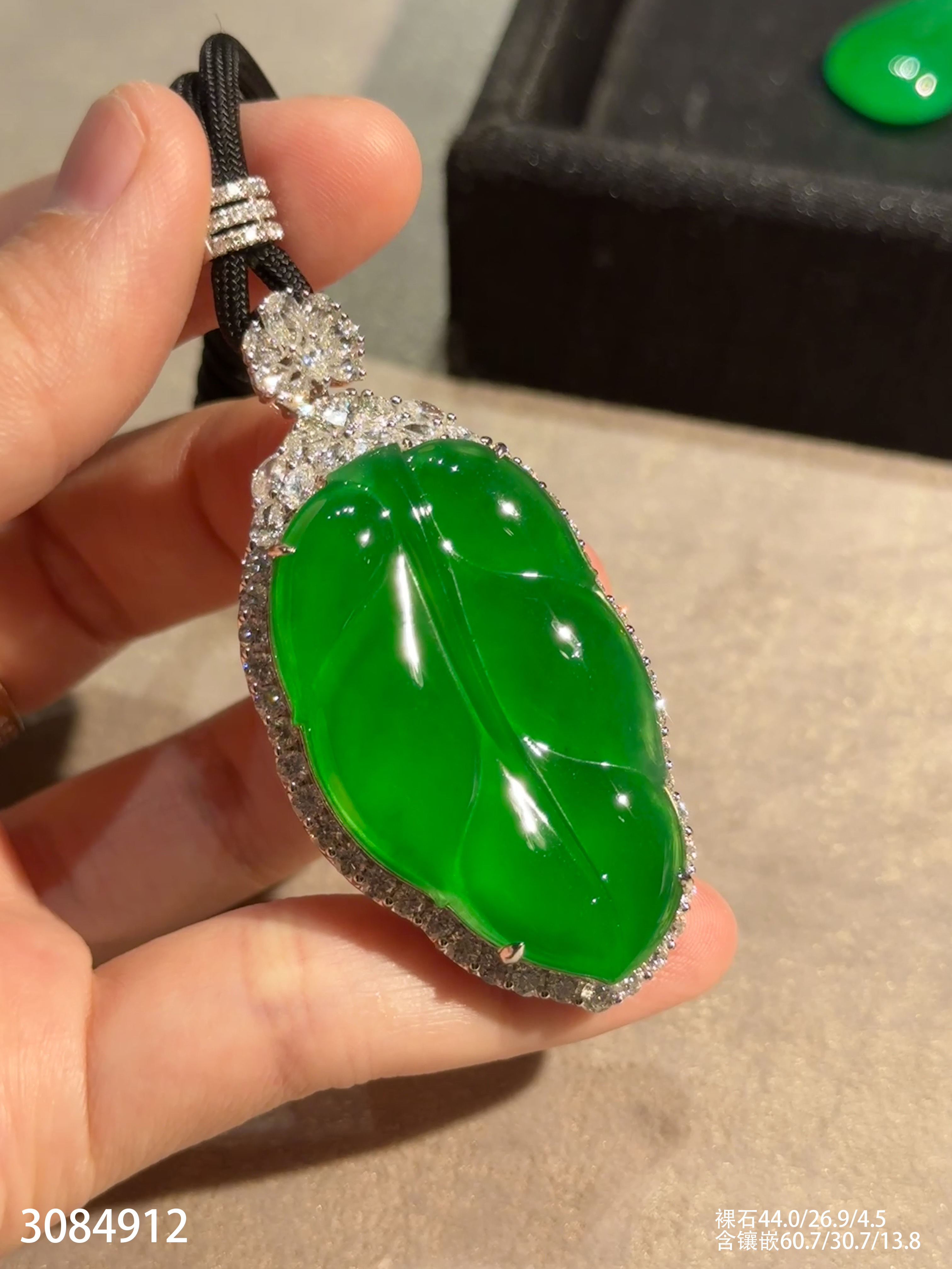 老坑玻璃种帝王绿叶子吊坠【3084912】具体价格微信咨询