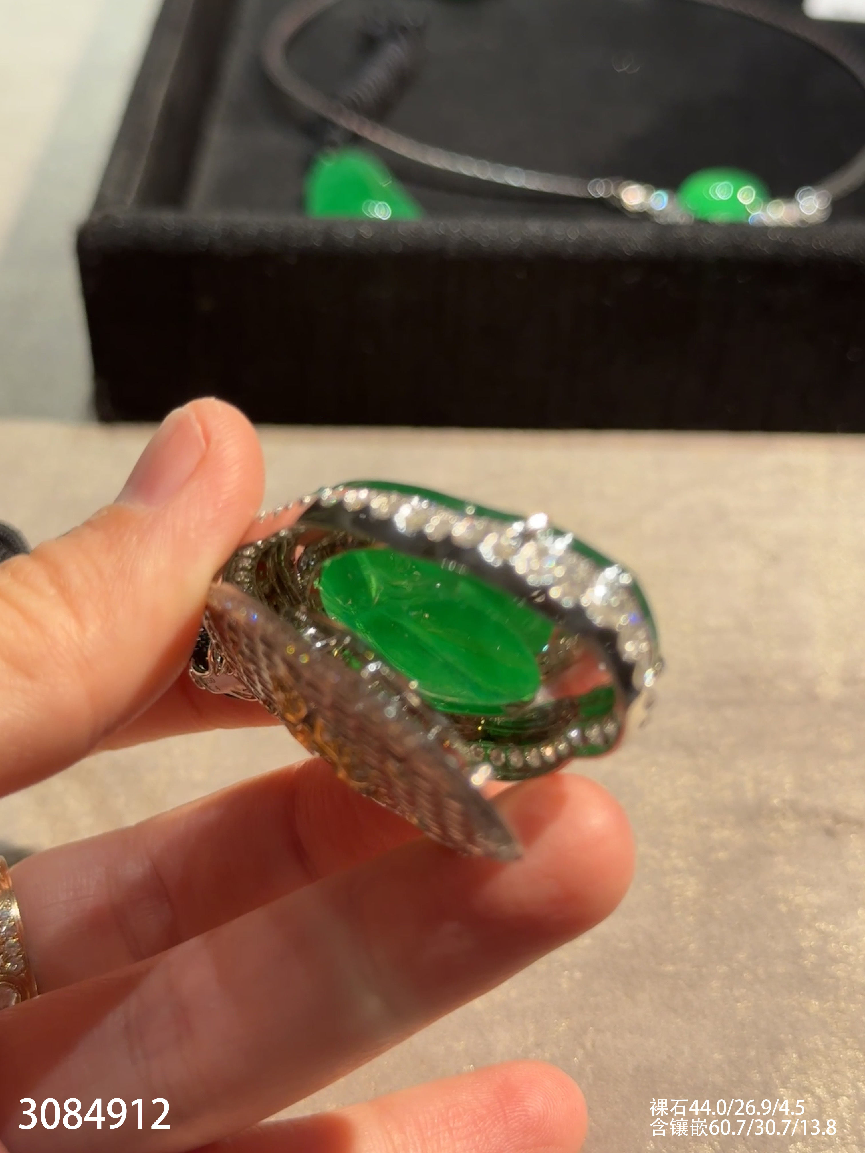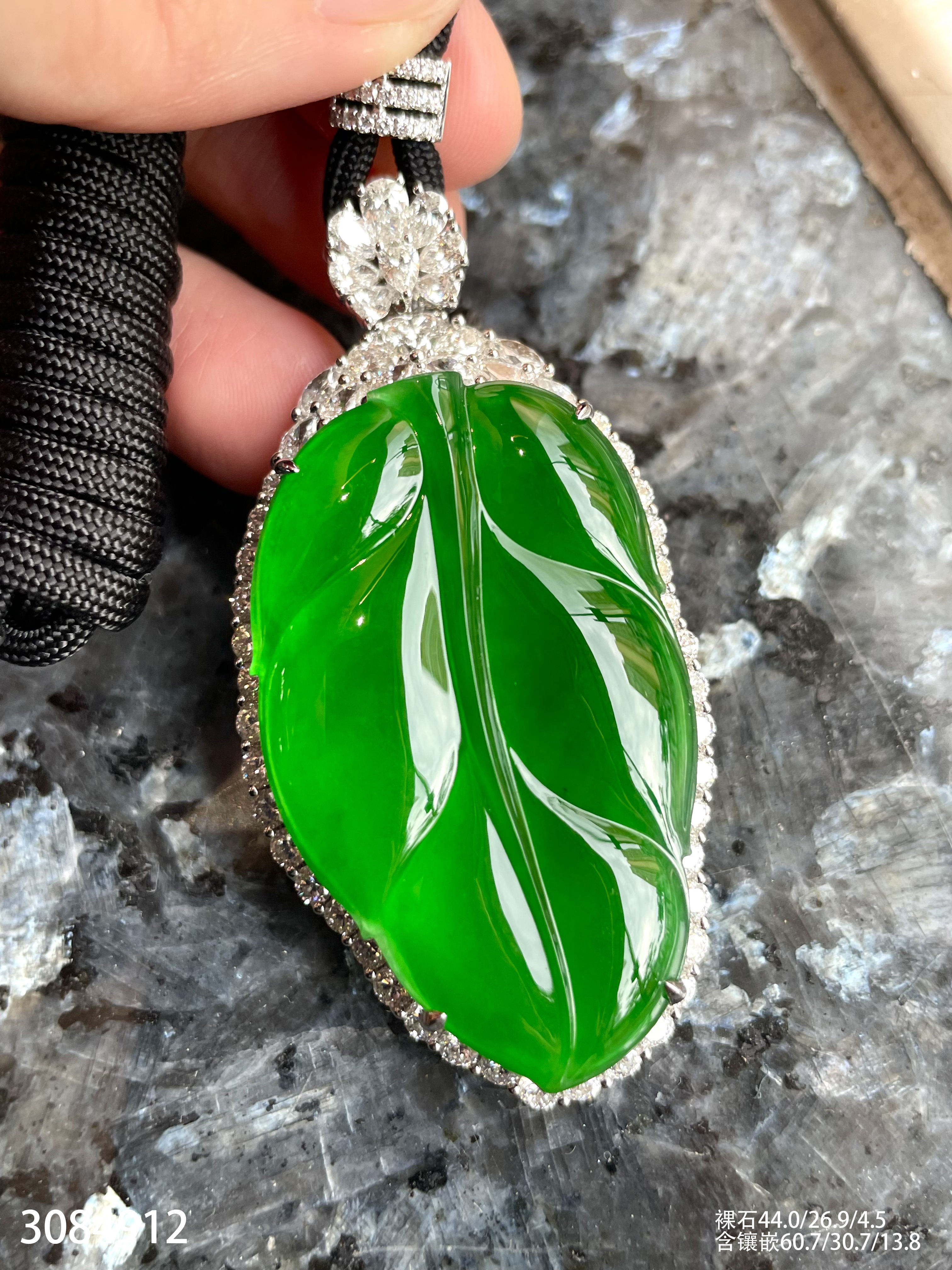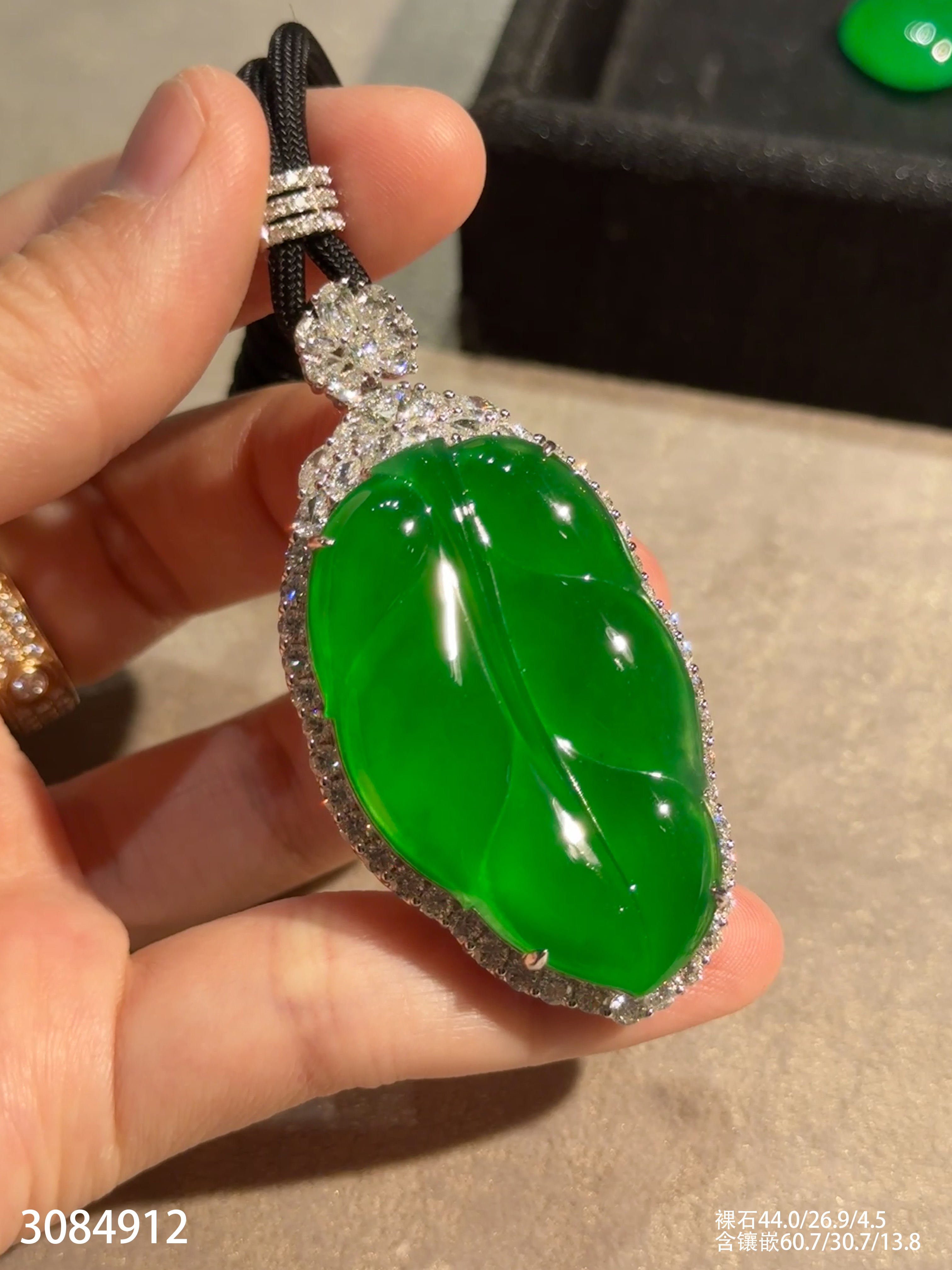 老坑玻璃种帝王绿叶子吊坠【3084912】具体价格微信咨询