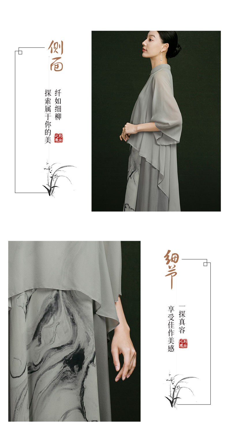 吉祥衣家新中式国风高定真丝裙子气质连身裙女装窗含西岭连衣裙