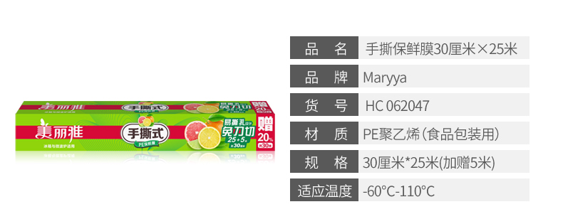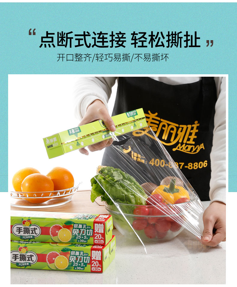 【批发】美丽雅 手撕点断式免刀切一次性保鲜膜盒装30cm*(25+5)m