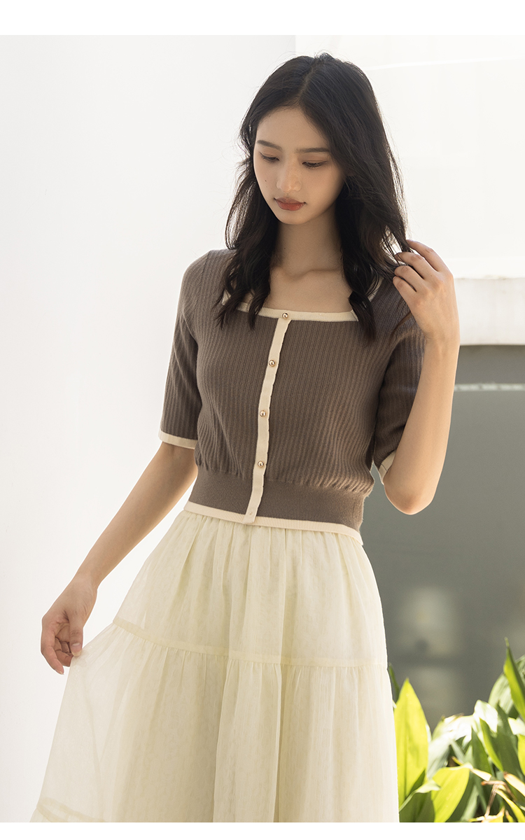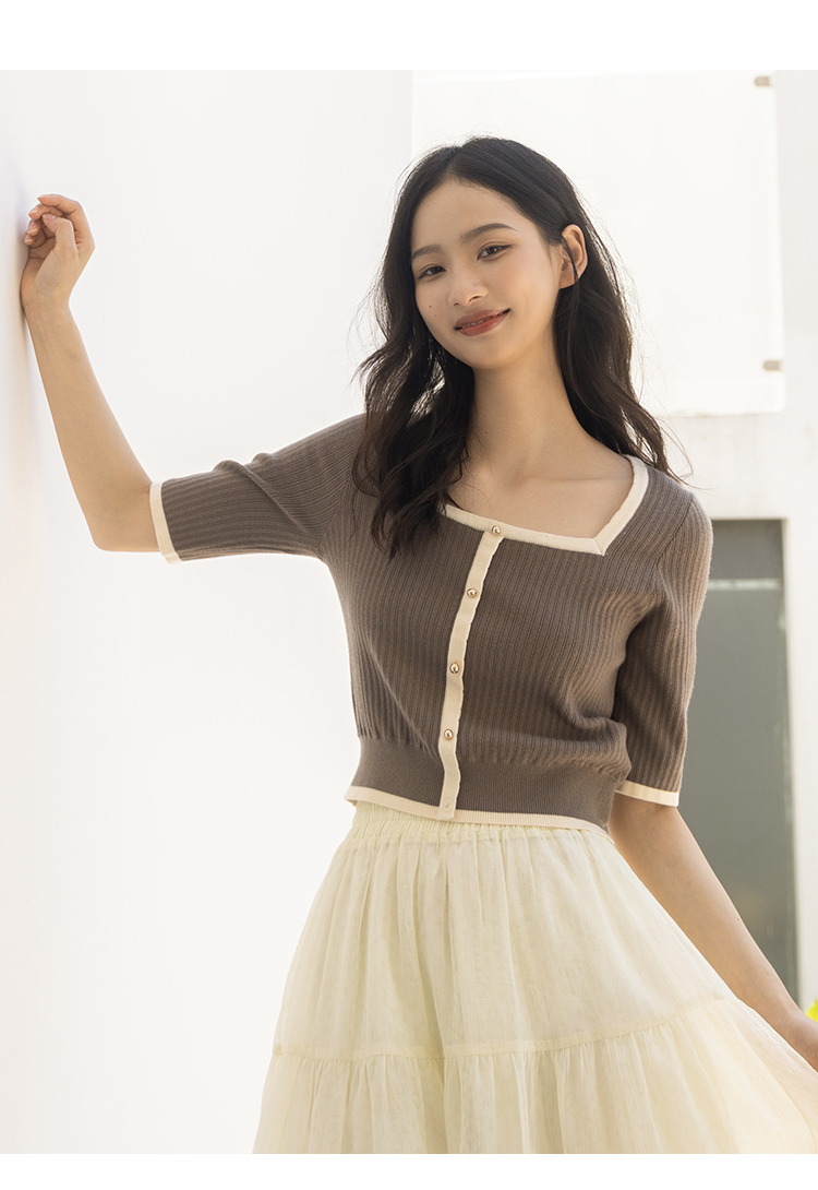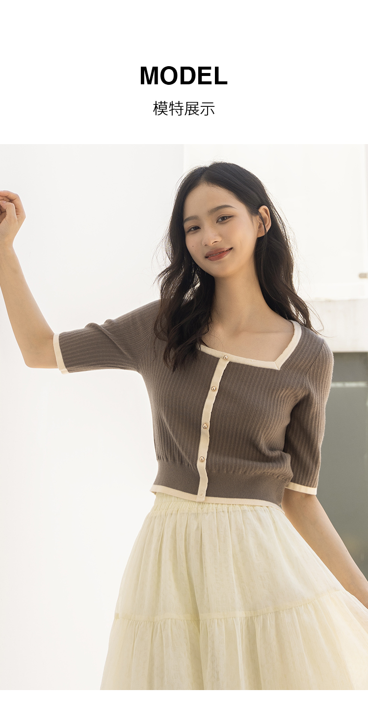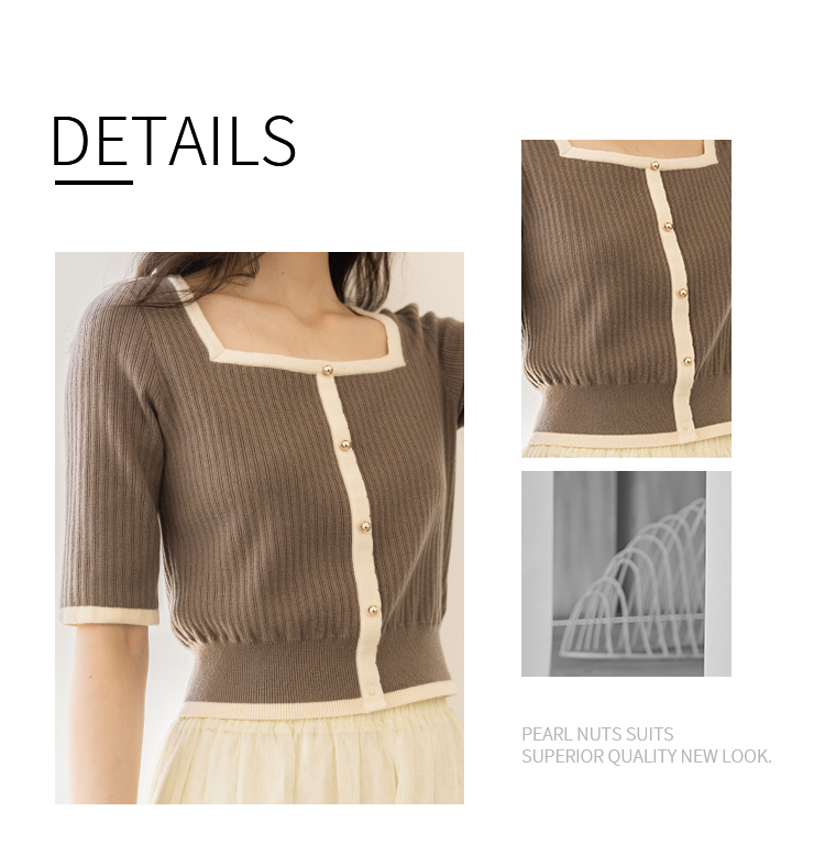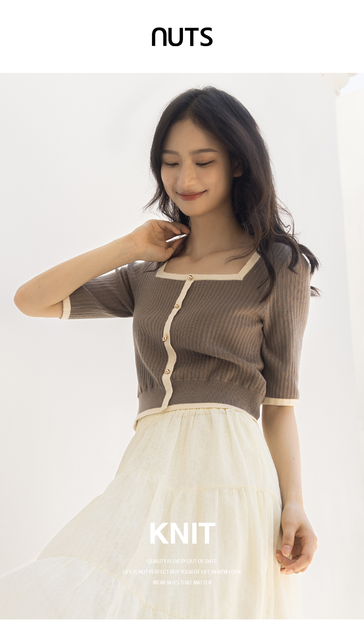 NUTS针织衫秋季新款时尚百搭短袖方领套头衫上衣4320503A1