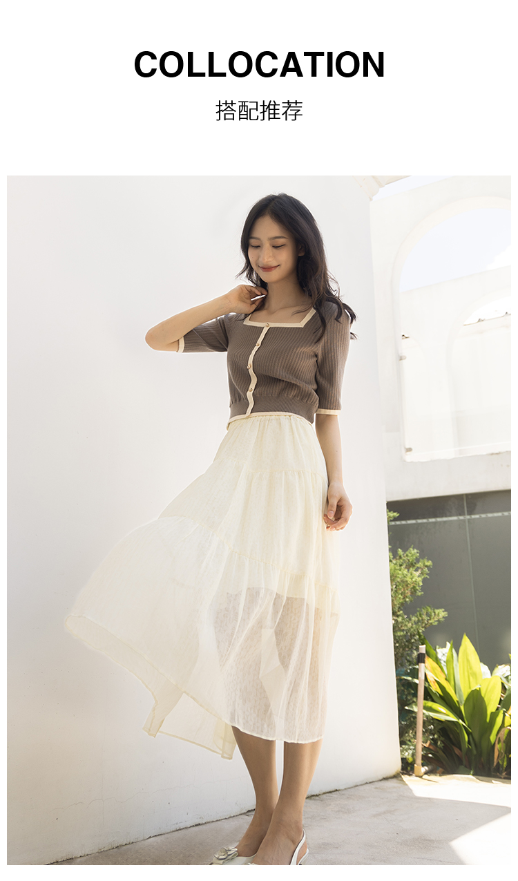 oldcolour秋季新款法式拼接针织衫气质小众修身上衣女P330507A1