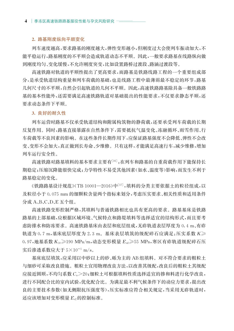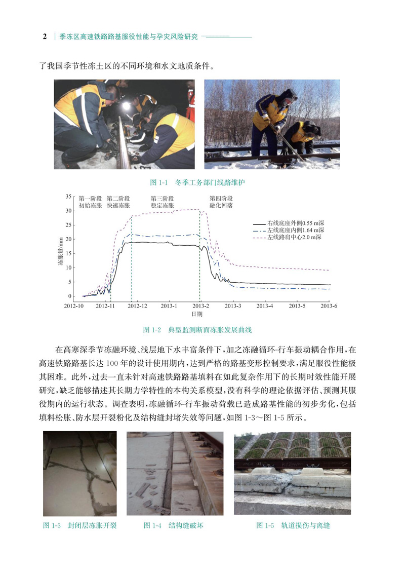 本书全面系统总结论述了项目组近10年科研攻关成果,对季冻区高铁路基服役性能演化规律与孕灾风险评估理论进行了系统的阐述,内容包括季节性冻融环境下高铁路基填料性能时效演化规律及力学表述、非饱和粗粒料冻胀规律与多场耦合模型、季冻区高铁路基动力响应规律与变形稳定状态、季节性冻融环境下高铁路基结构服役状态综合评价方法、季节性冻融环境下高铁路基冻胀维护技术,涵盖了季冻区高铁路基服役性能演化与孕灾风险评估的基础理论、试验验证、工程应用等最新研究成果,为我国季冻区高铁路基服役劣化分析评估和科学维养提供了理论参考和支撑,对类似应用场景下季冻区交通基础设施的工程建设、耐久性评估、病害控制、灾变防控等具有指导意义。