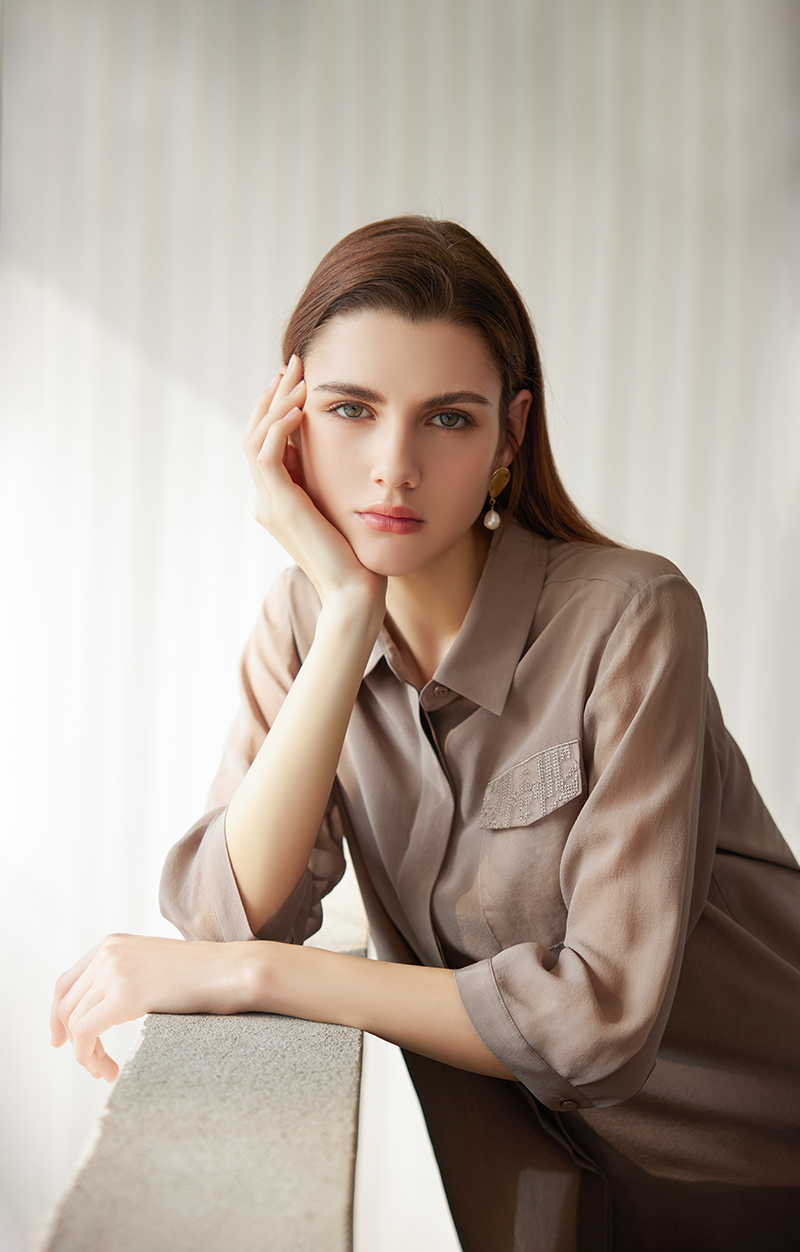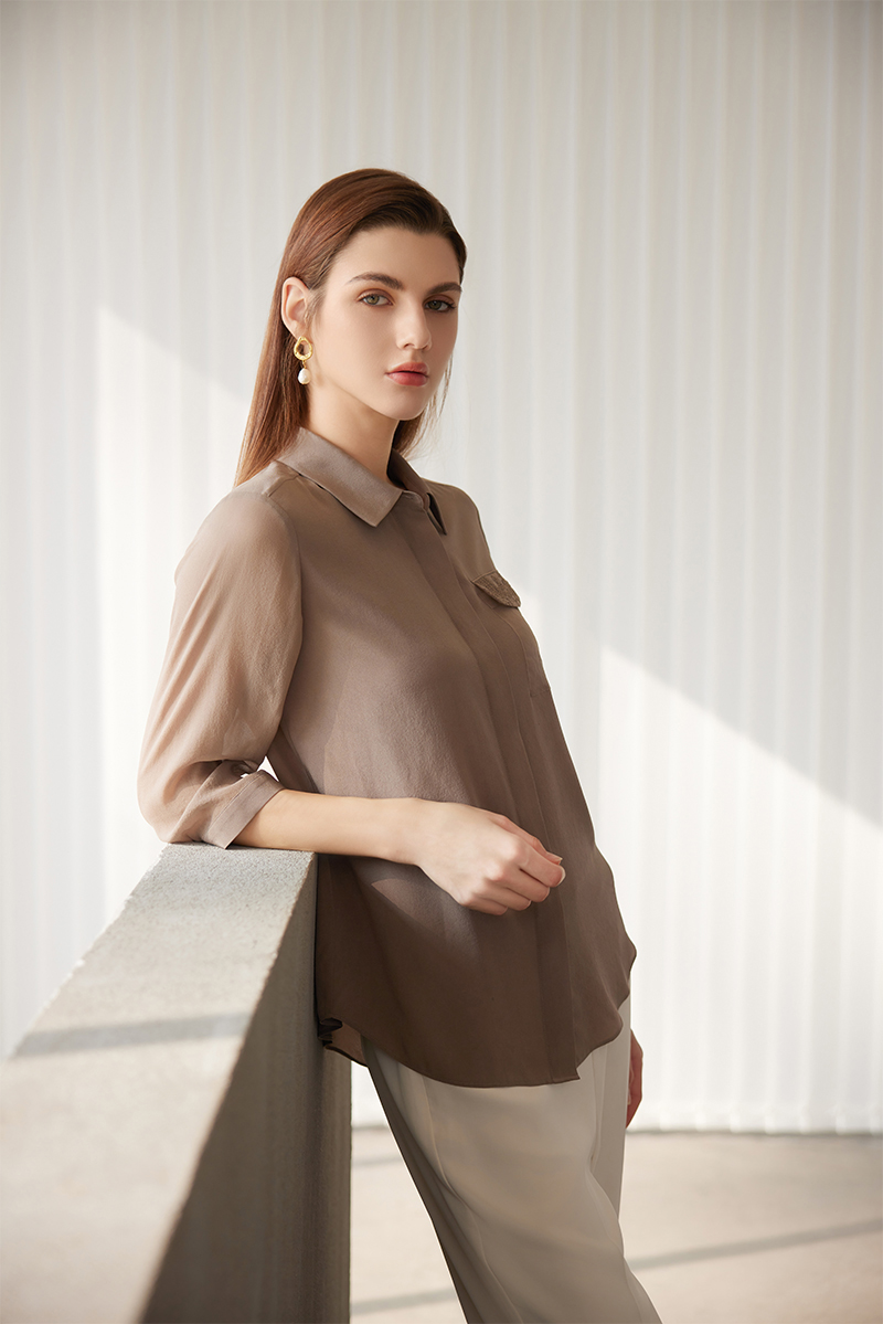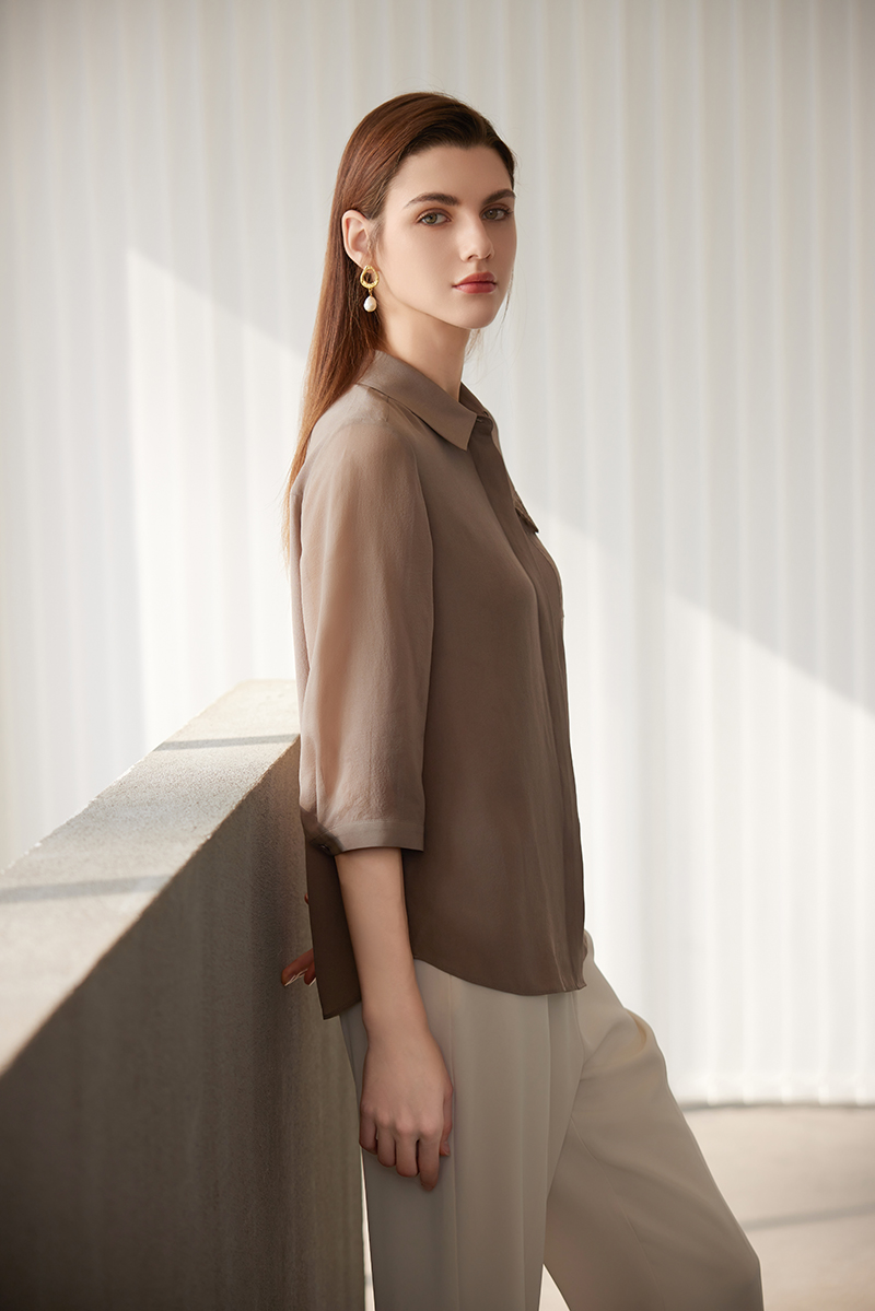 【七分袖桑蚕丝衬衫】24年春夏女士新品100%桑蚕丝超薄真丝上衣