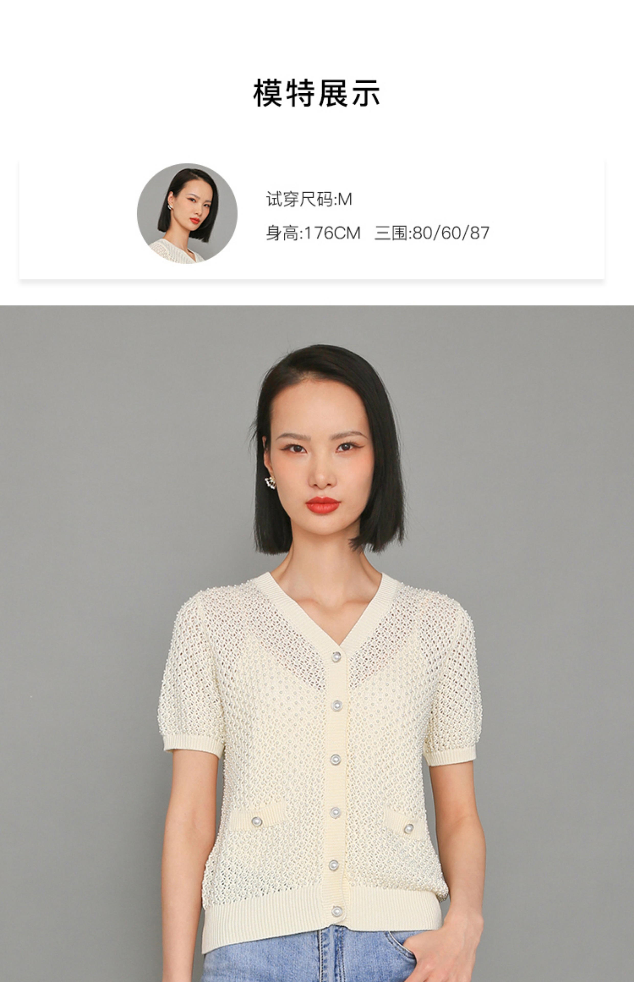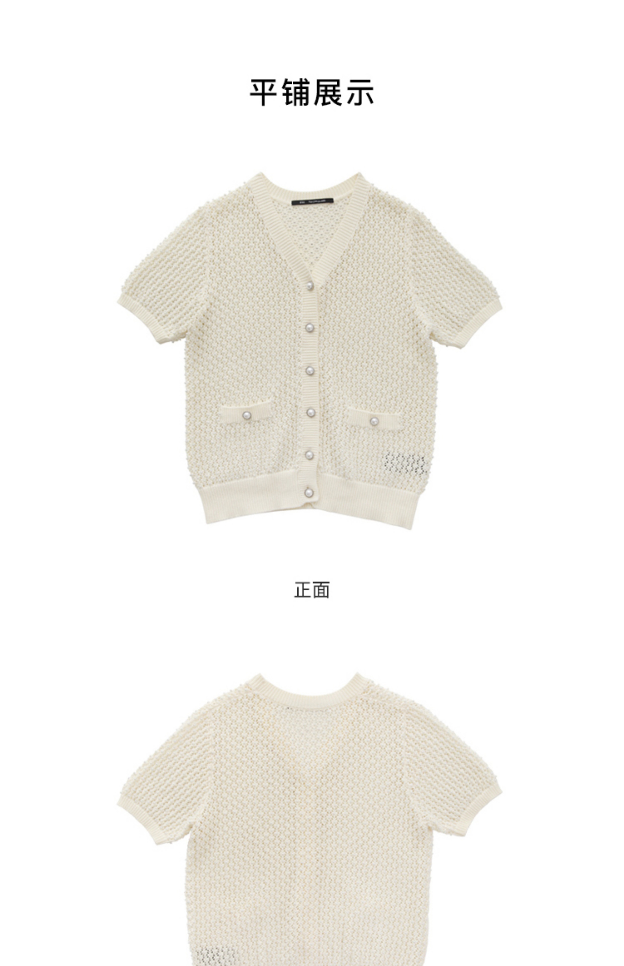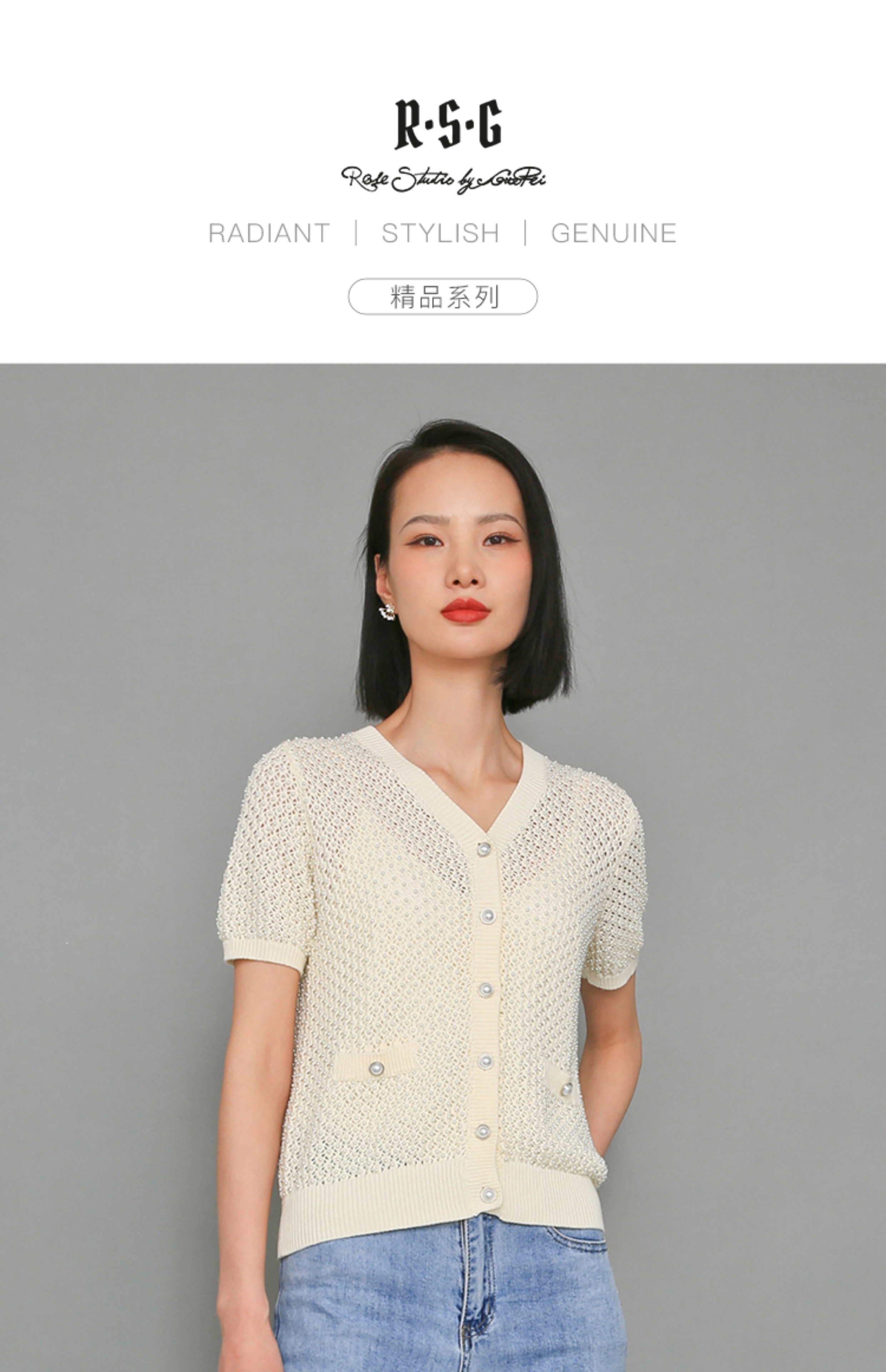 RSG郭培成衣品牌全钉珠镂空钩花V领短袖女夏上衣