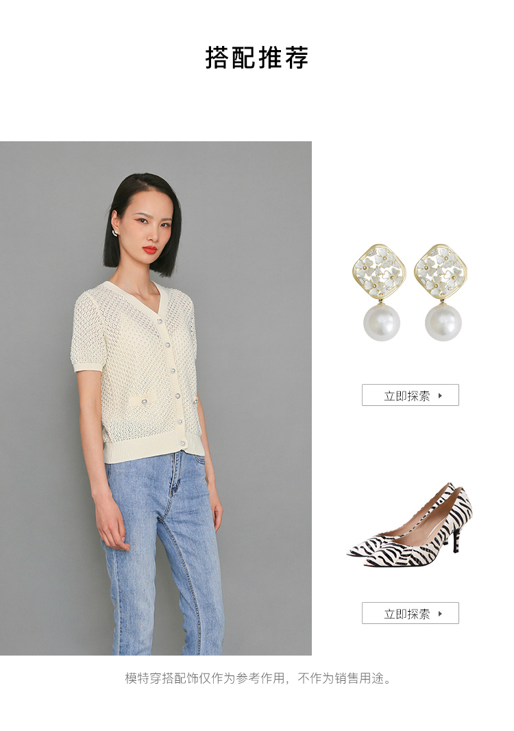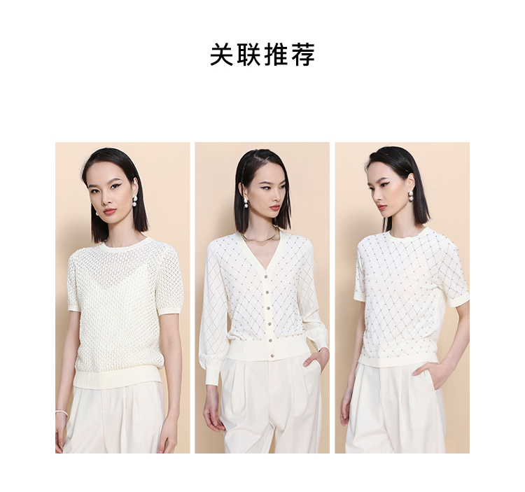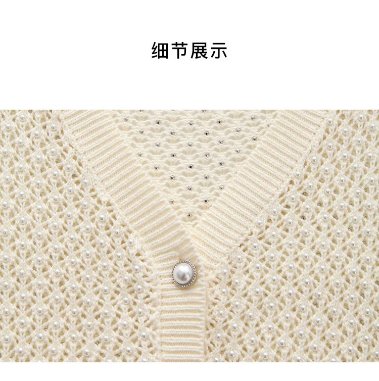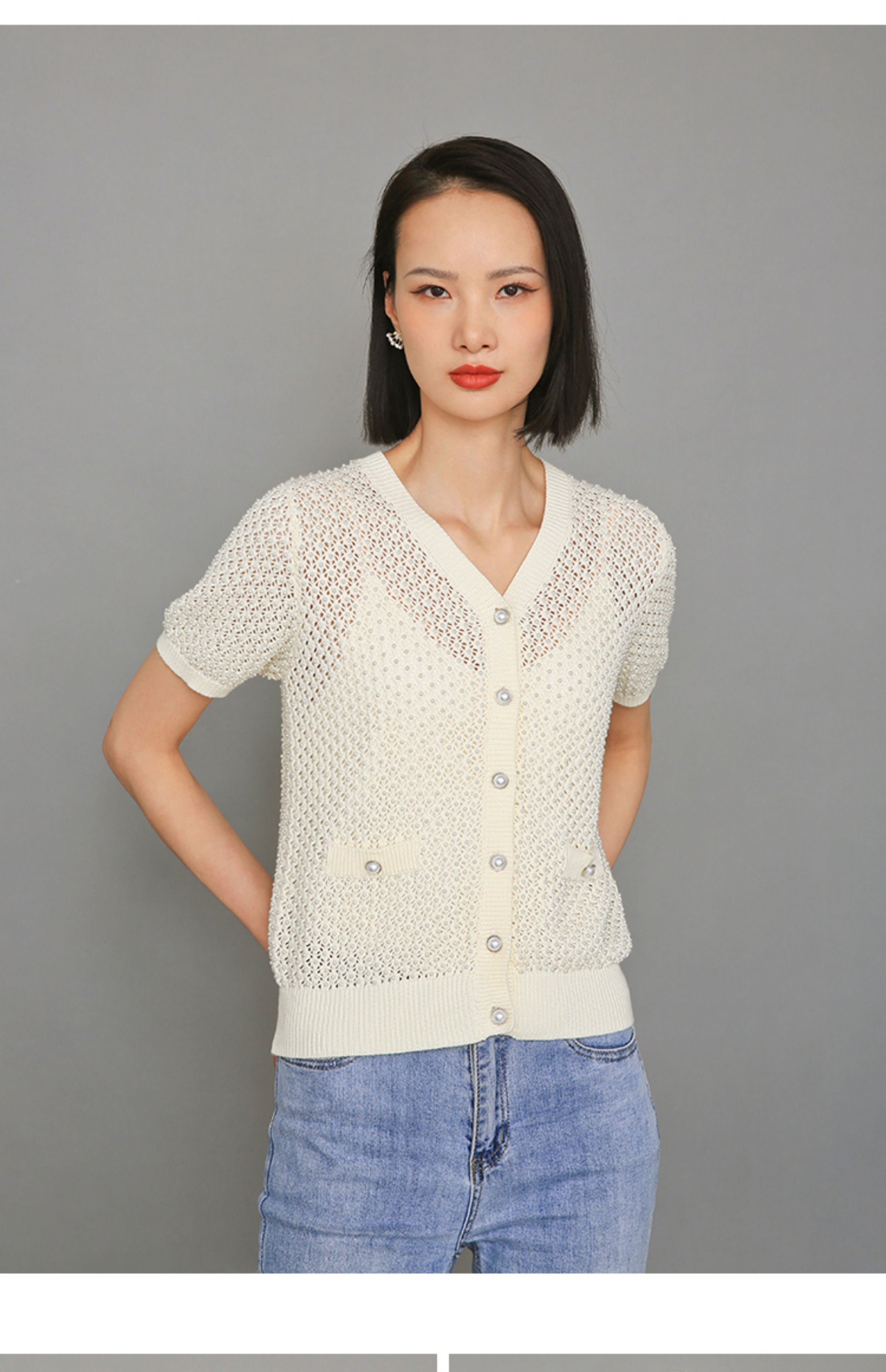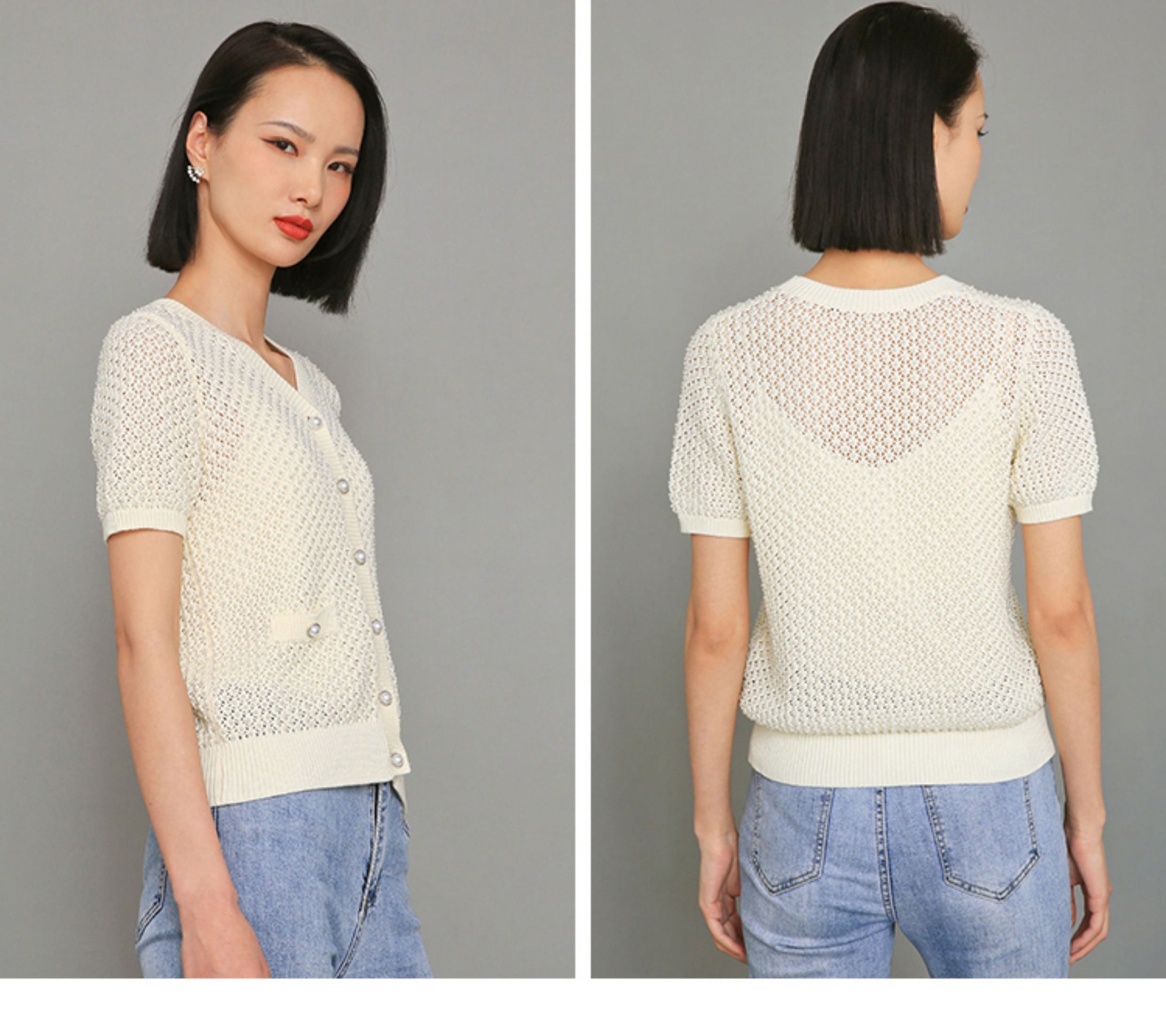 RSG郭培成衣品牌全钉珠镂空钩花V领短袖女夏上衣