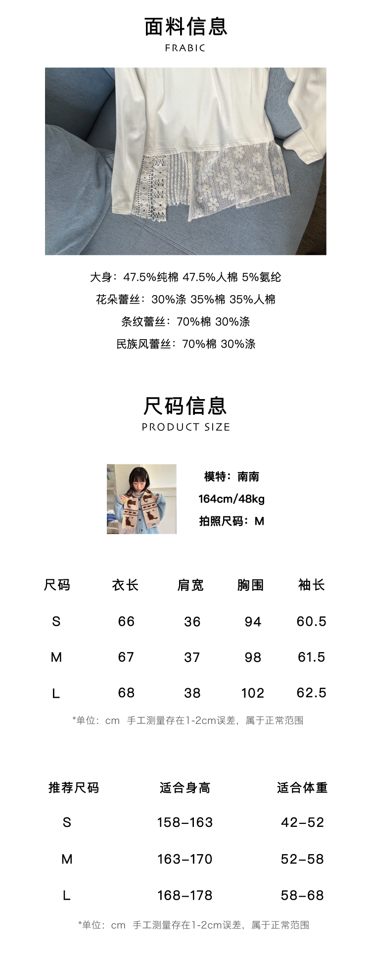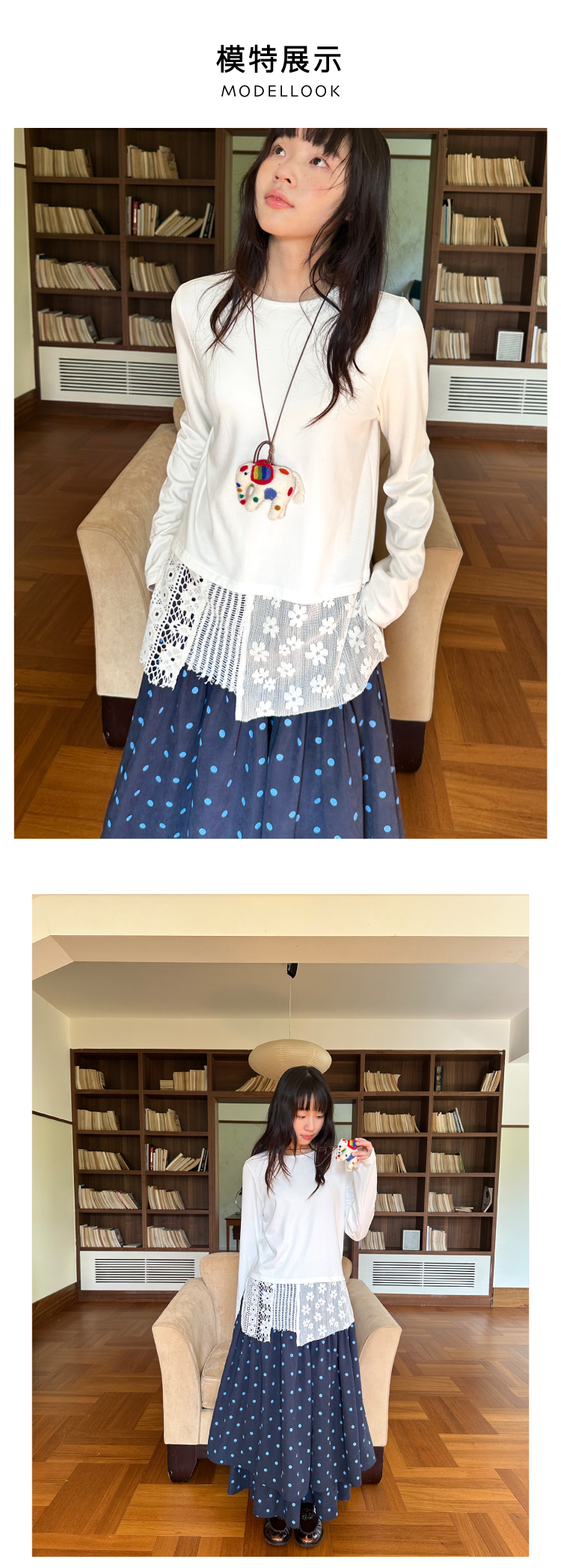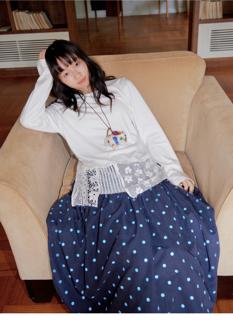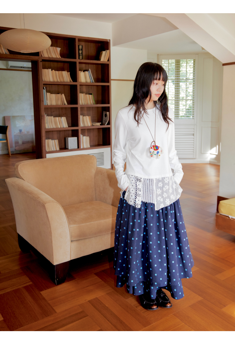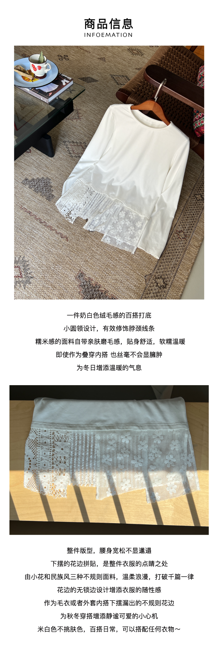 nothe Case布然/NC253202/「柔软花间」蕾丝拼接下摆长袖打底衫