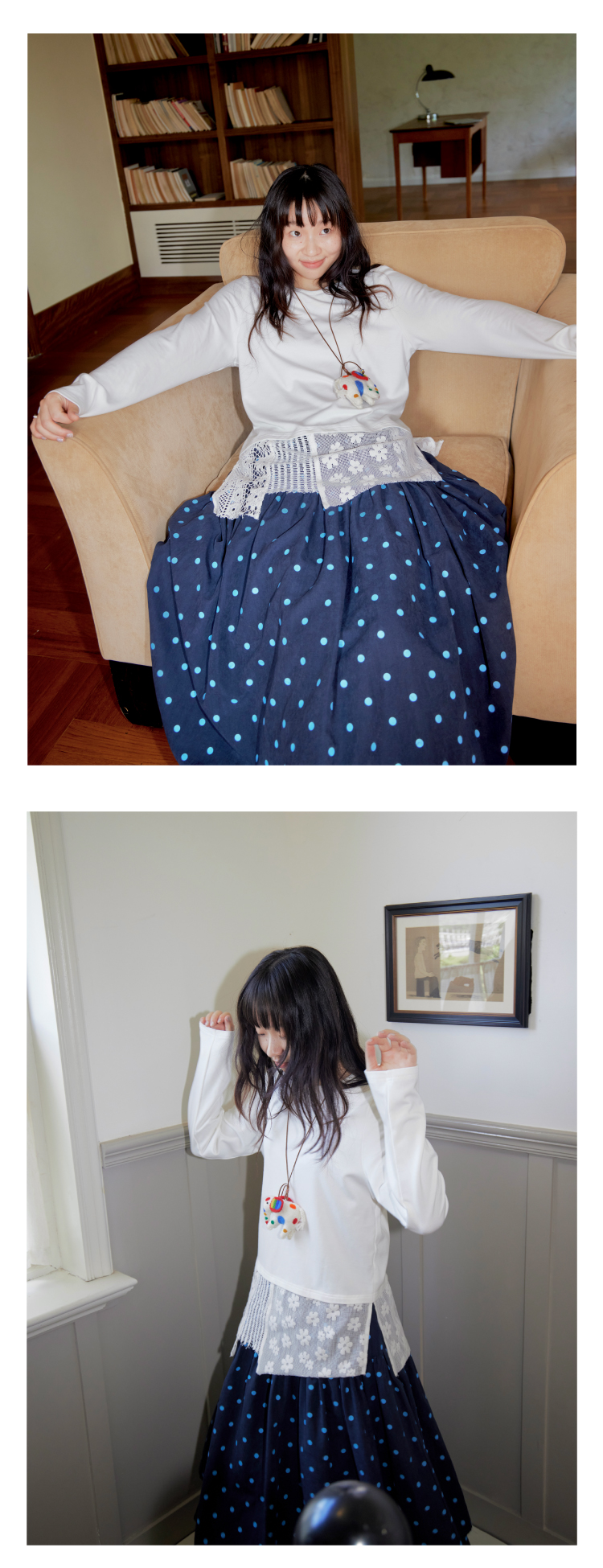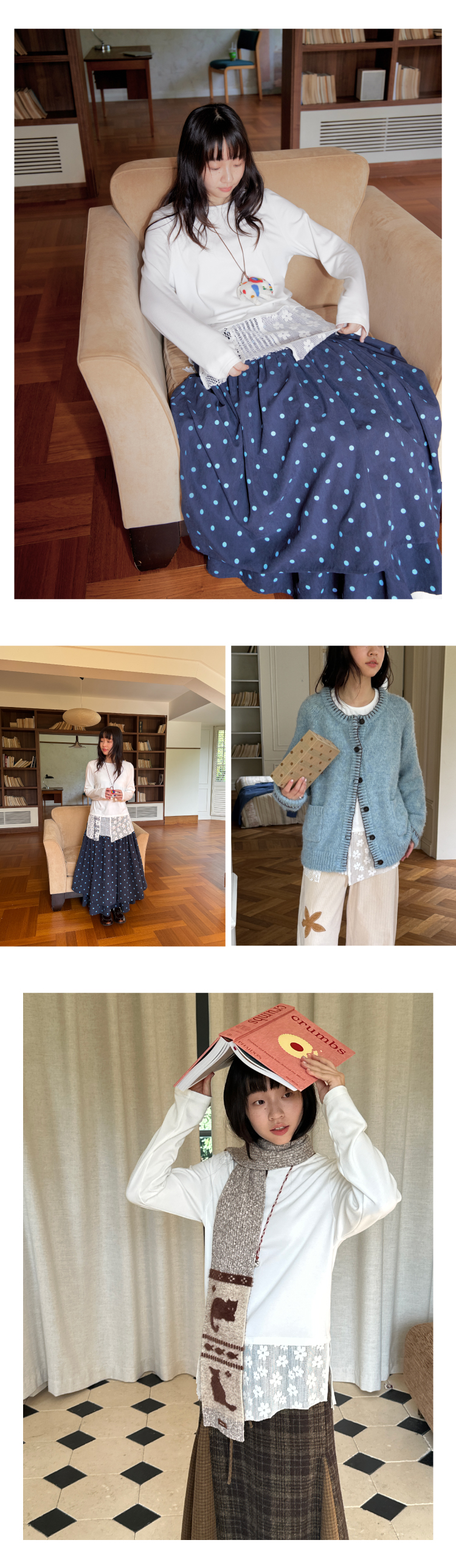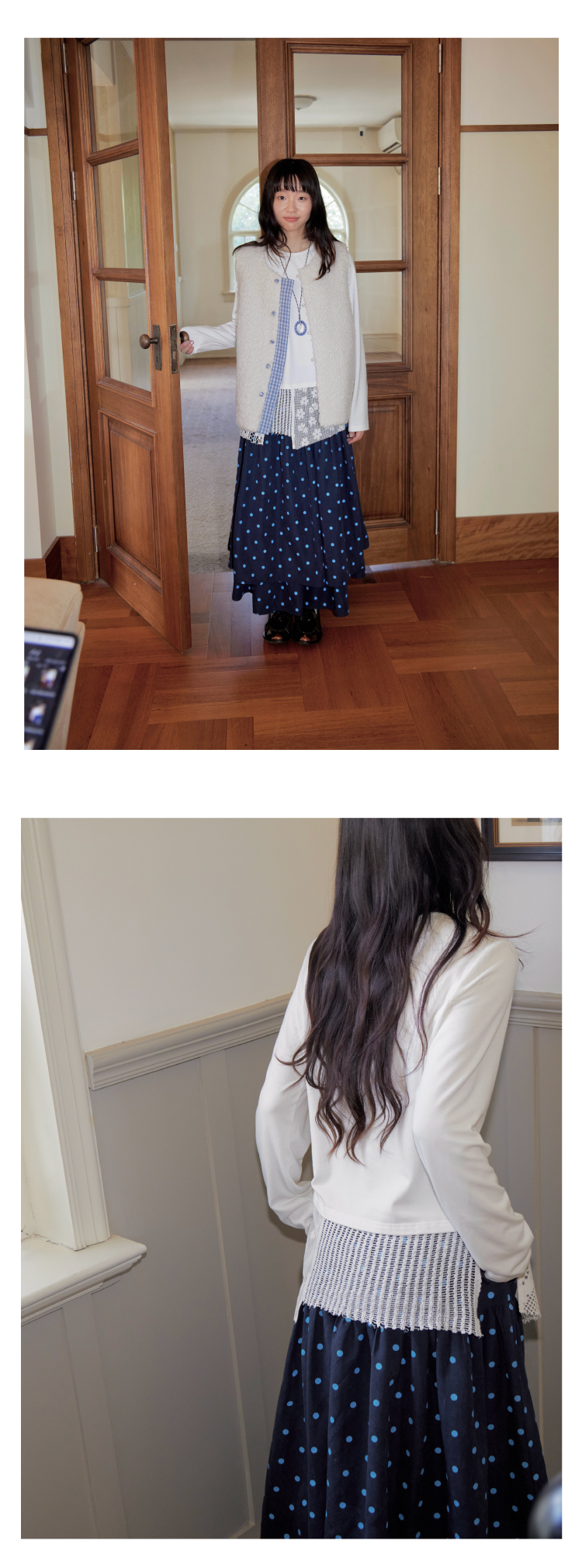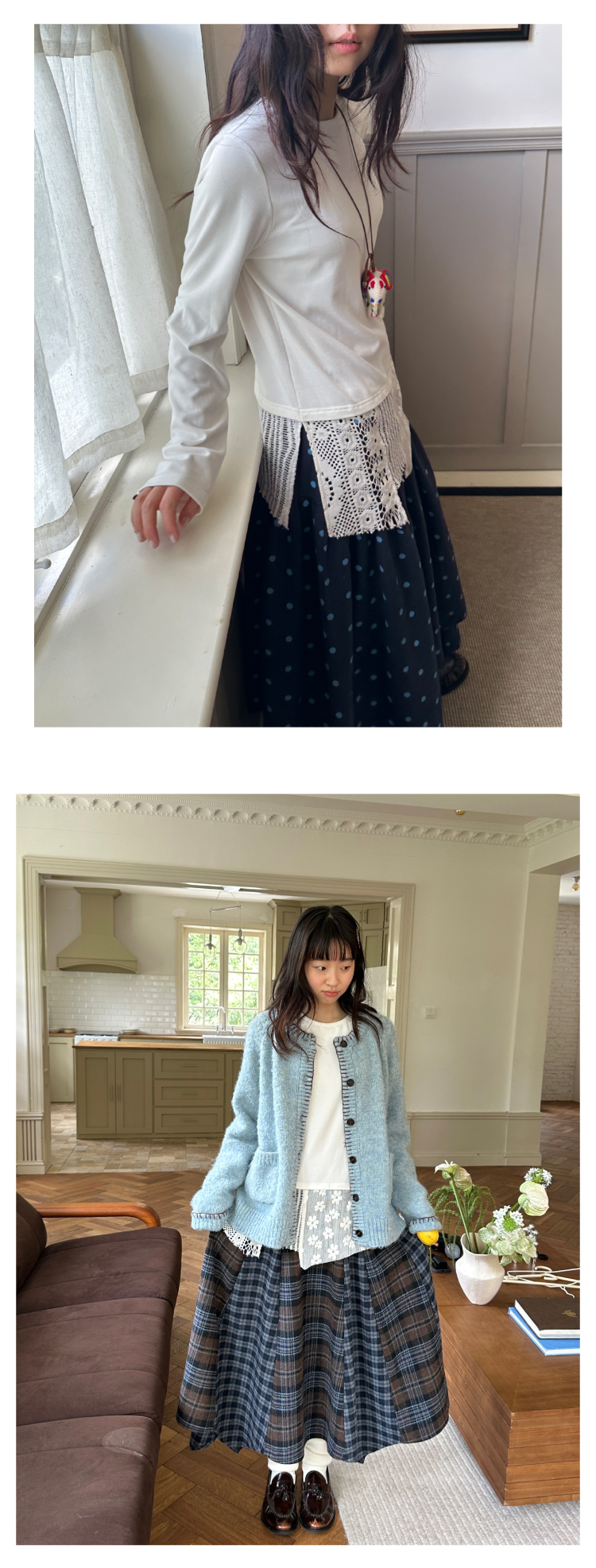 nothe Case布然/NC253202/「柔软花间」蕾丝拼接下摆长袖打底衫