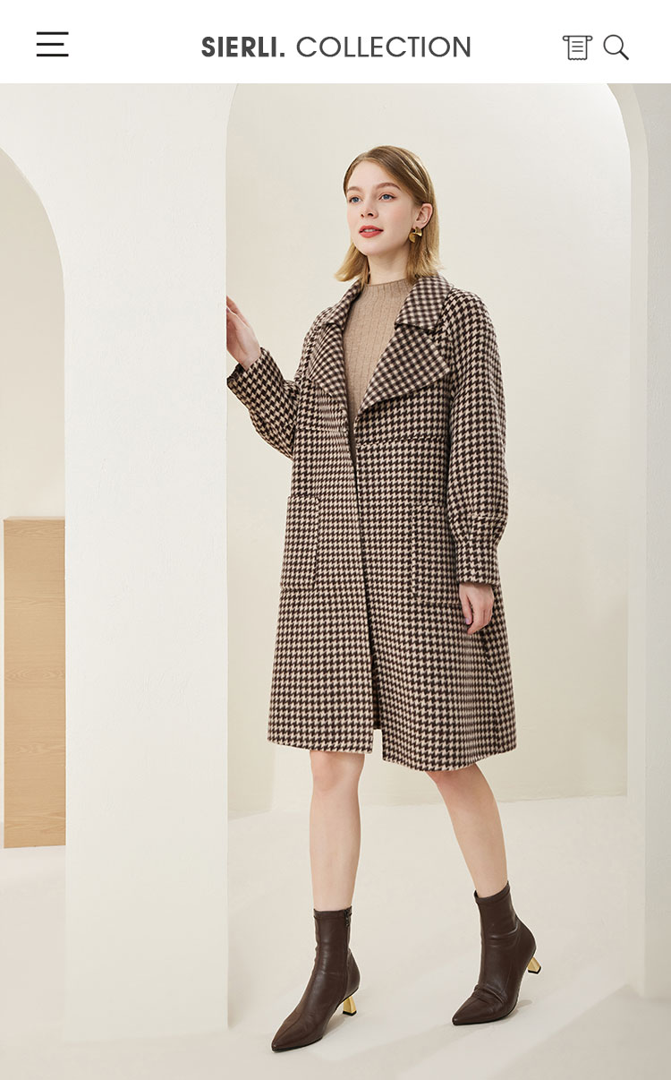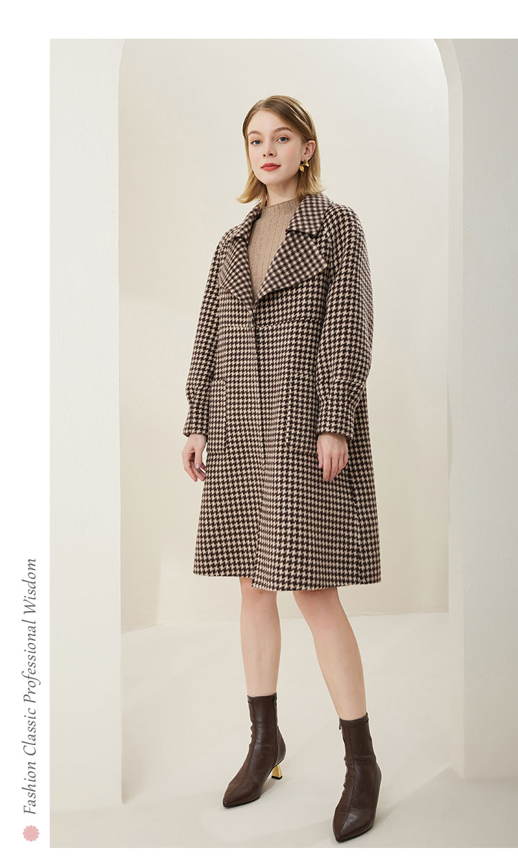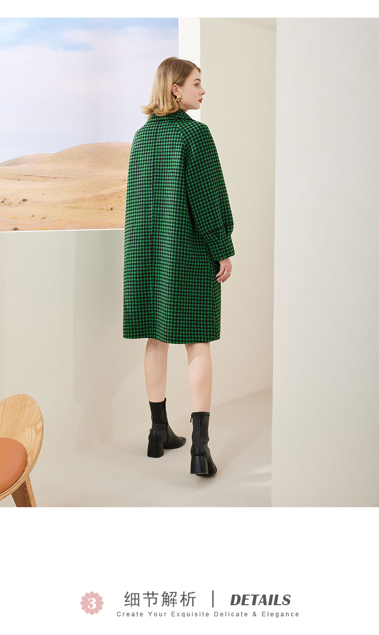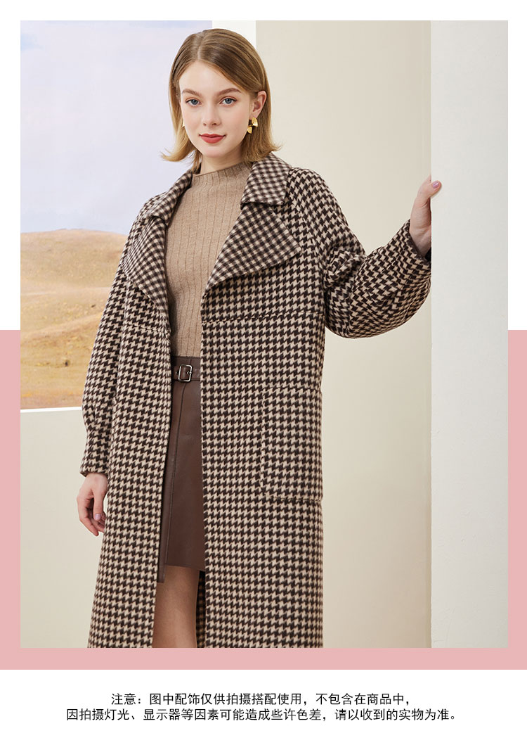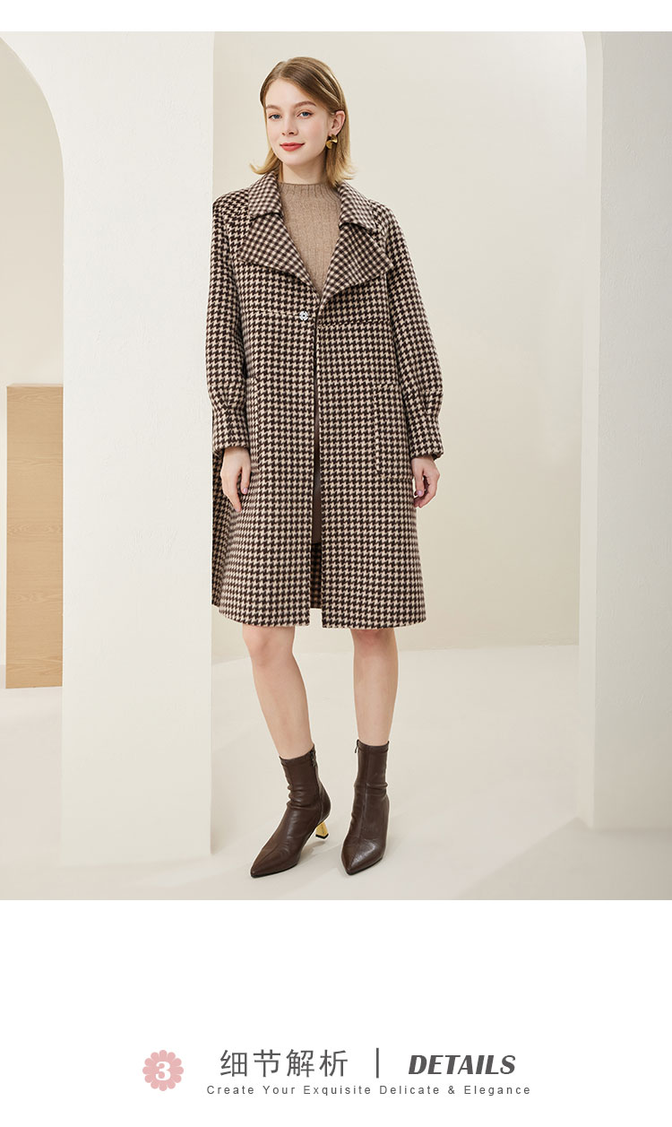 MH9J3斯尔丽瑟俪2022年冬上新商场同款复古千鸟格松树领过膝长款大衣