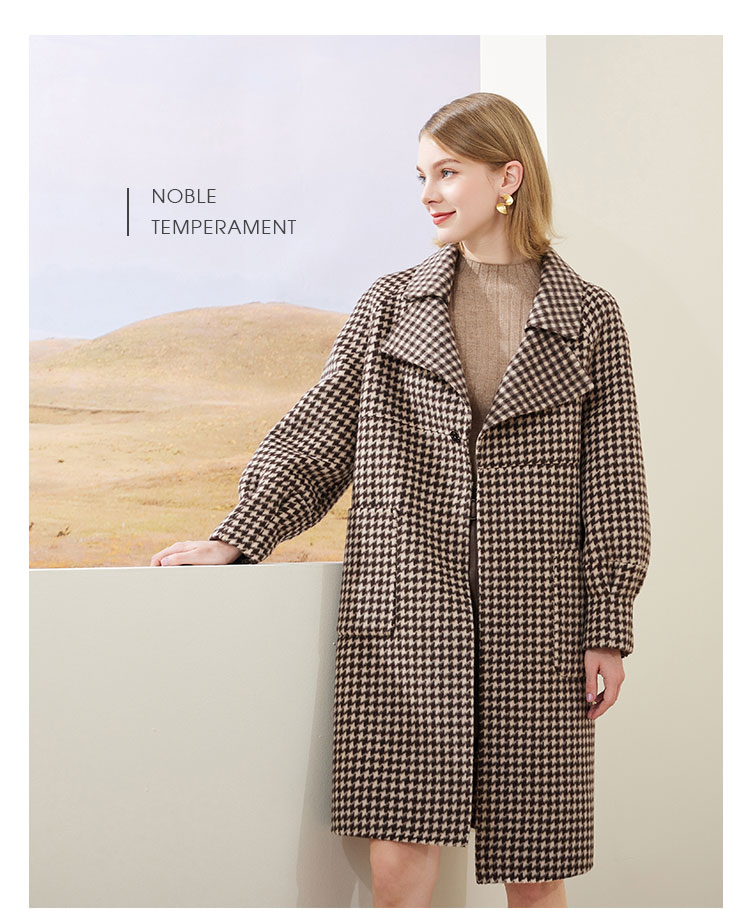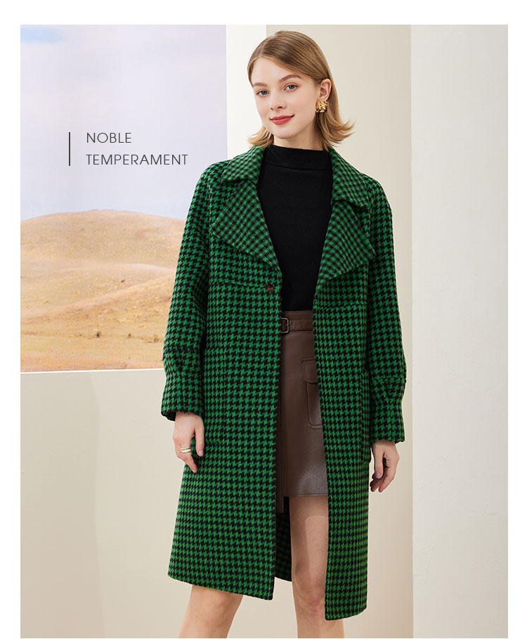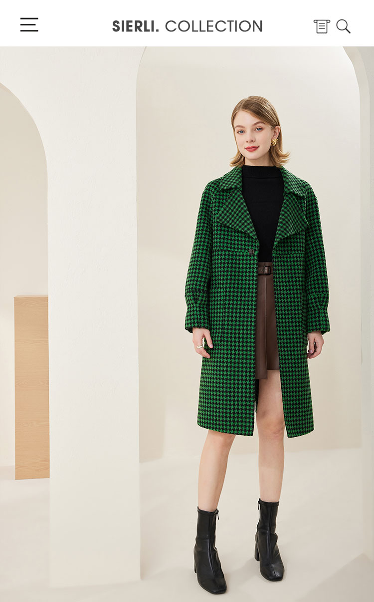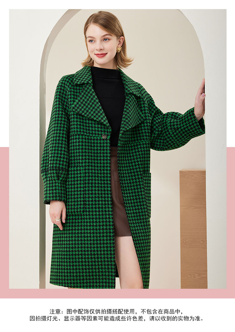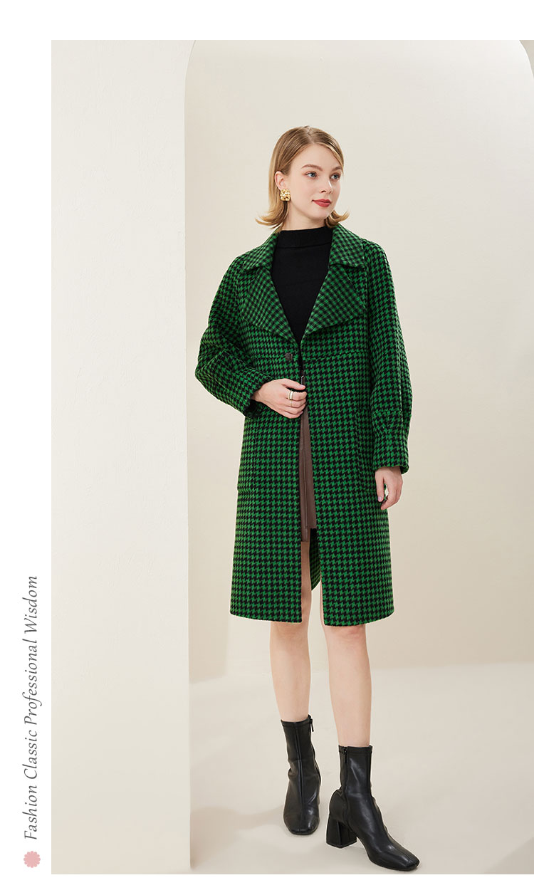 MH9J3斯尔丽瑟俪2022年冬上新商场同款复古千鸟格松树领过膝长款大衣