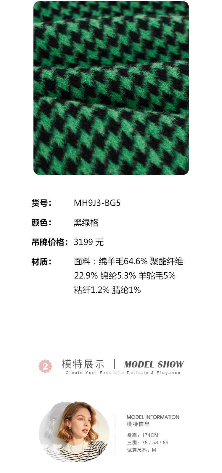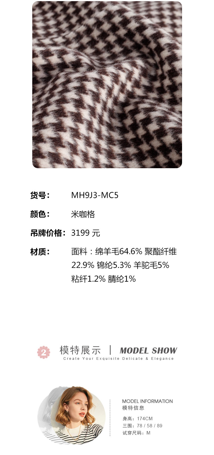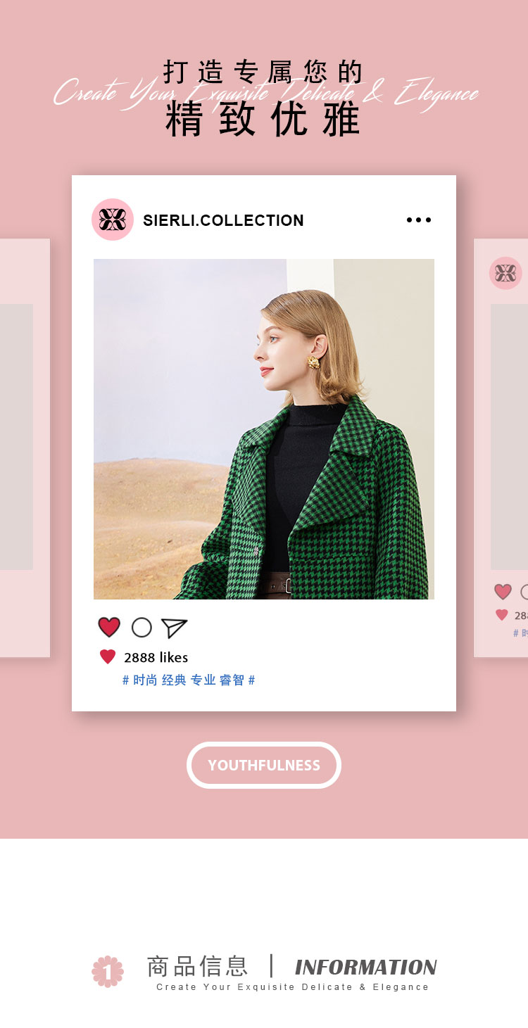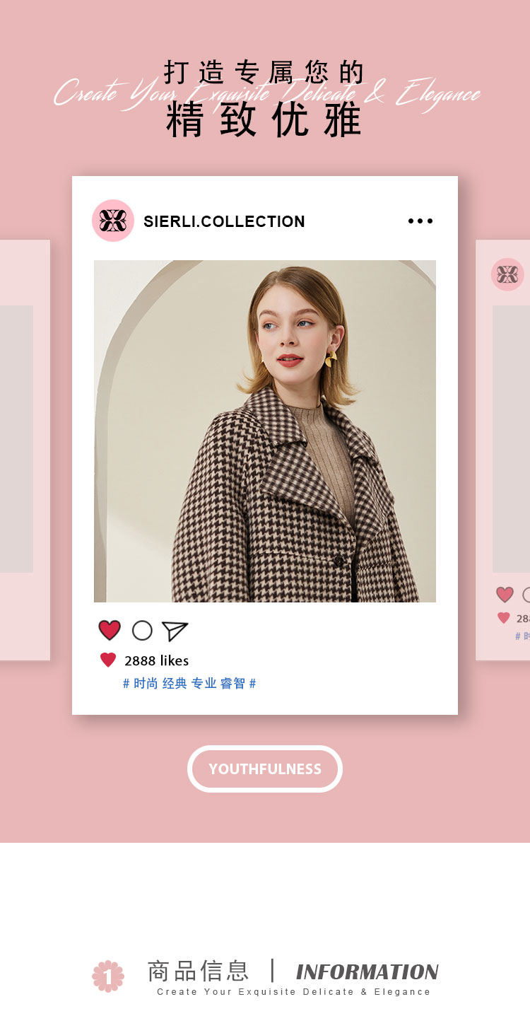 MH9J3斯尔丽瑟俪2022年冬上新商场同款复古千鸟格松树领过膝长款大衣