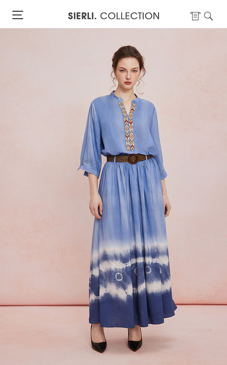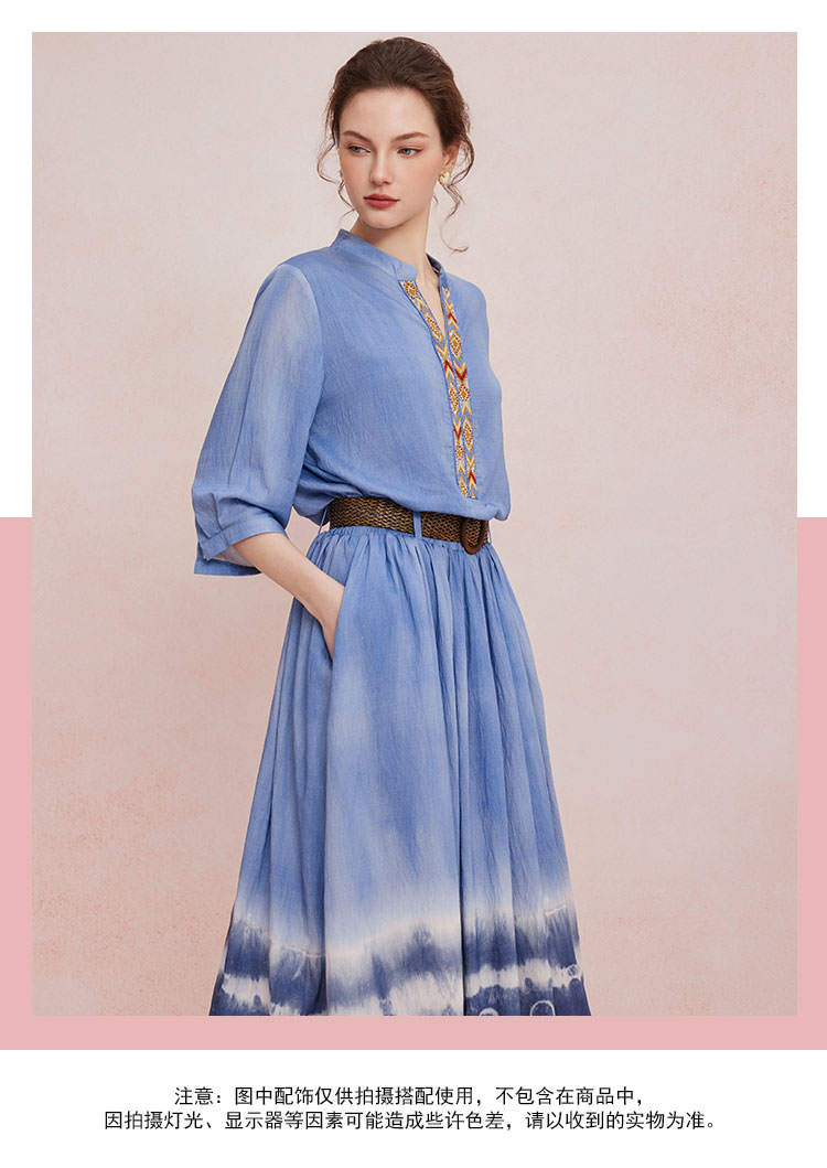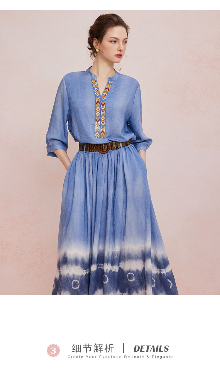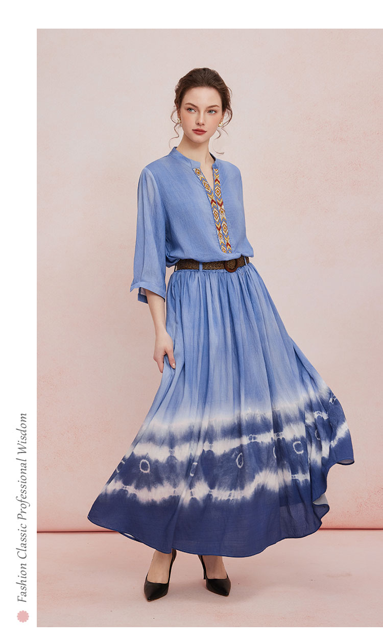 QF502斯尔丽25新款波西米亚风浪漫风海边度假刺绣上衣搭配圆摆半裙套装