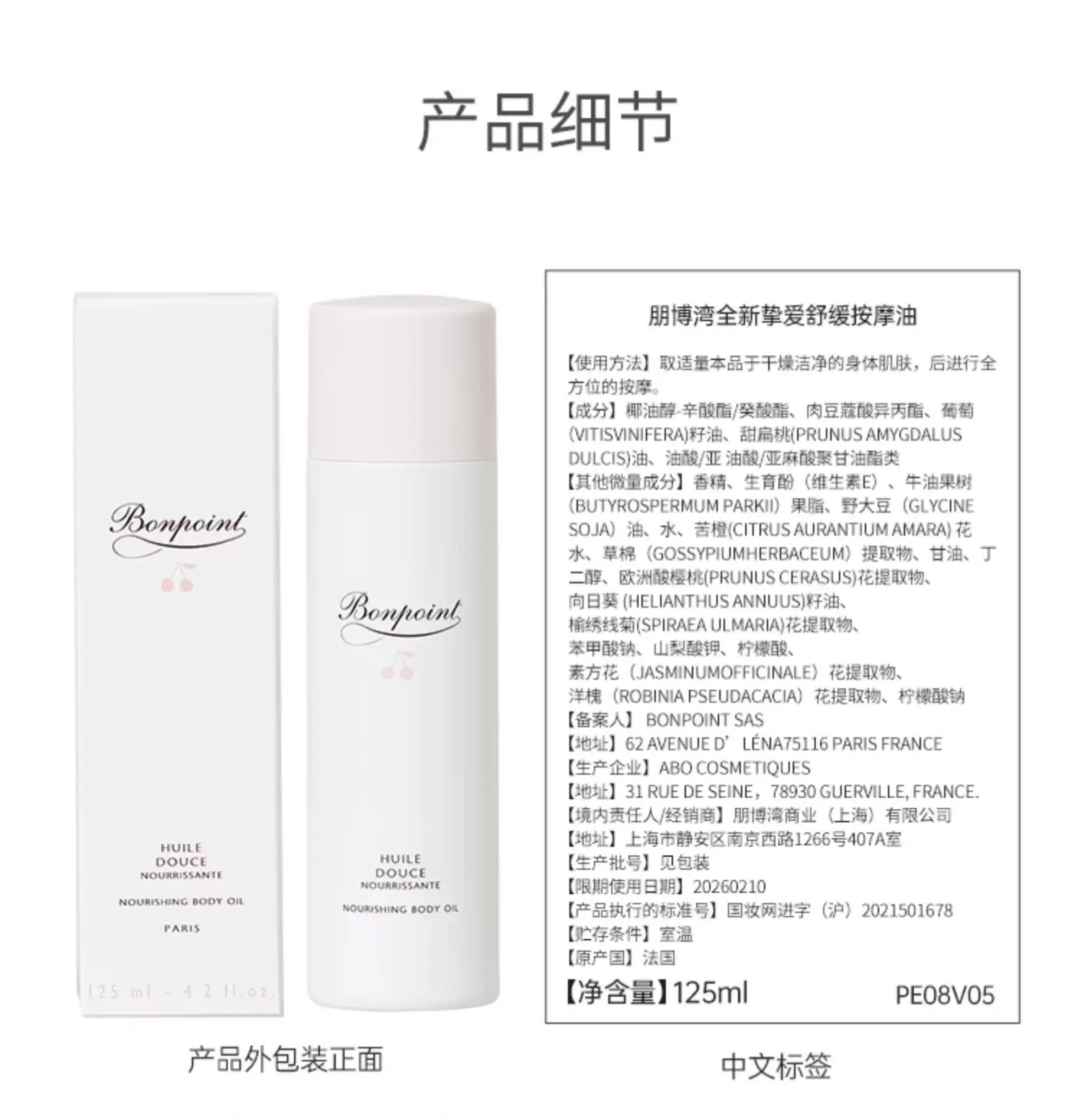【跨境进口】Bonpoint小樱桃 按摩油125ml (效期27年9月)| 义乌仓报关后不支持退换货 敬请谅解