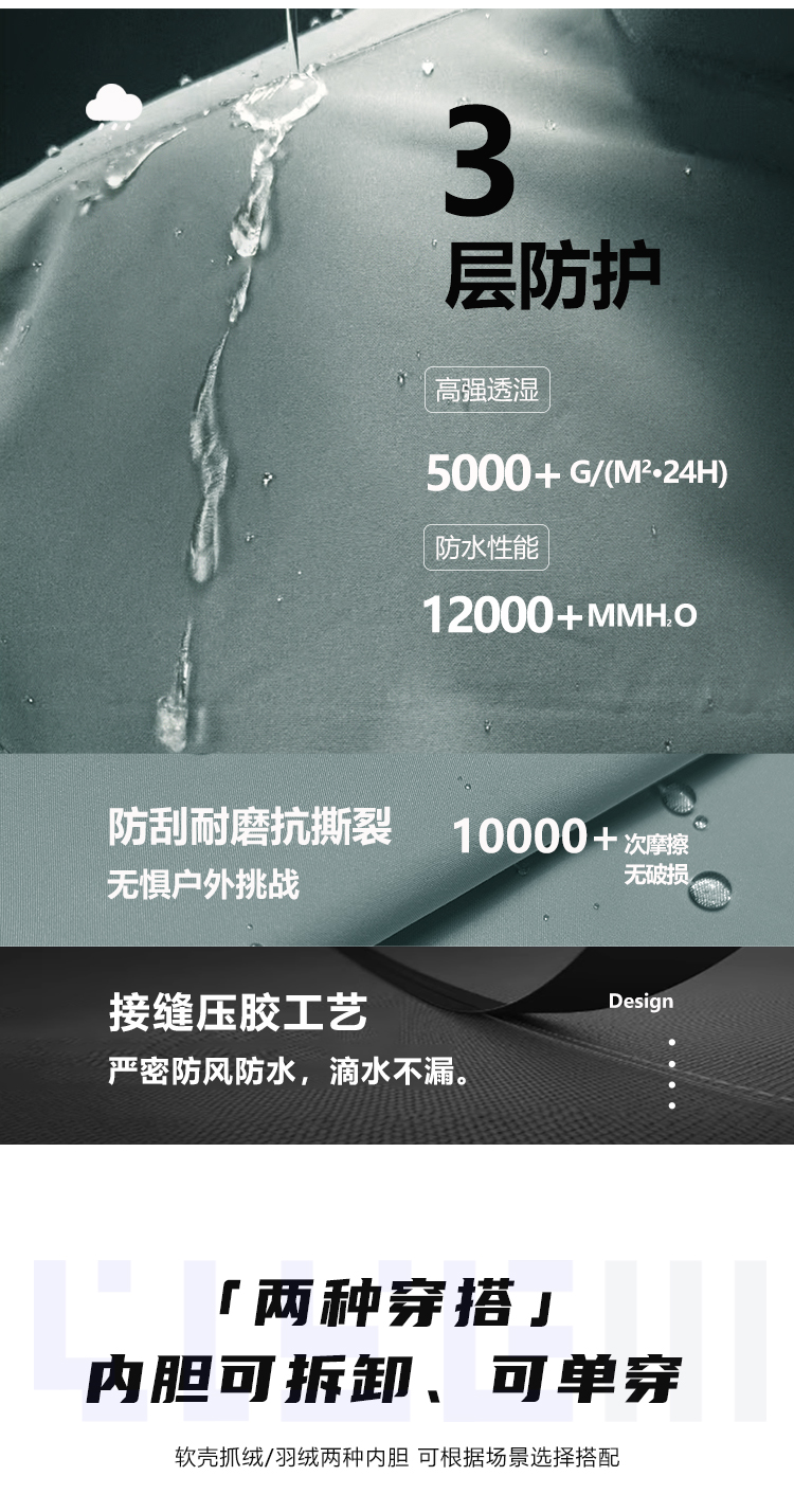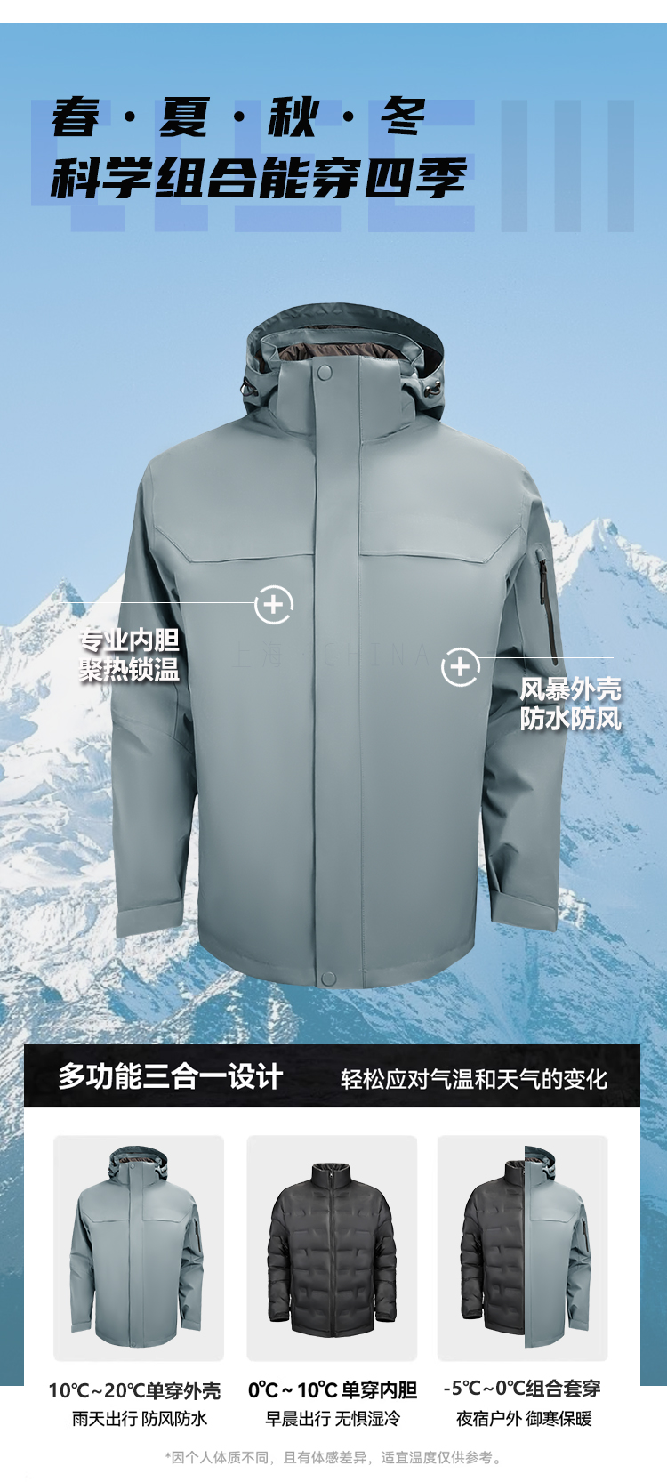 4158m 热封三合一系列外套 羽绒摇粒绒可拆卸内胆防水户外上衣
