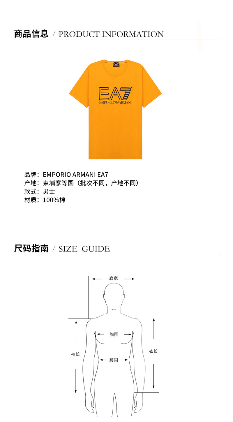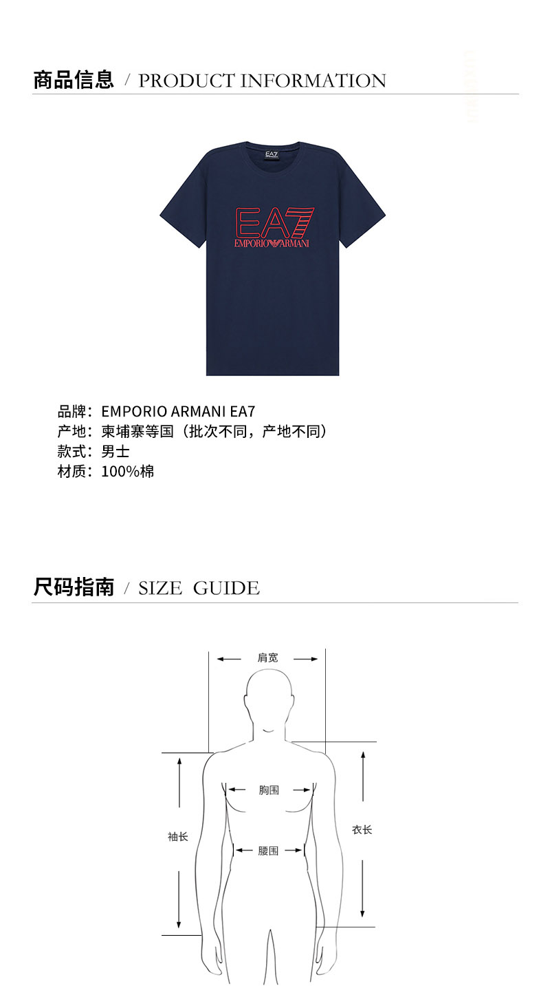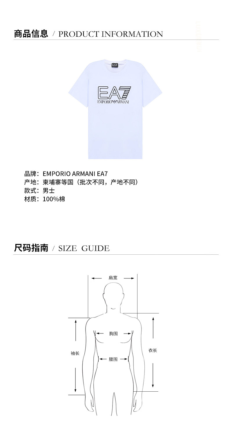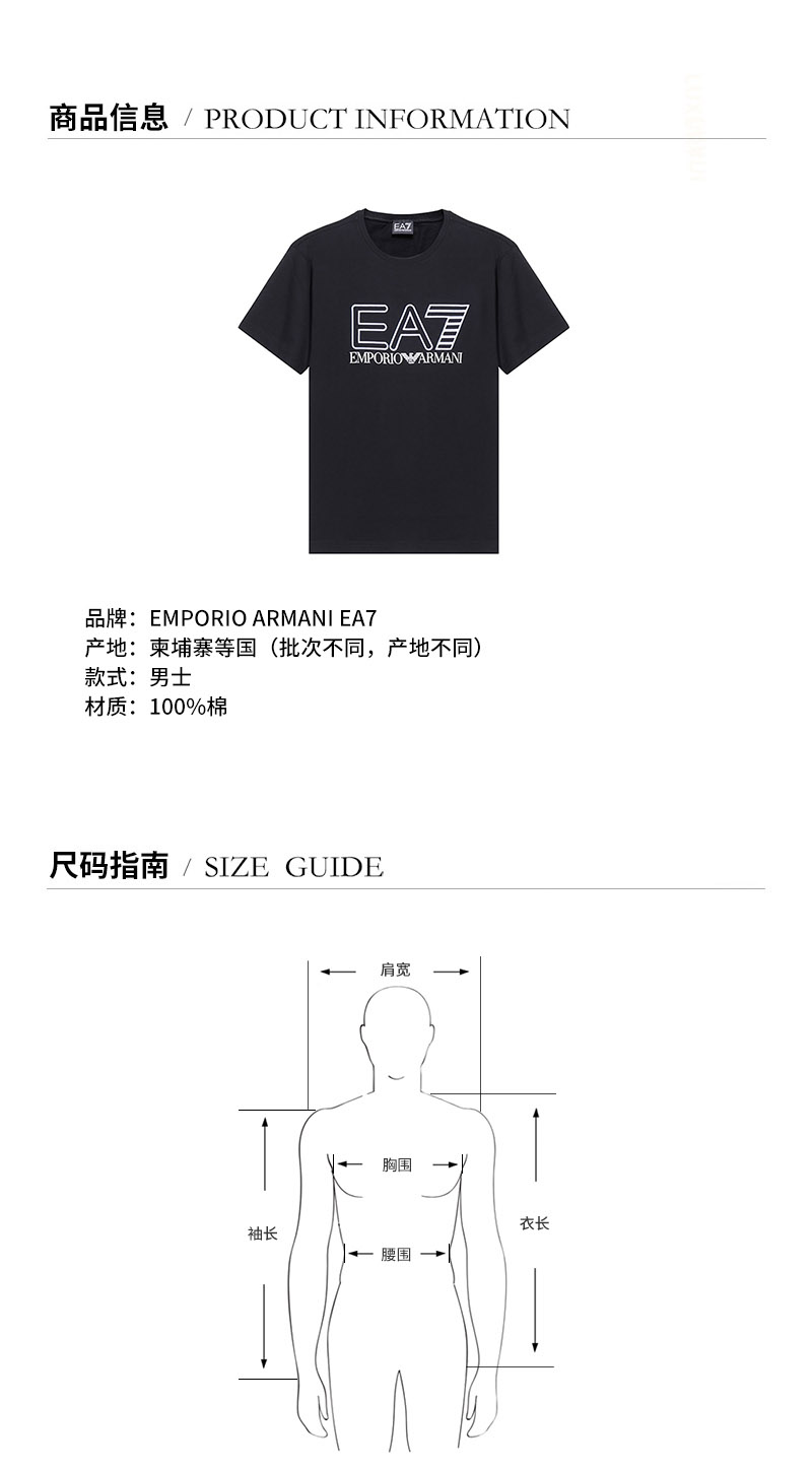 EA7/EA7 男士短袖T恤 男士棉质圆领短袖T恤 3KPT11 PJ02Z