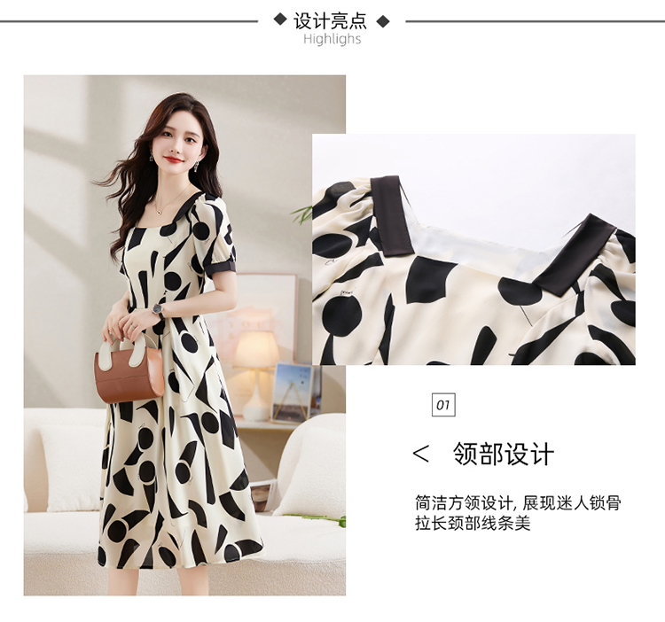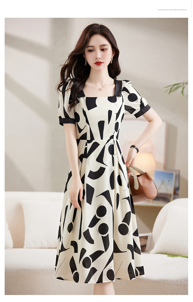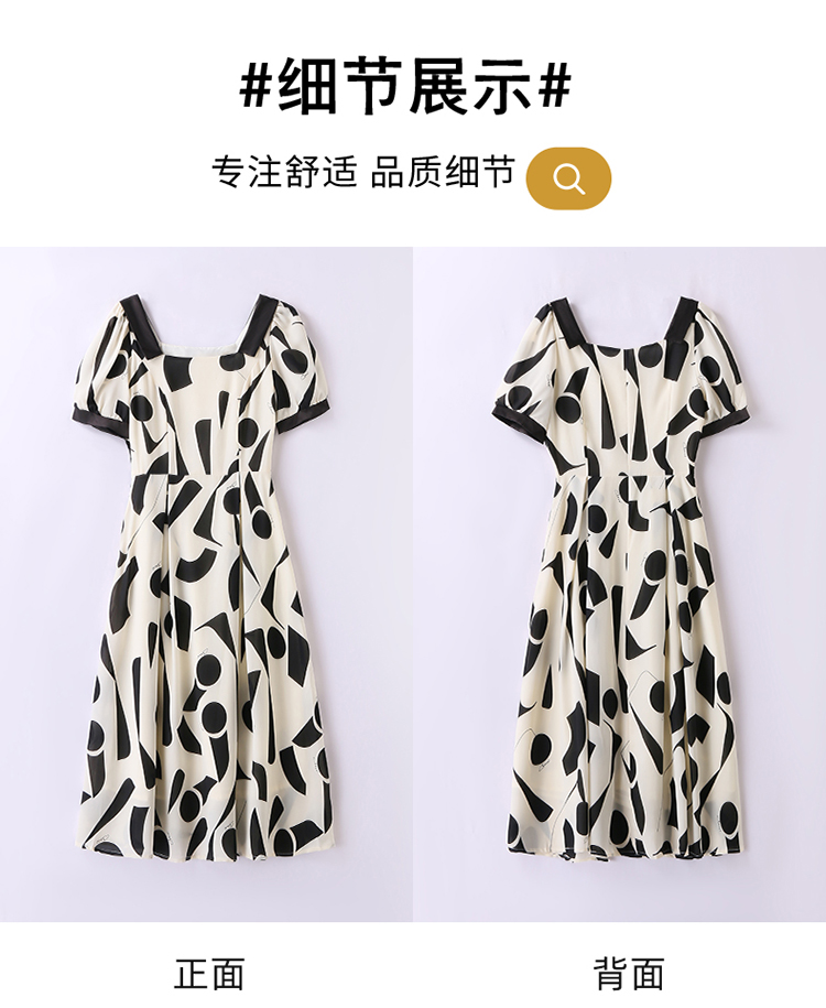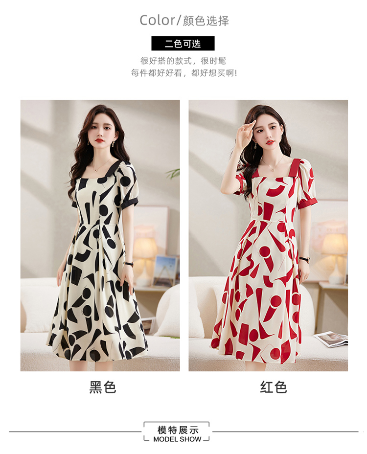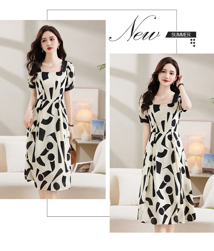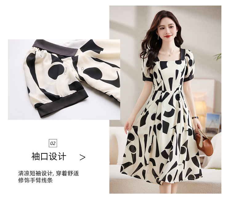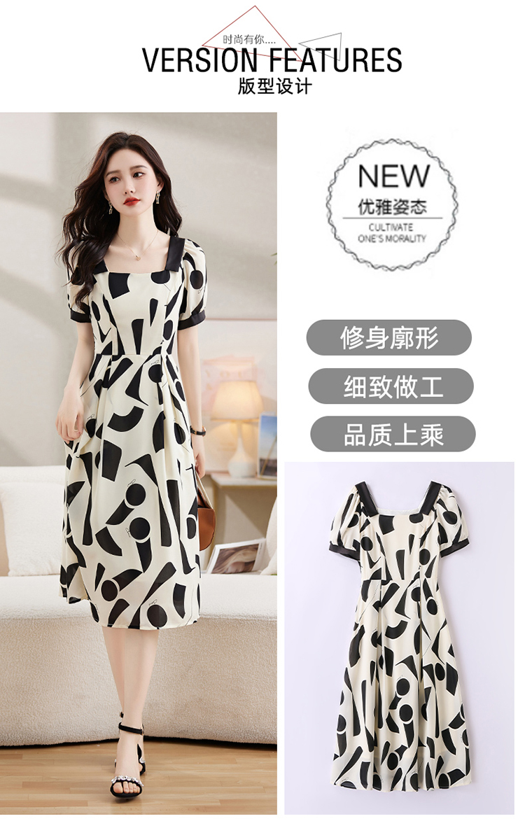 夏季新款,拼色优雅方领连衣裙HR-ZYIF2523-1