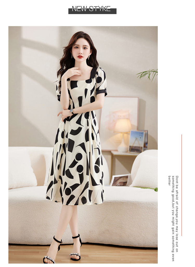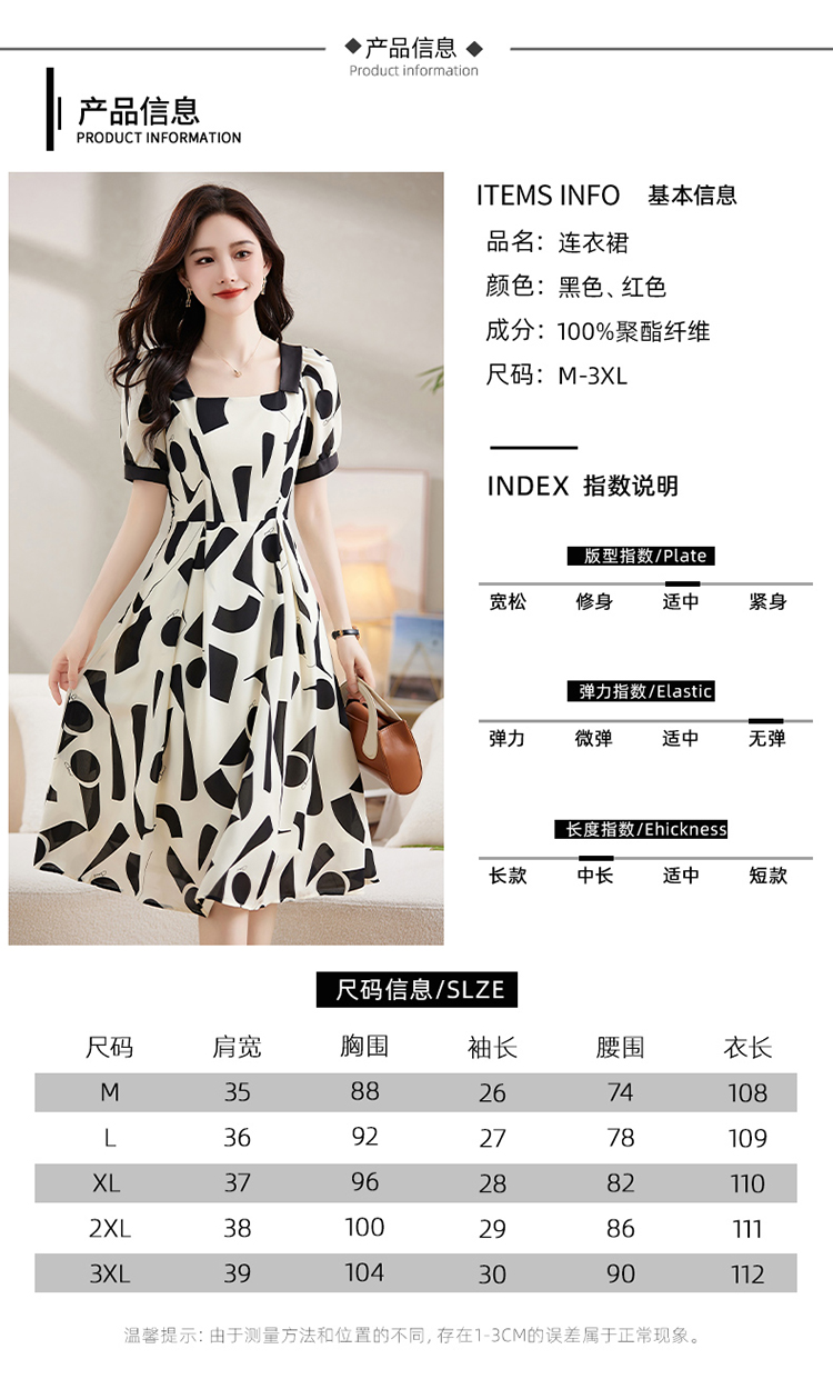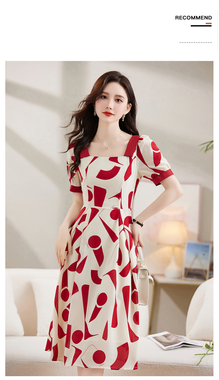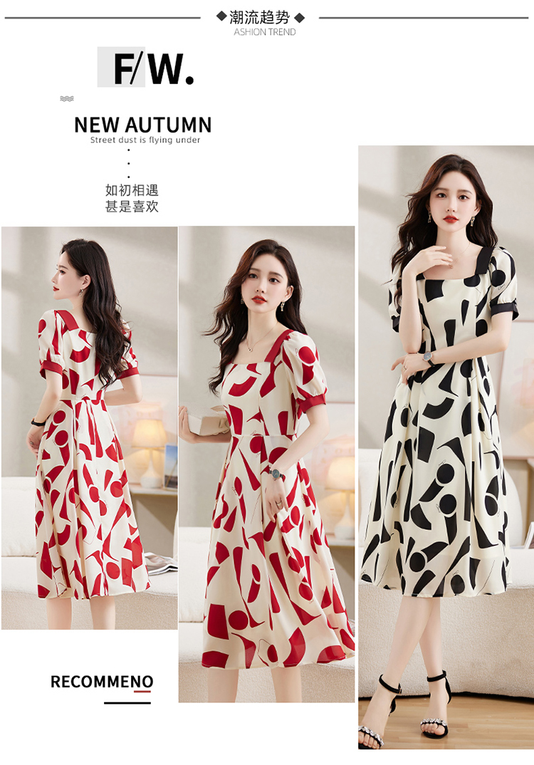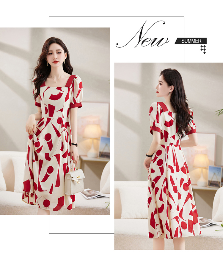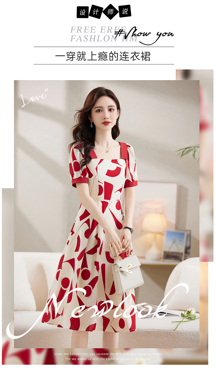 夏季新款,拼色优雅方领连衣裙HR-ZYIF2523-1