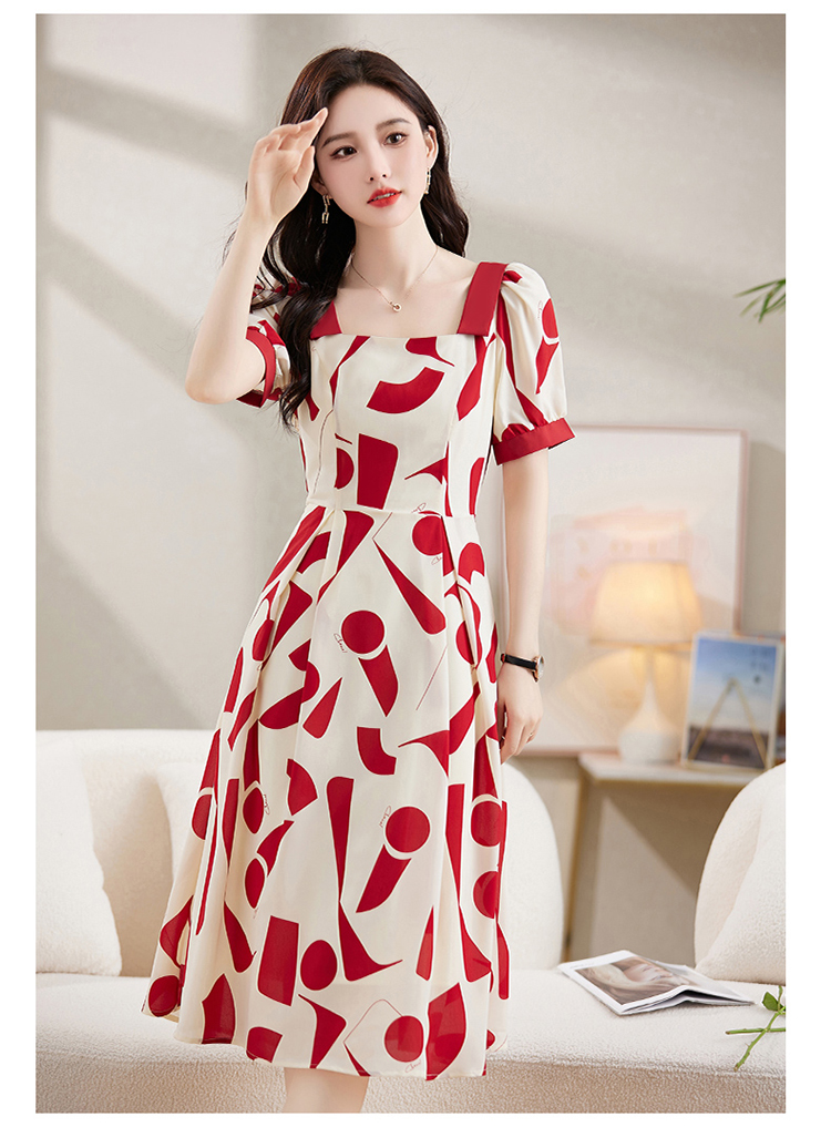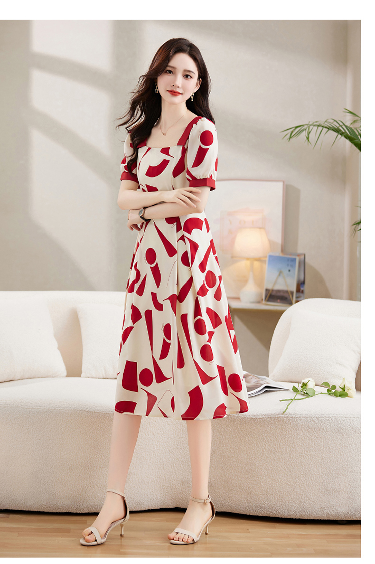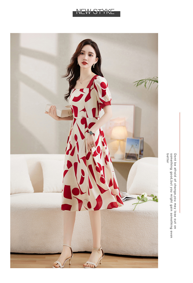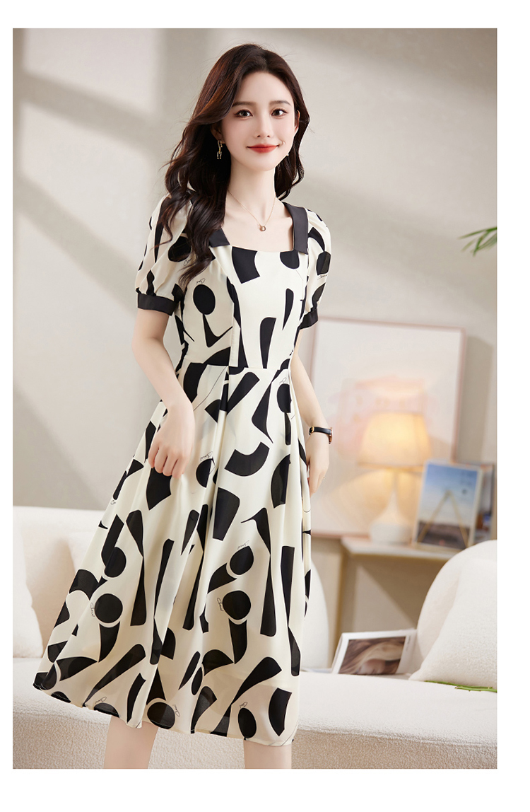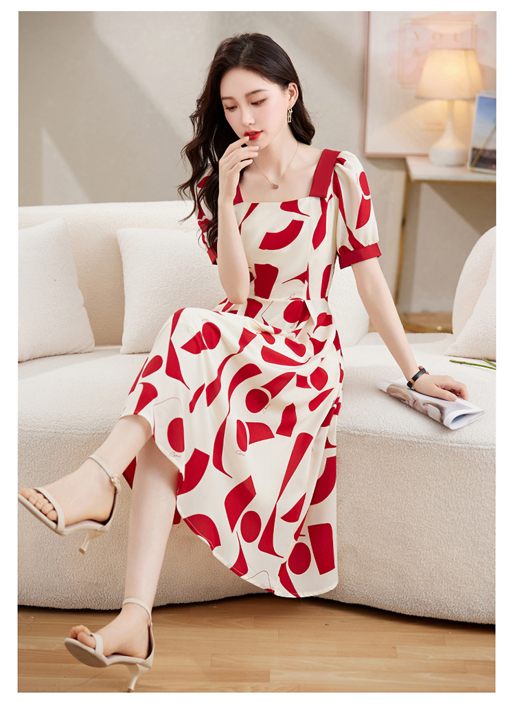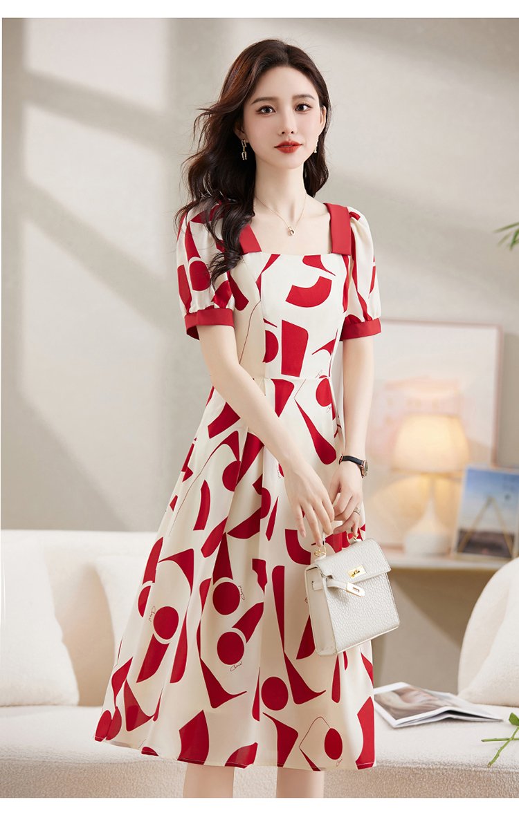 夏季新款,拼色优雅方领连衣裙HR-ZYIF2523-1