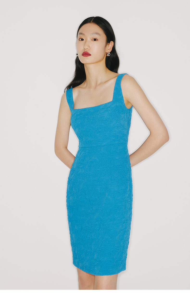 【微风伊比萨】伊比萨蓝质感肌理面料方领吊带包身连衣裙/2200005