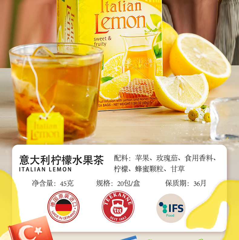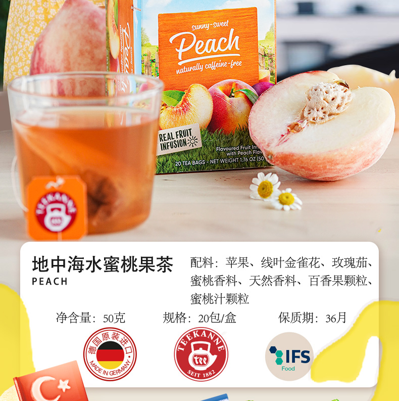 【优选】Teekanne德国进口 草莓覆盆子水果茶 地中海水蜜桃 意大利柠檬果茶花茶茶包冷泡茶