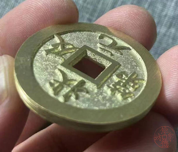 为了尽量还原古代钱币的文字神韵与时代铸造特征,每一枚都进行手工修刀、打磨。会有打磨痕迹、刻刀痕迹,铸造气孔或者微小沙眼,这正是手工与机器制作的区别,并非瑕疵。