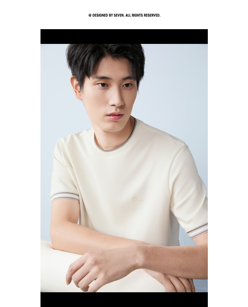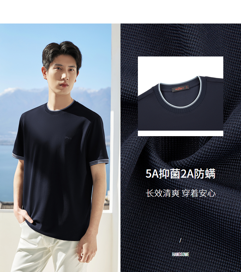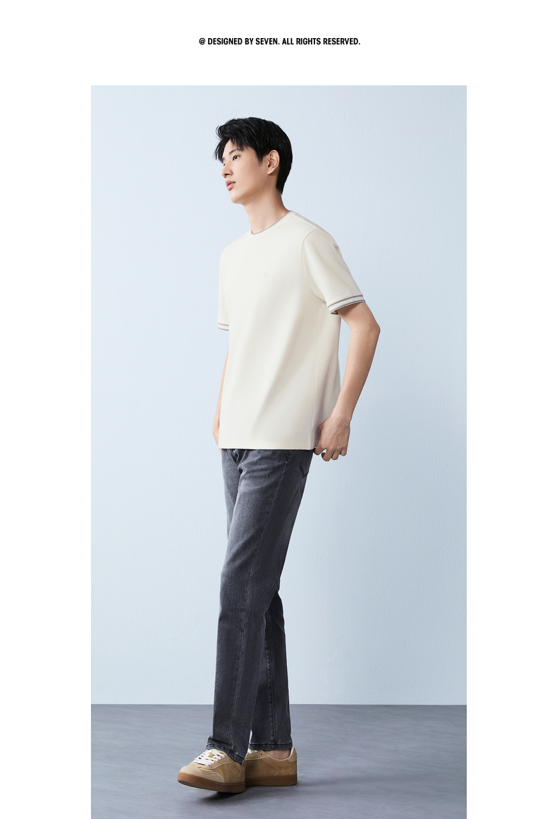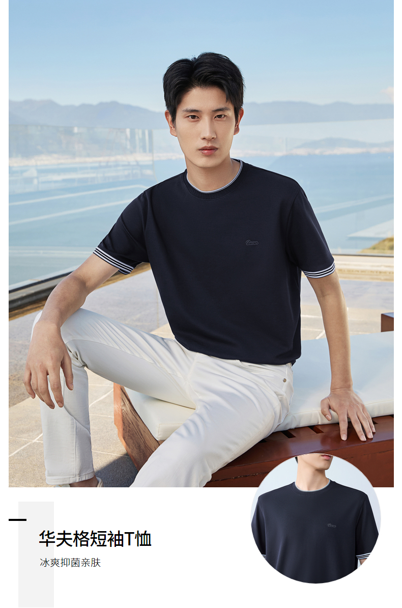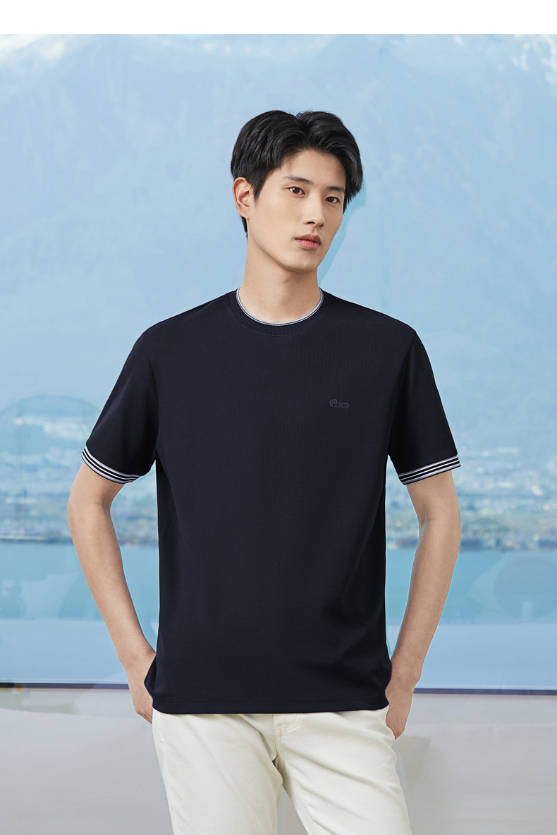 【领子撞色条纹】柒牌男式短袖T恤2026春夏新品百搭华夫格上衣 130T72410