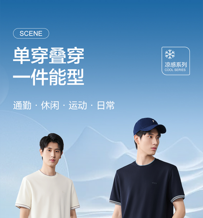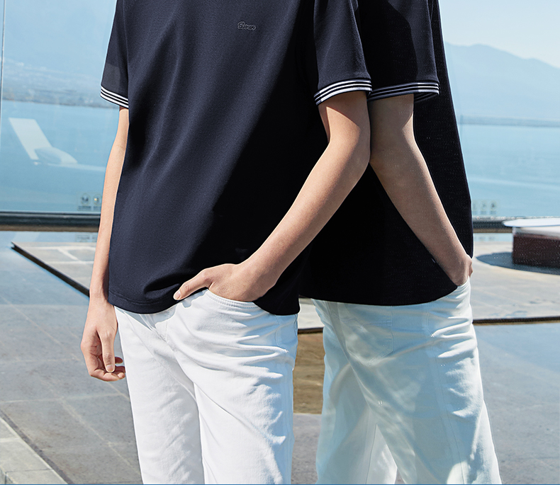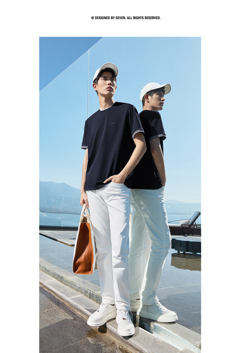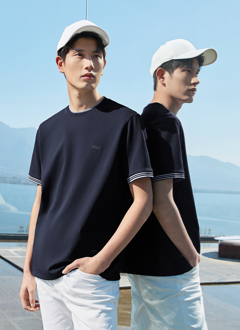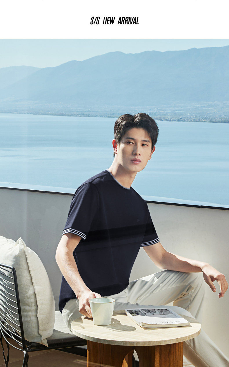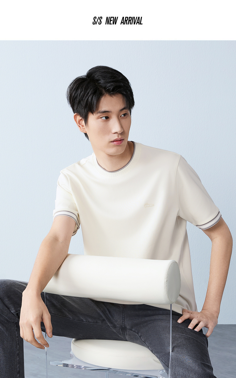 【领子撞色条纹】柒牌男式短袖T恤2026春夏新品百搭华夫格上衣 130T72410