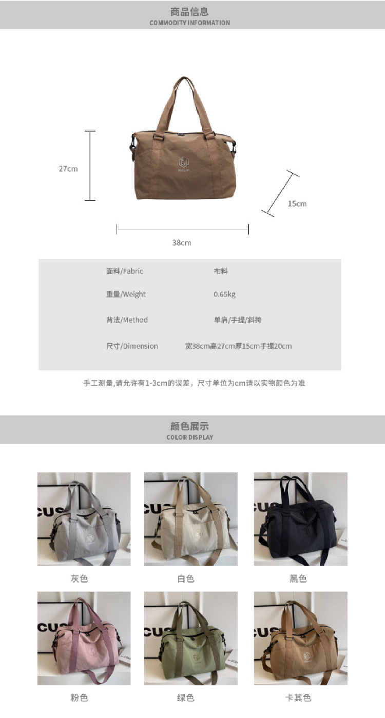【短途旅行包】轻便瑜伽健身包女士出行 便携飞机包出差旅游行李包