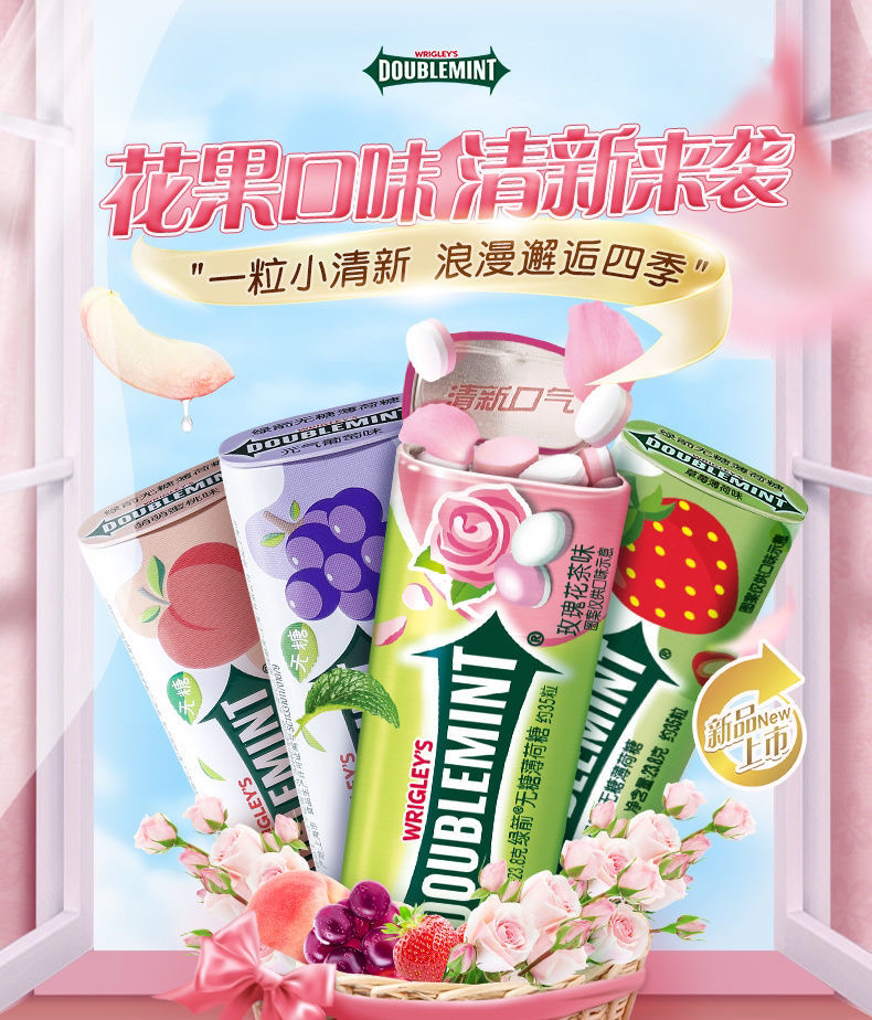 绿箭缤纷果味薄荷糖蜜桃味35粒铁盒装