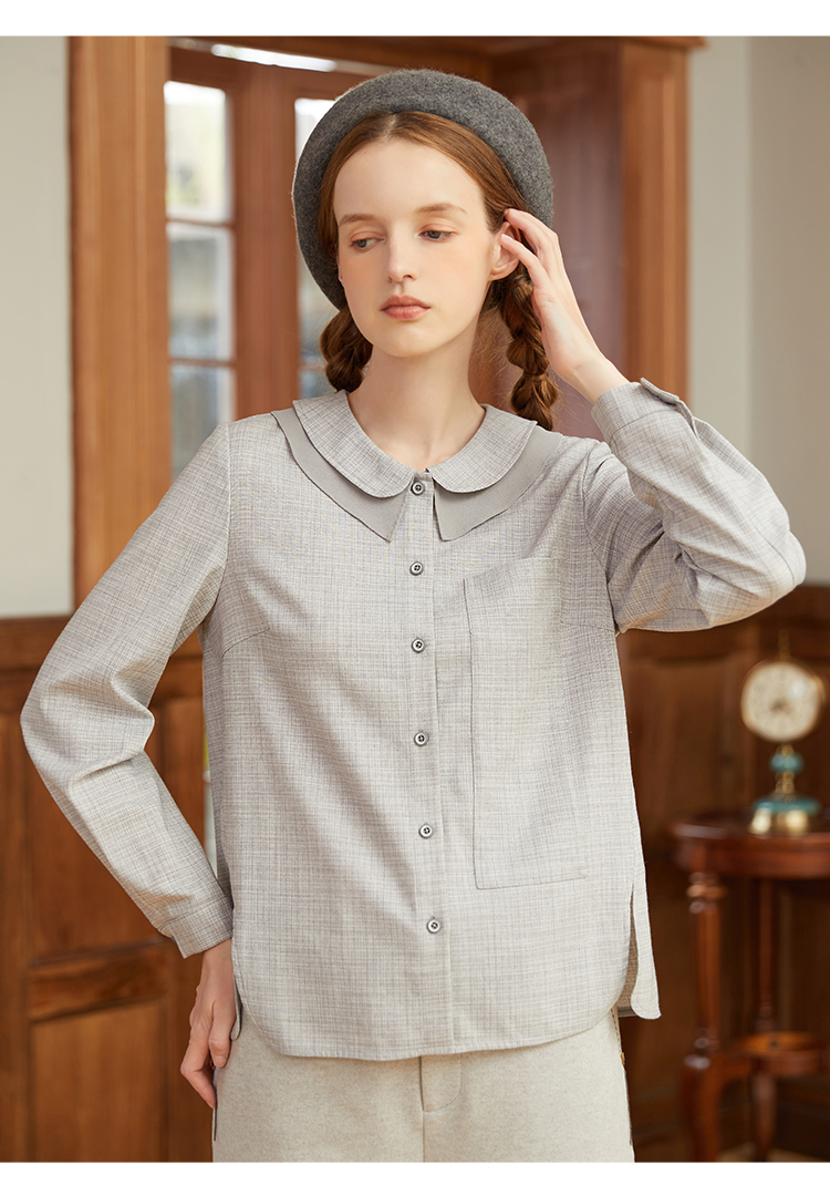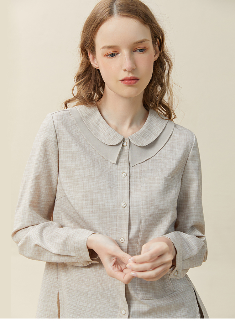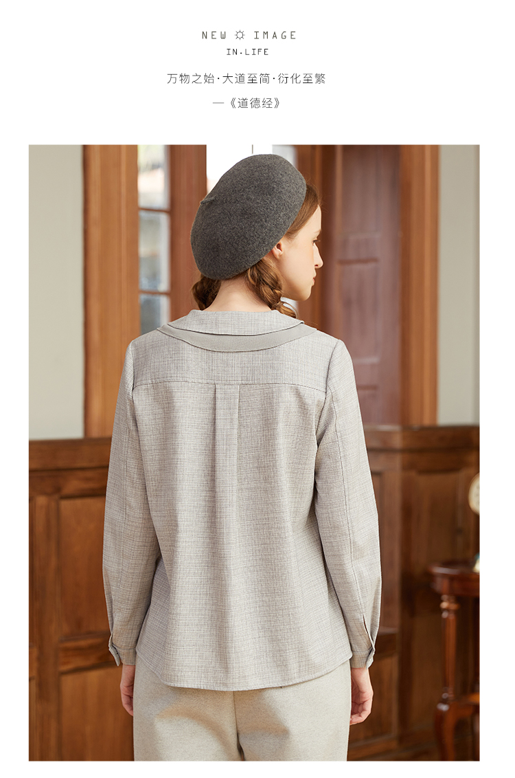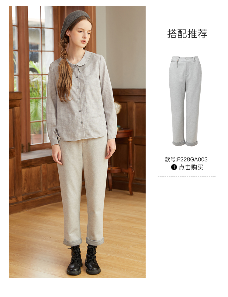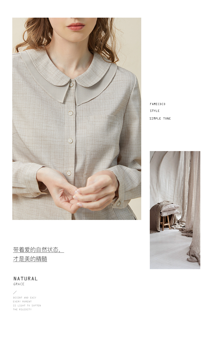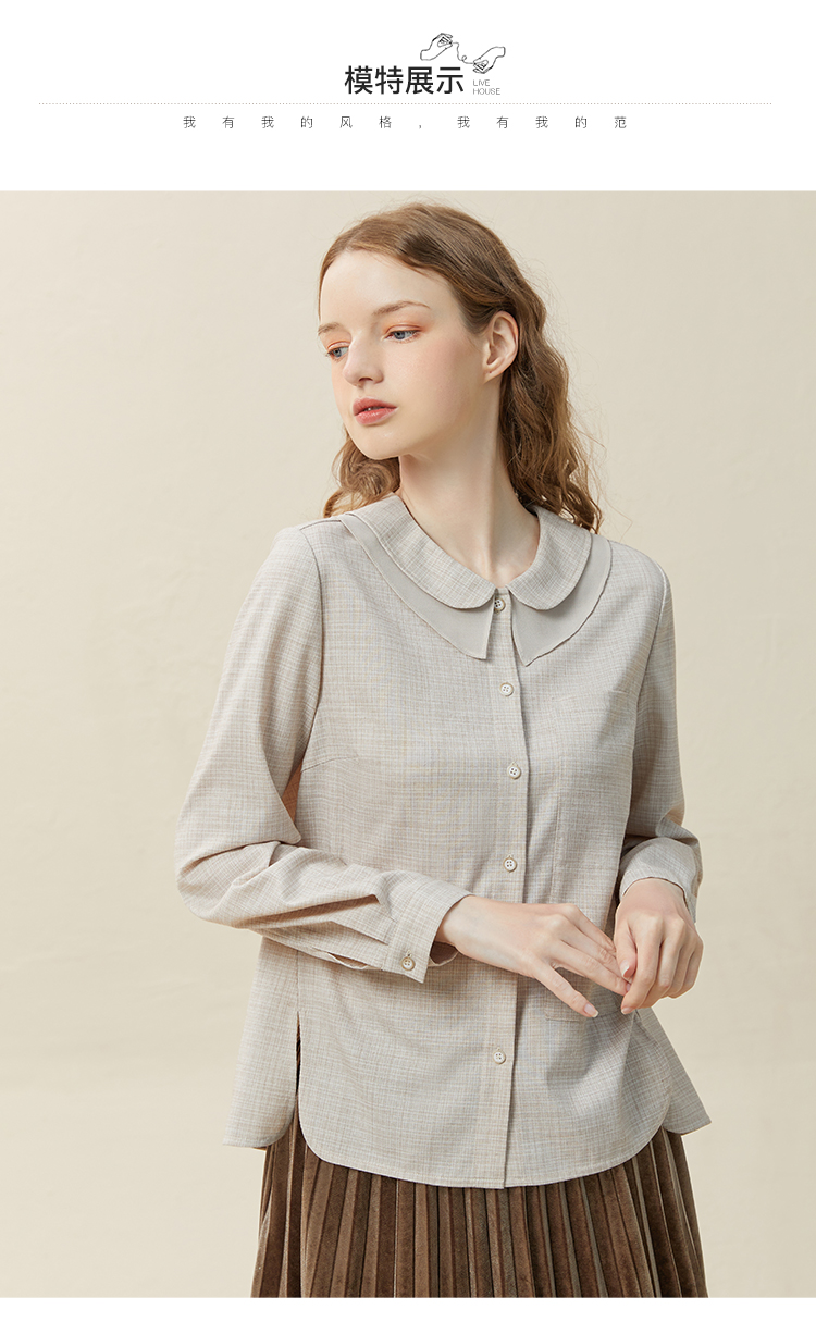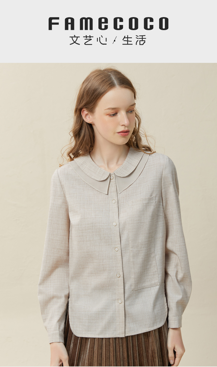 famecoco范可儿双层领细格纹衬衫女侧开叉衬衣通勤设计感F228BH001