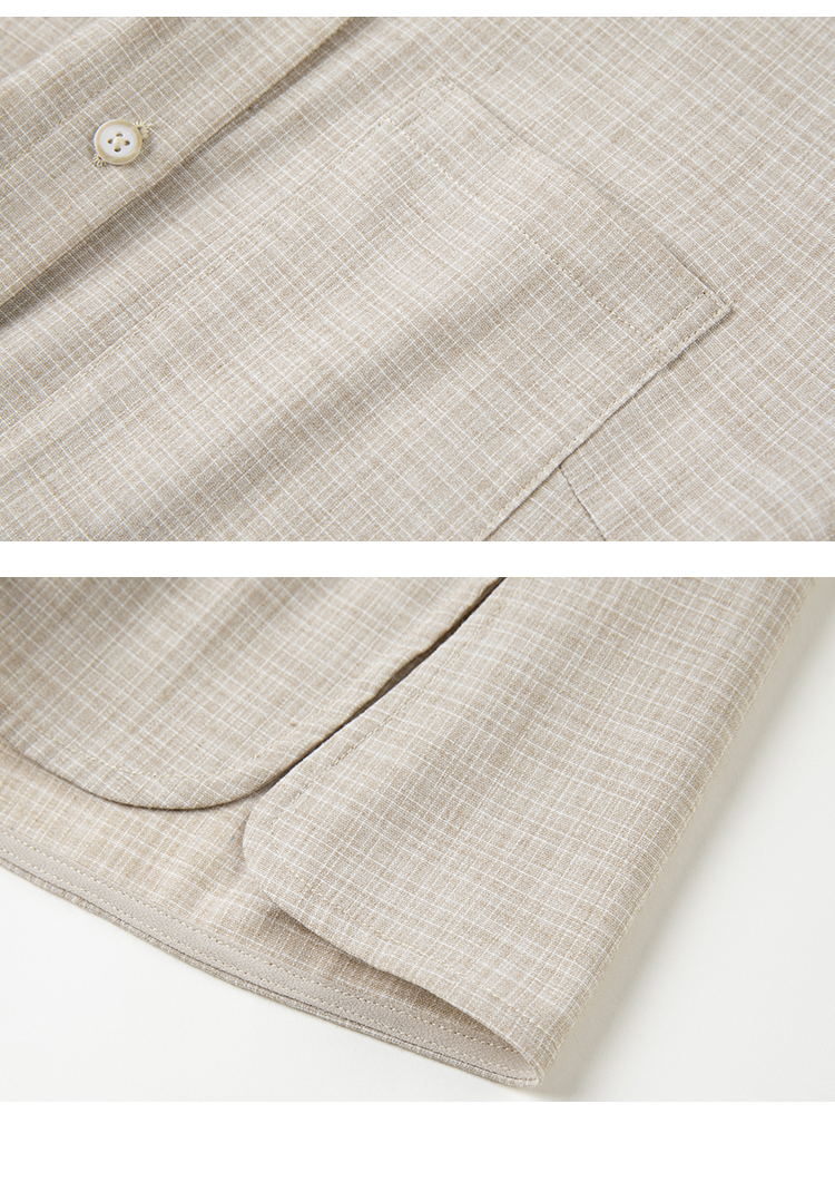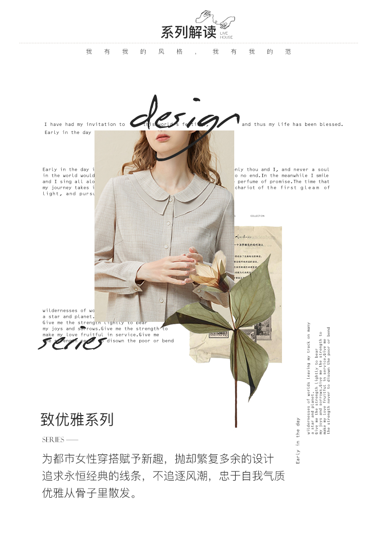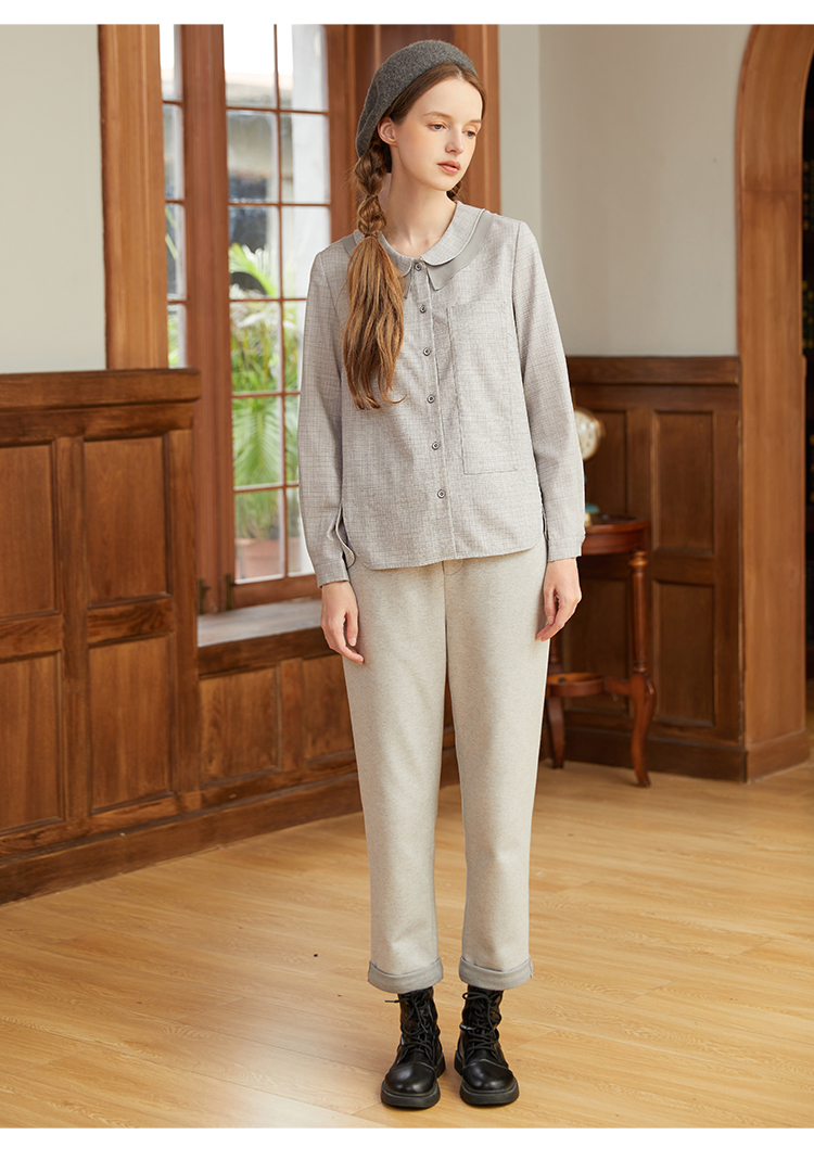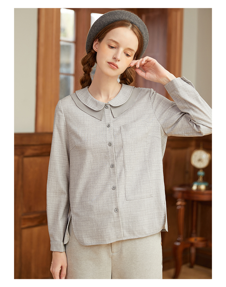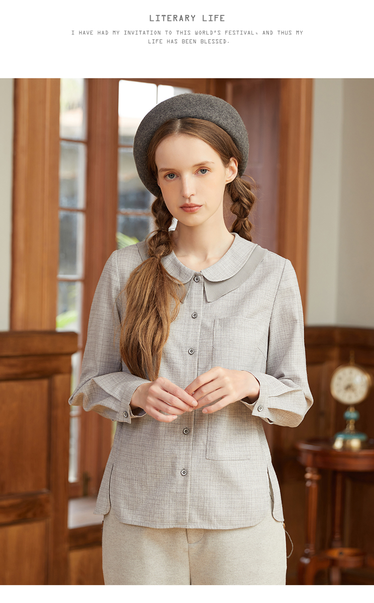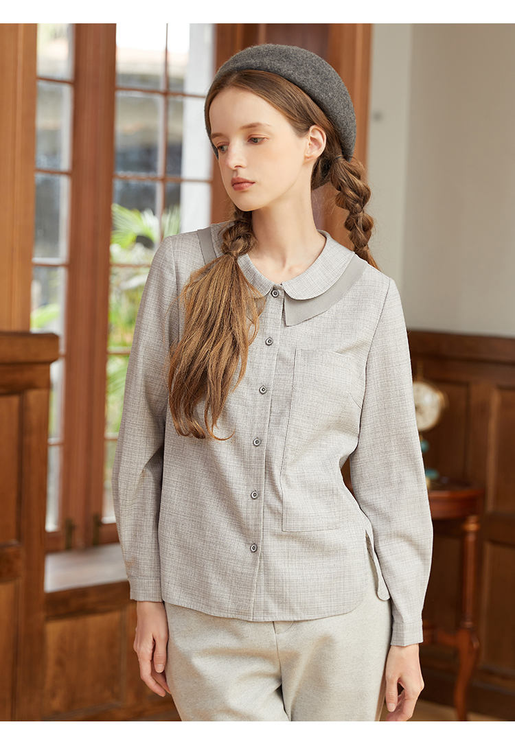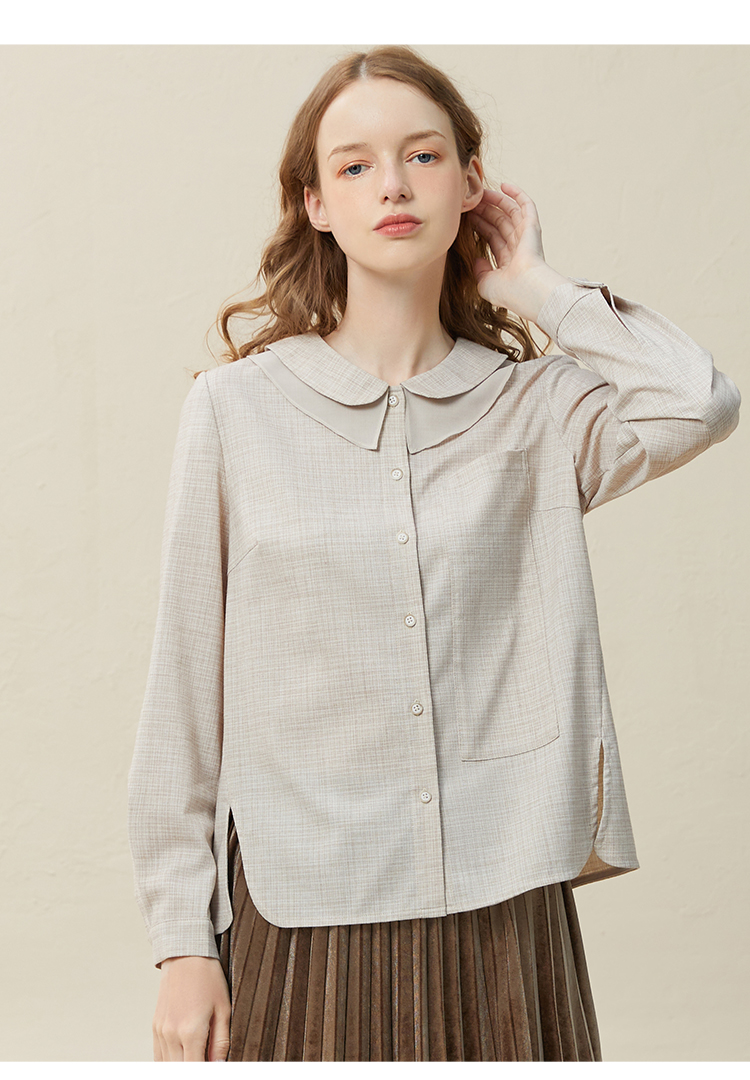 famecoco范可儿双层领细格纹衬衫女侧开叉衬衣通勤设计感F228BH001