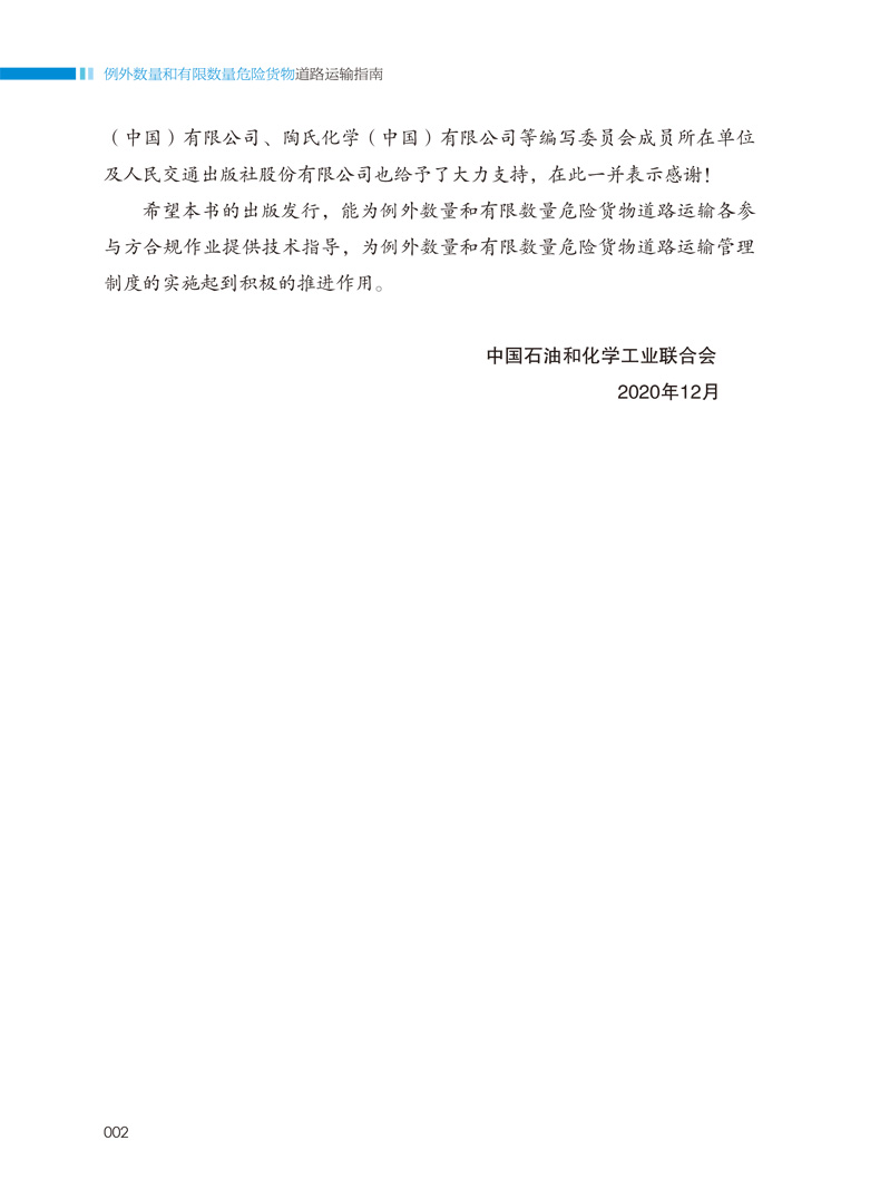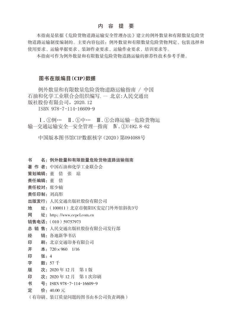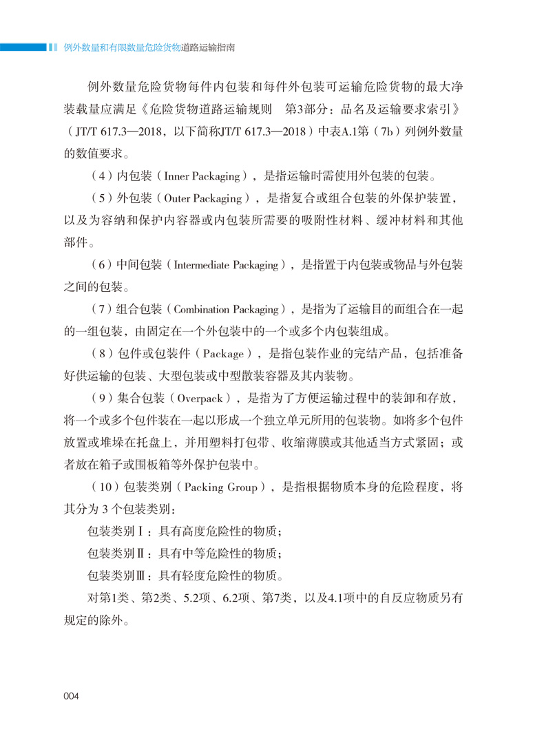 书名:例外数量和有限数量危险货物道路运输指南