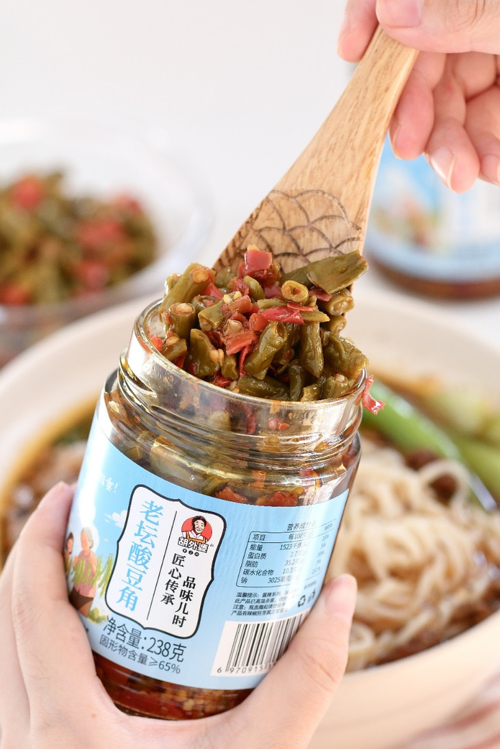 ⌨百搭王丨老坛酸豆角: 酸豆角:一碗白饭的“黄金搭档”,百变料理的“秘密武器”! 拌饭、拌粉、拌面、炒肉末、炖鱼头... 哪里需要酸辣脆爽,哪里就有它的身影!
