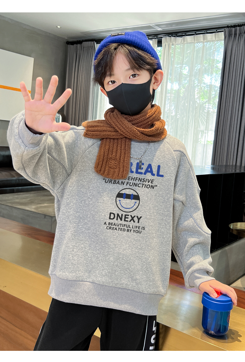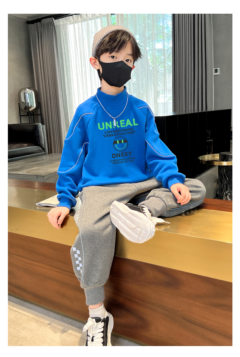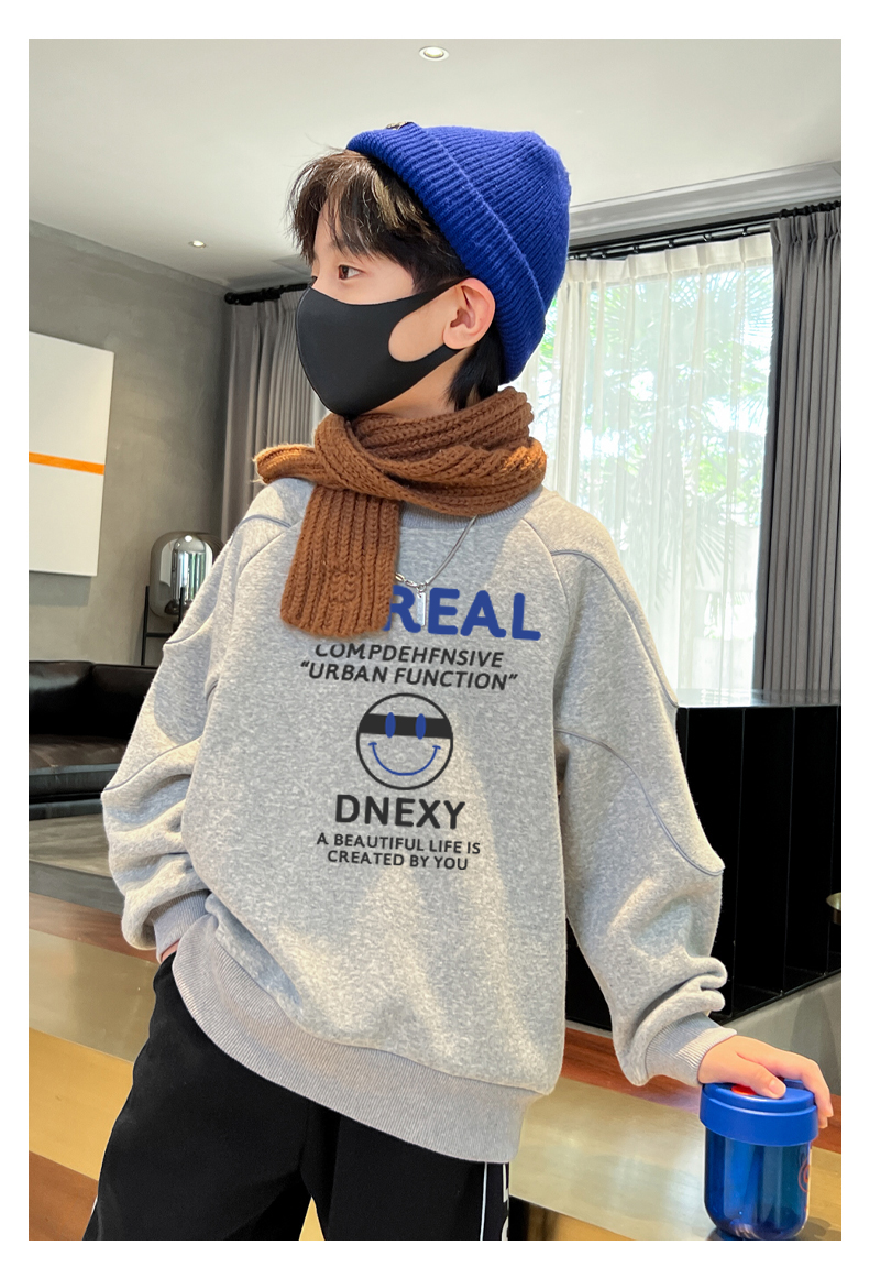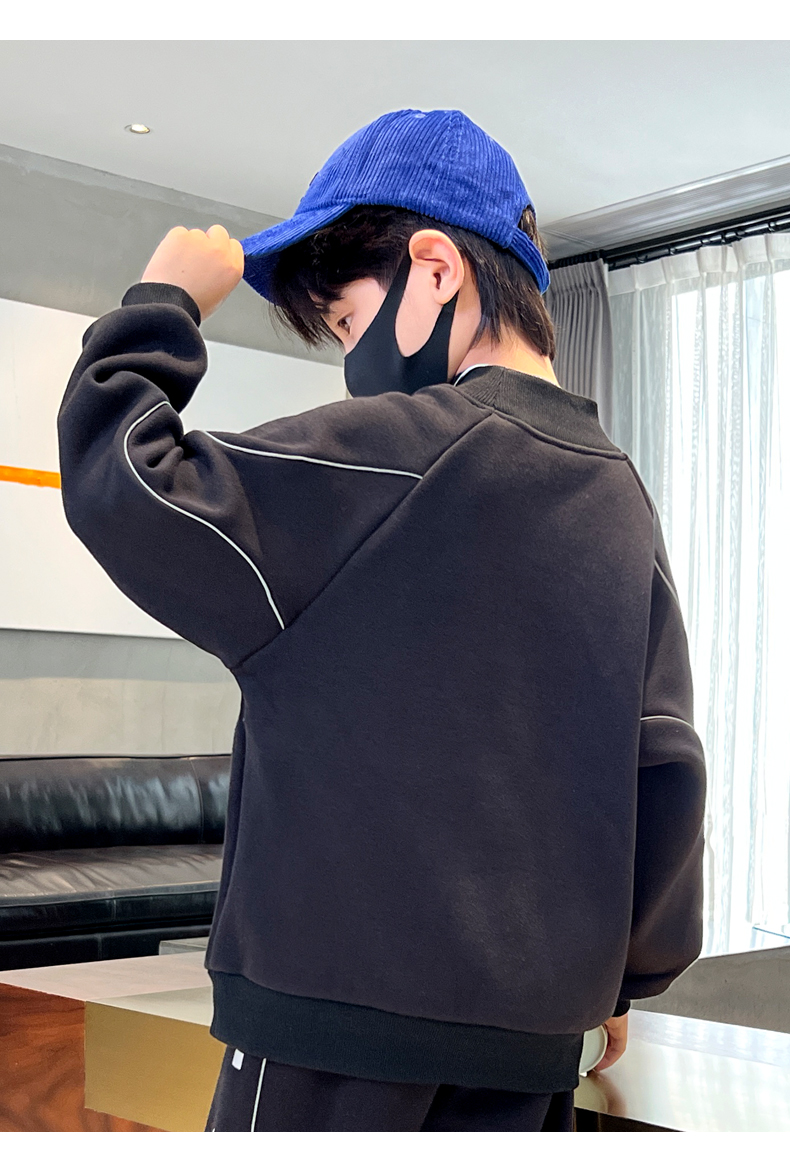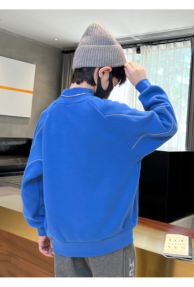 贝田冬季男童加绒卫衣半高领加厚一体绒儿童长袖圆领上衣打底衣服