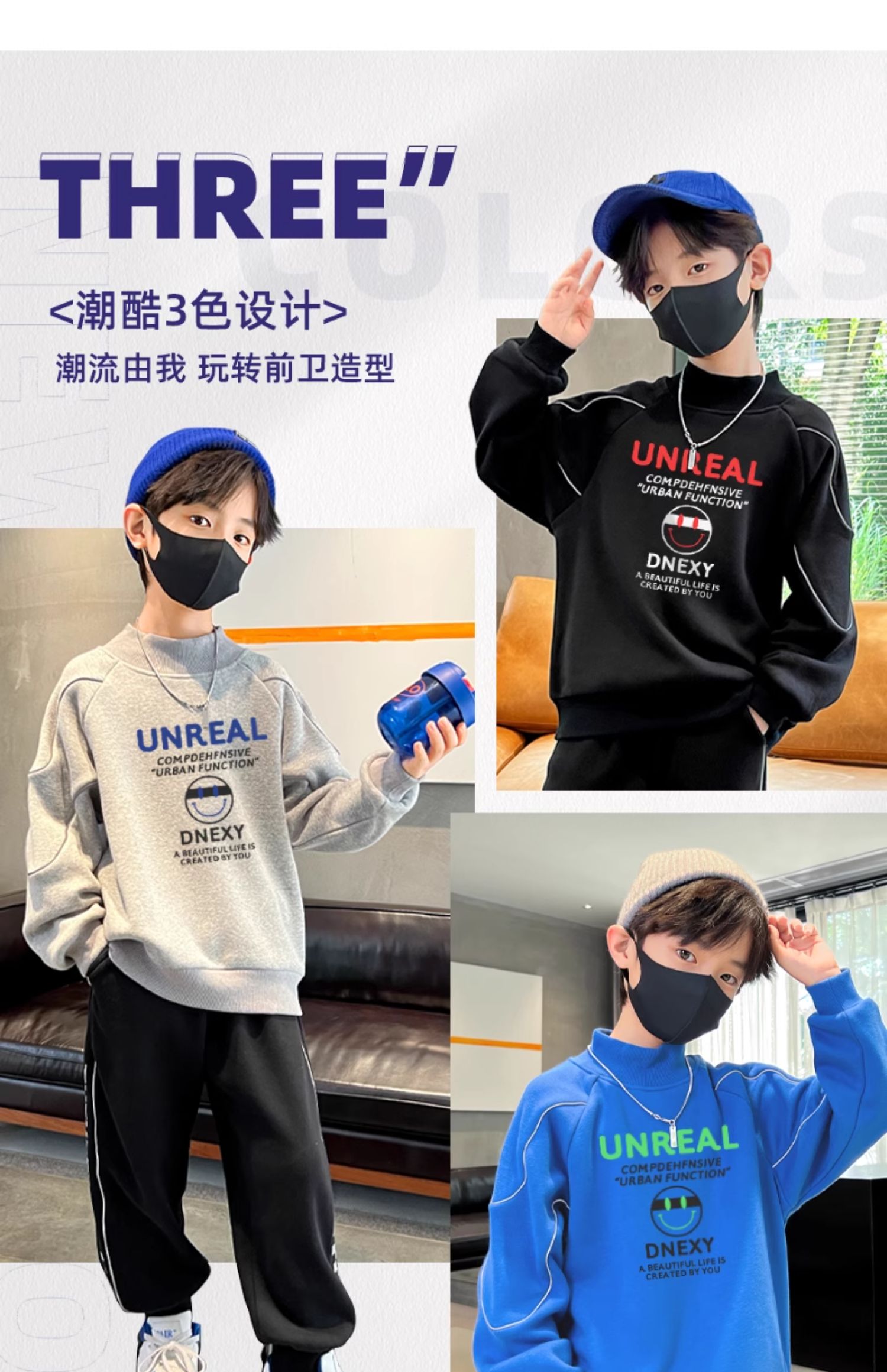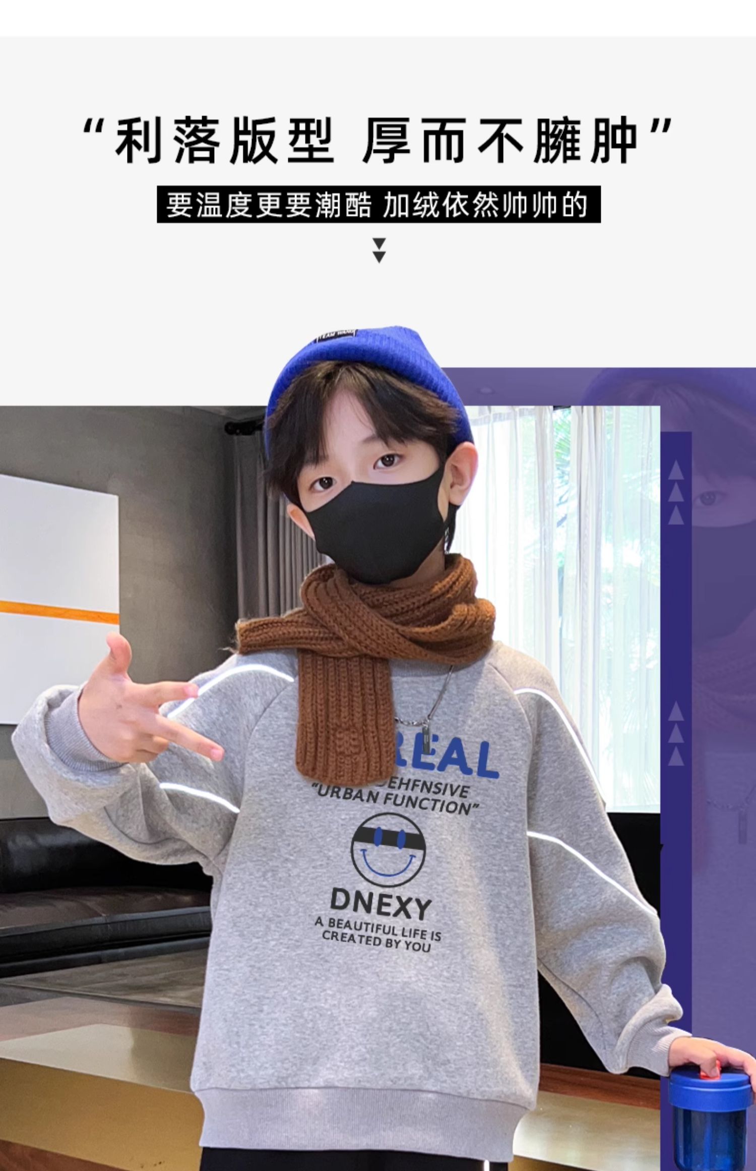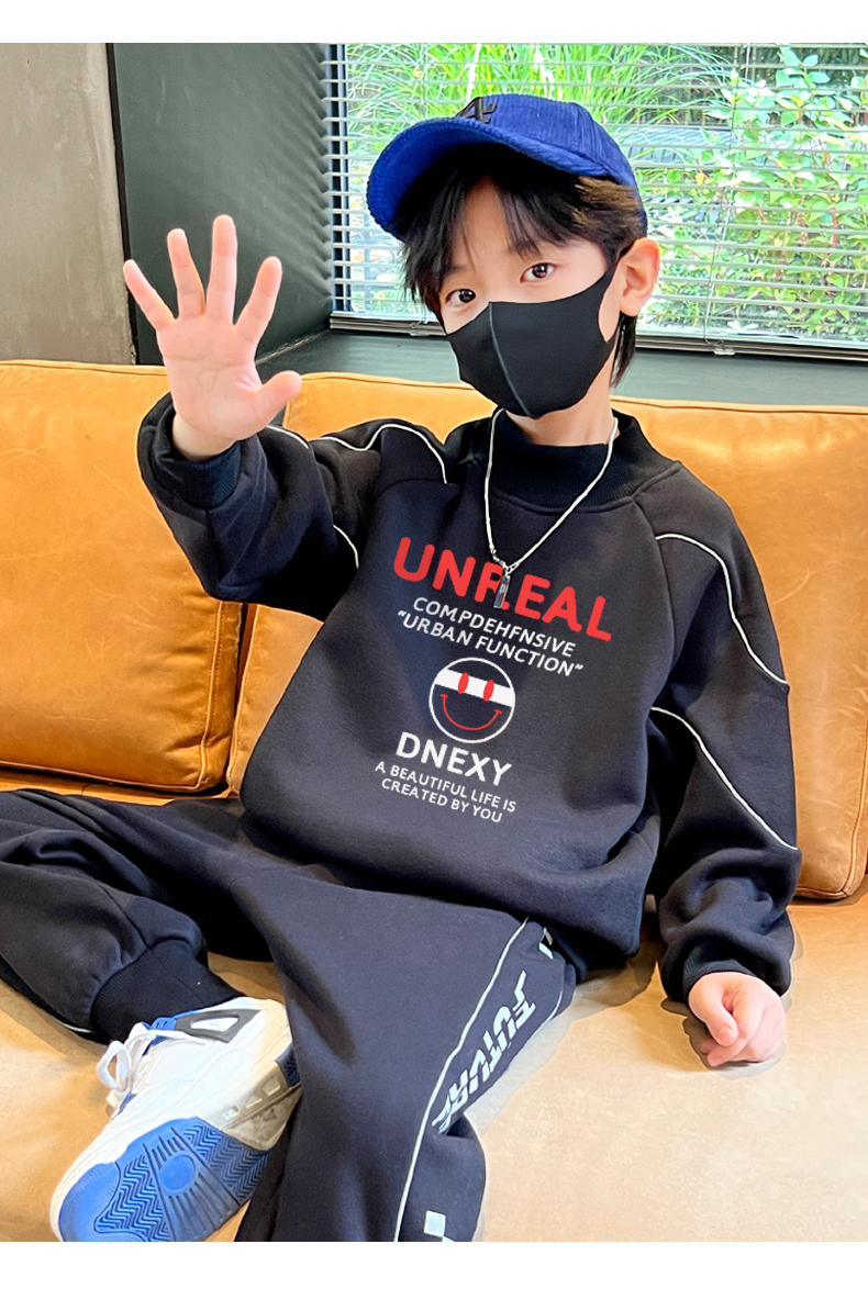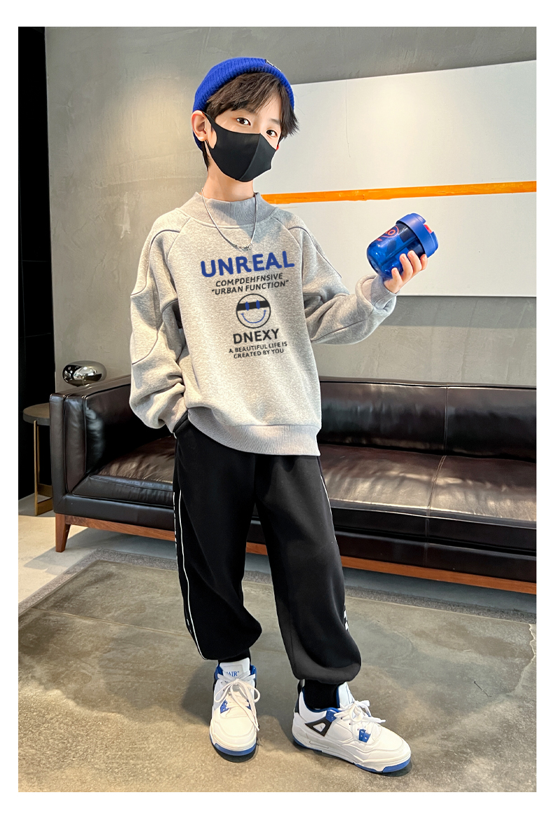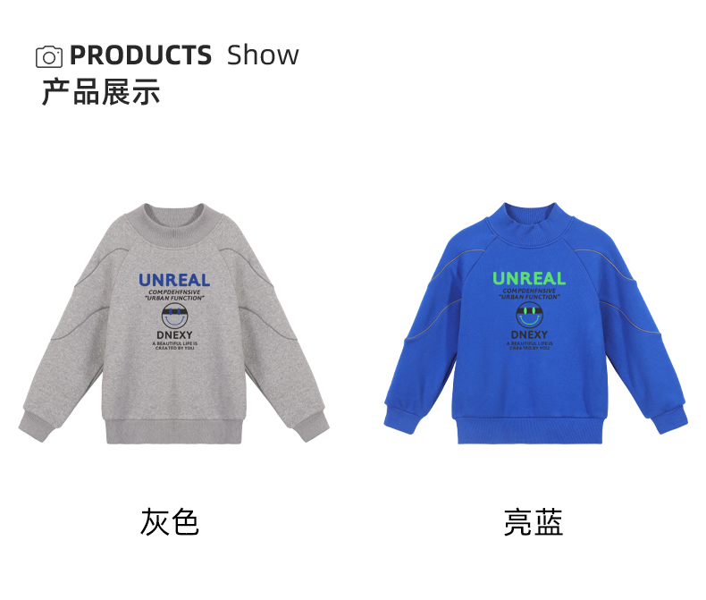 贝田冬季男童加绒卫衣半高领加厚一体绒儿童长袖圆领上衣打底衣服