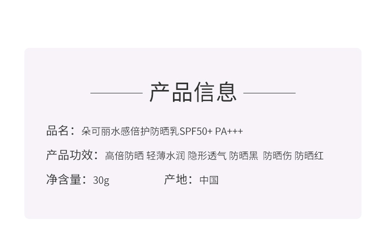 [透小蜜心选]【活动价 ¥ 29.9/瓶 | 满2件减10元 满3件减20元】朵可丽水感倍护防晒乳 SPF50+ PA+++